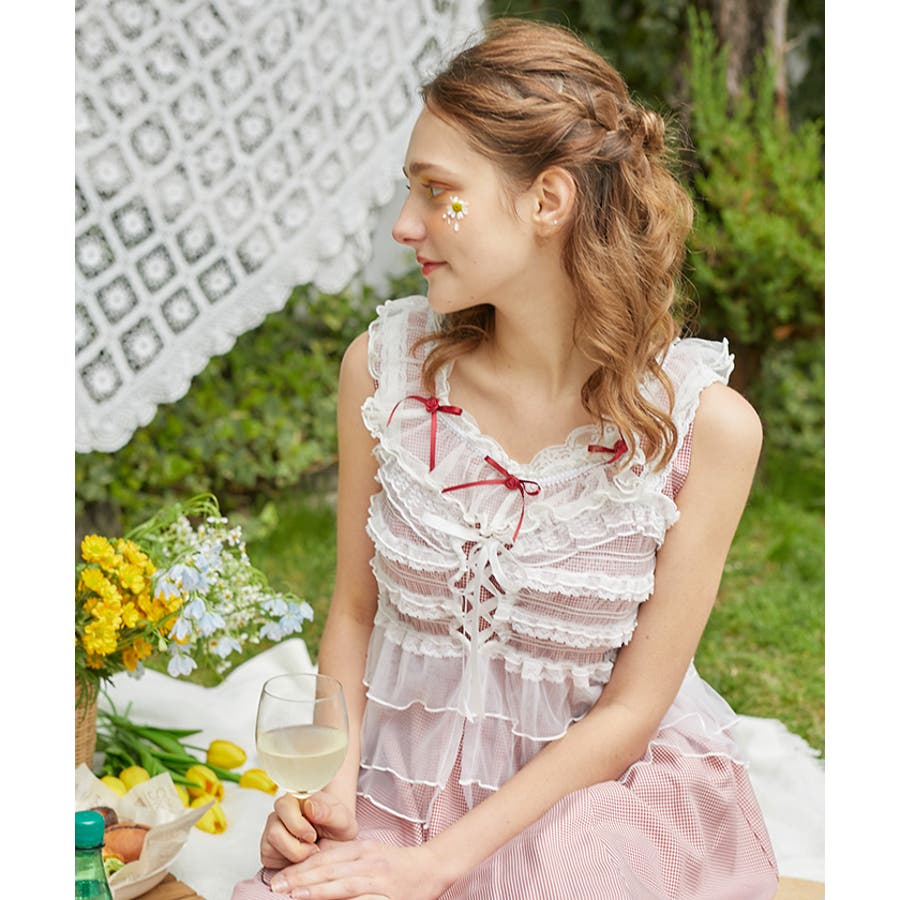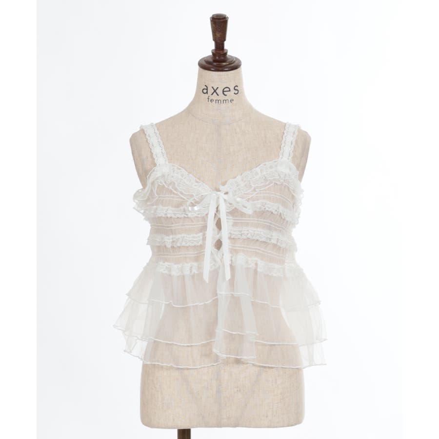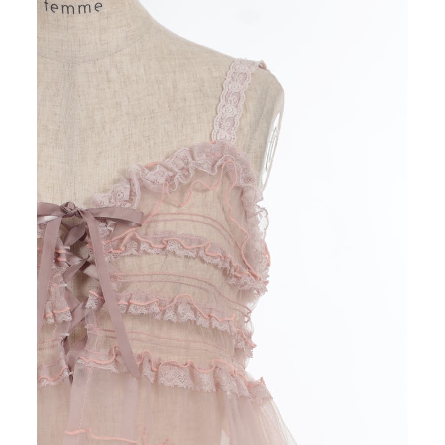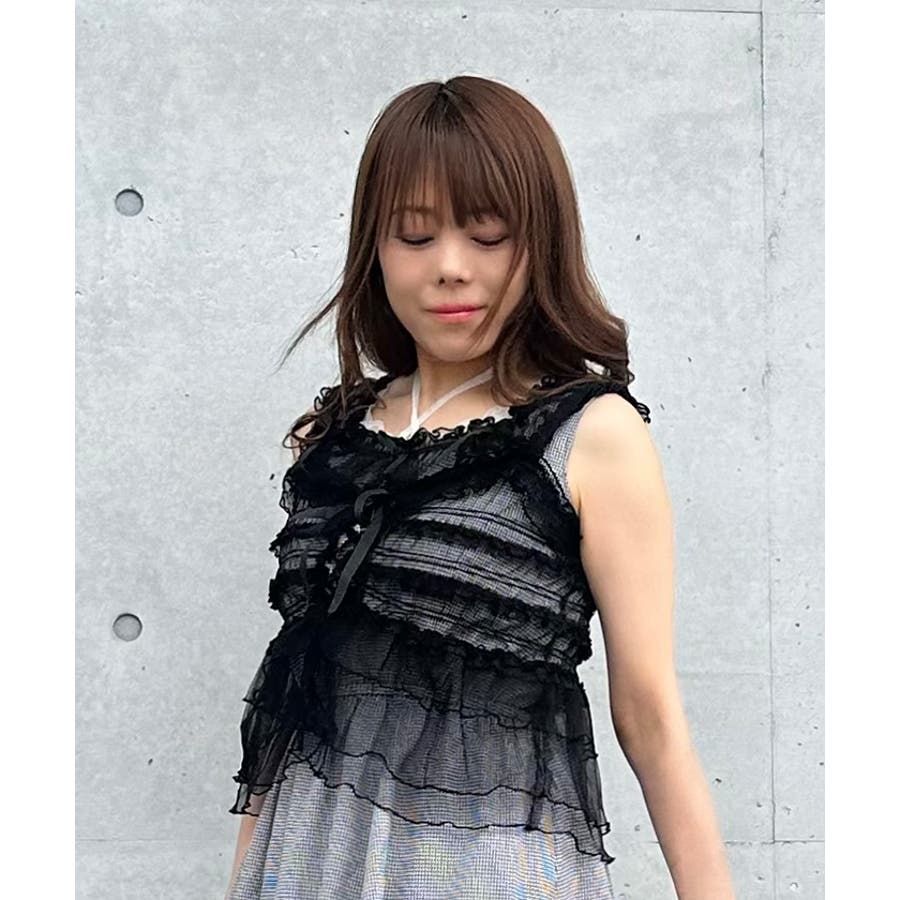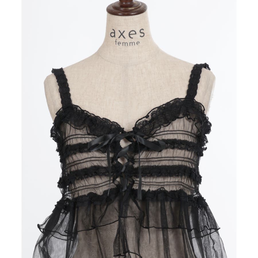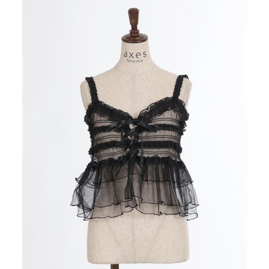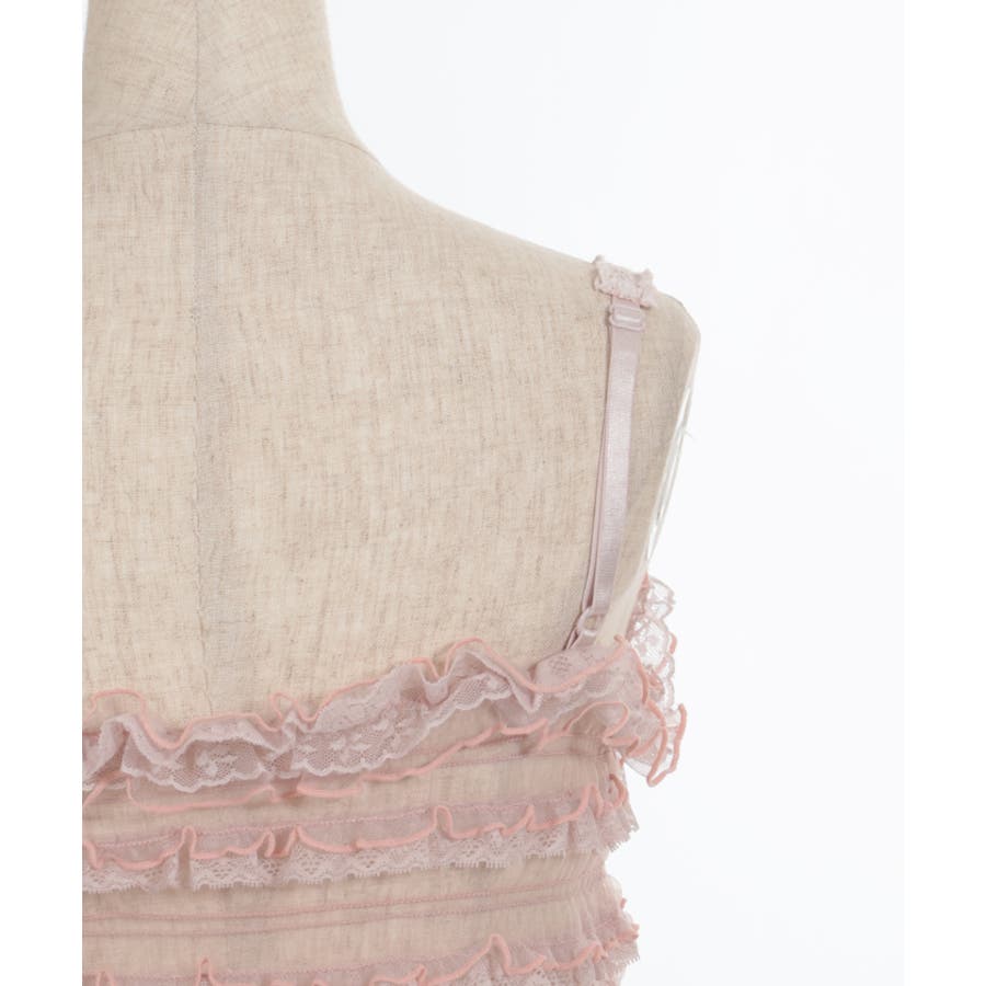 繊細なチュールにたっぷりのギャザーをいれ、フェミニンなシルエットに仕上げたビスチェです。