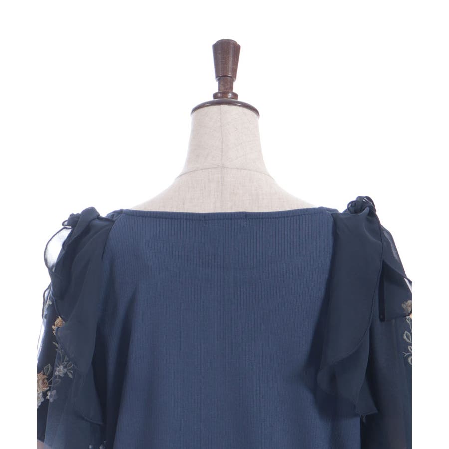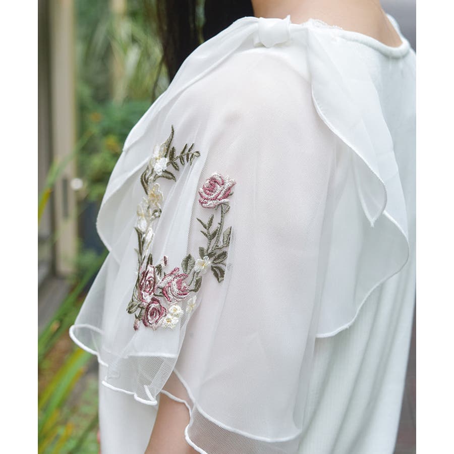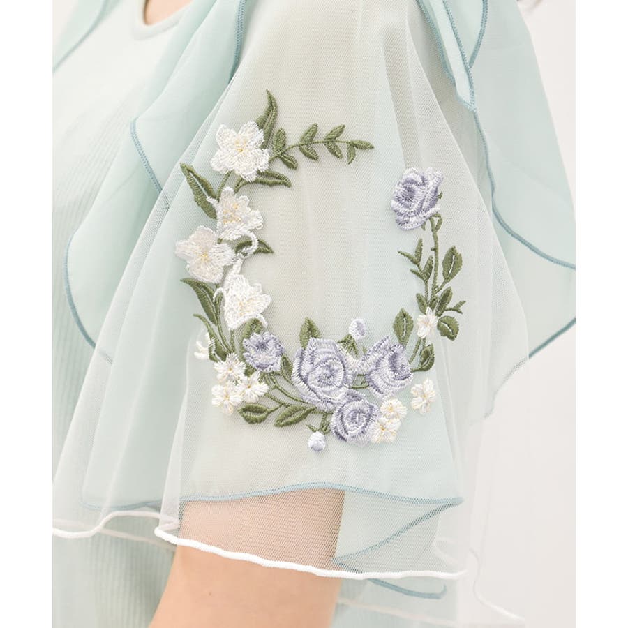 チュール×刺繍フレア袖プルオーバー
