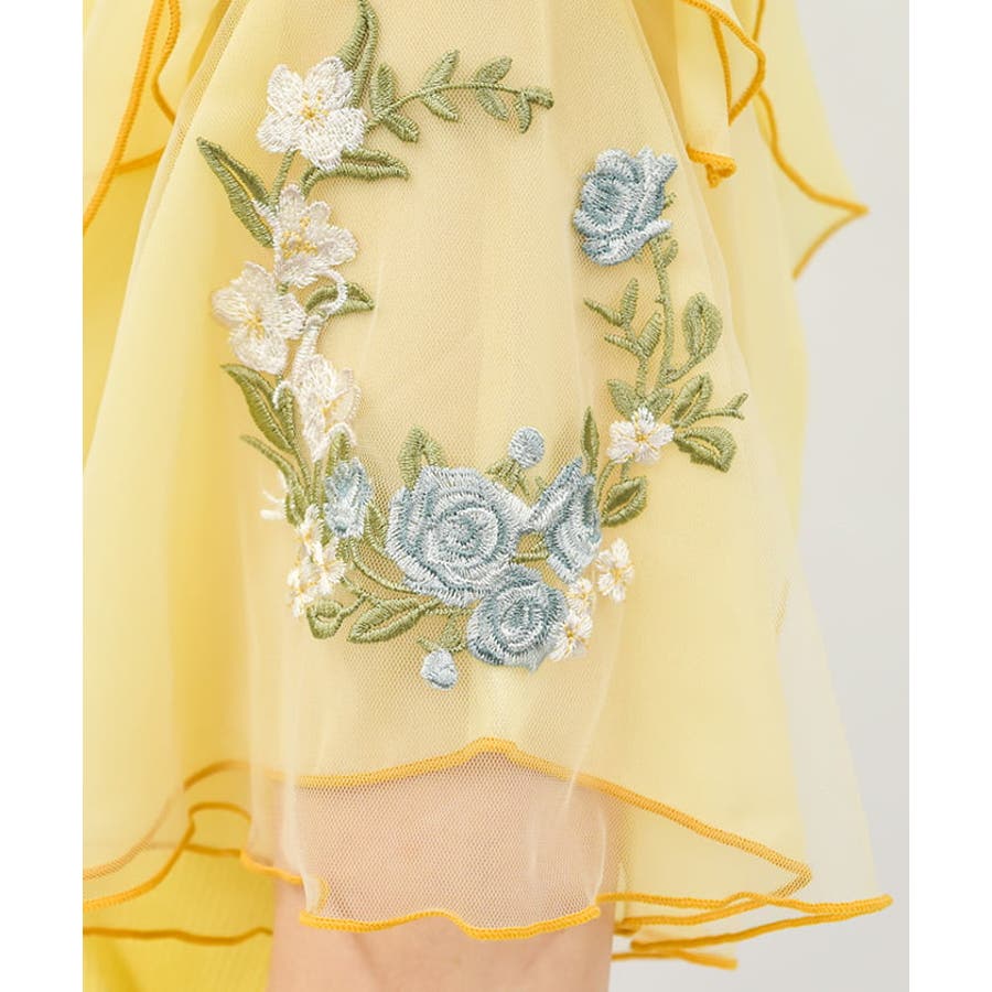 ふんわりした袖のチュール裏にはシフォンを重ね、程よい透け感が◎。