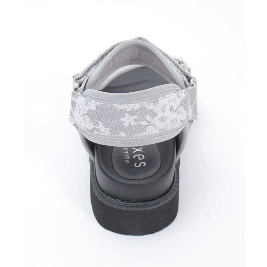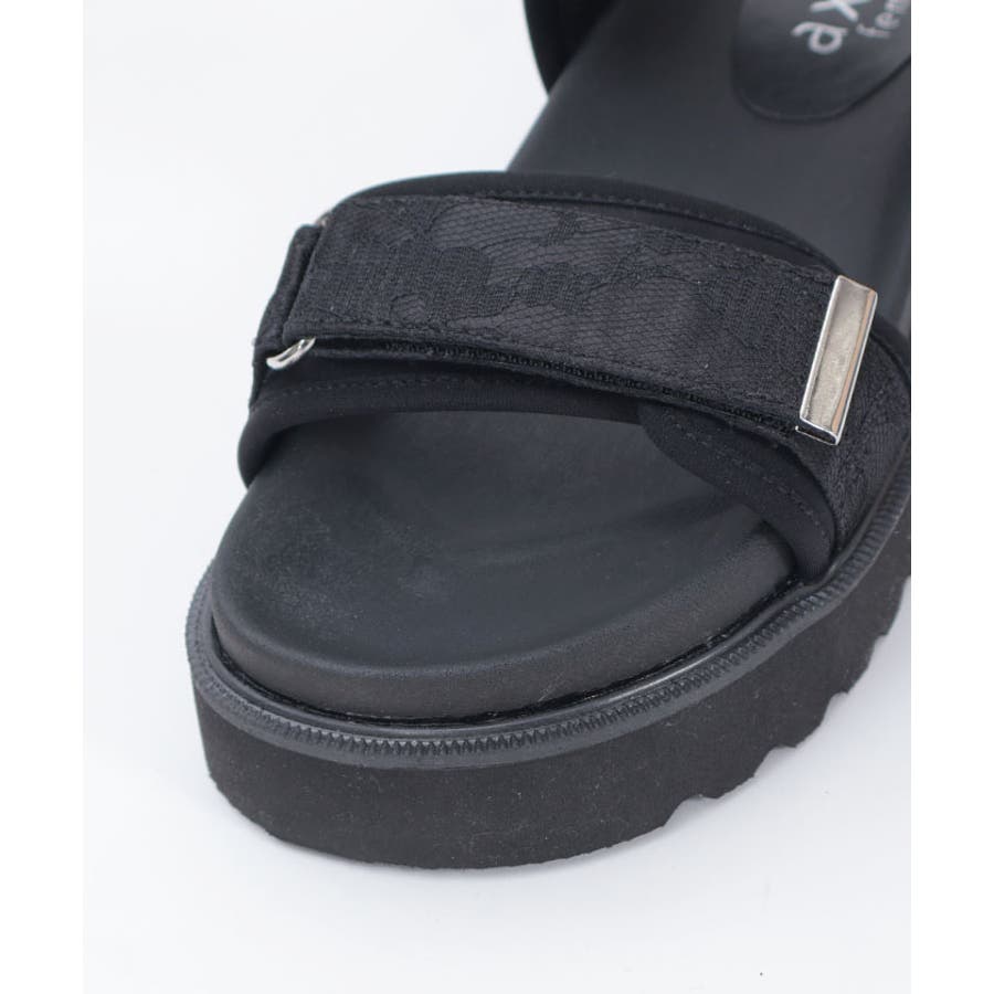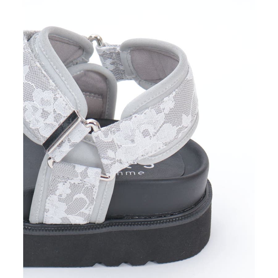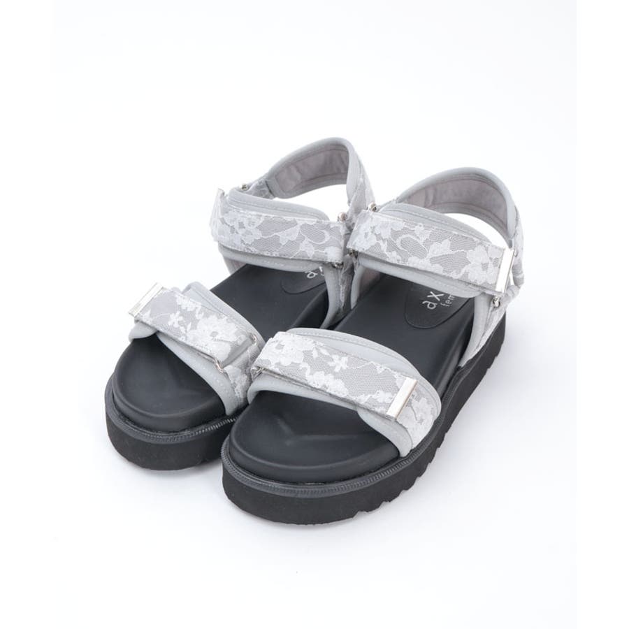 スポーティーな印象のベルトサンダルに繊細なレースを重ね、フェミニンに仕上げたデザイン。