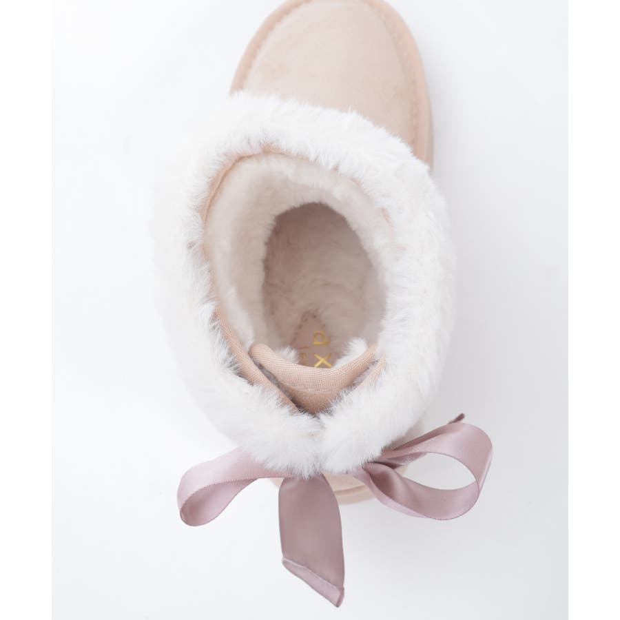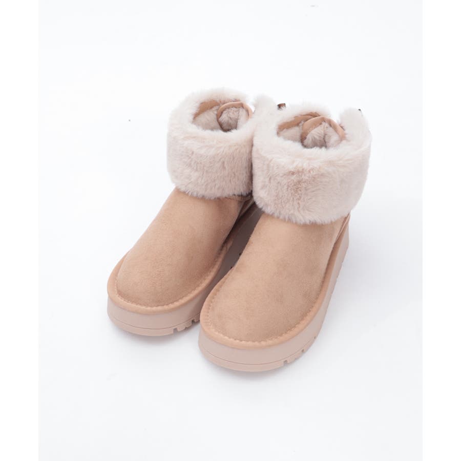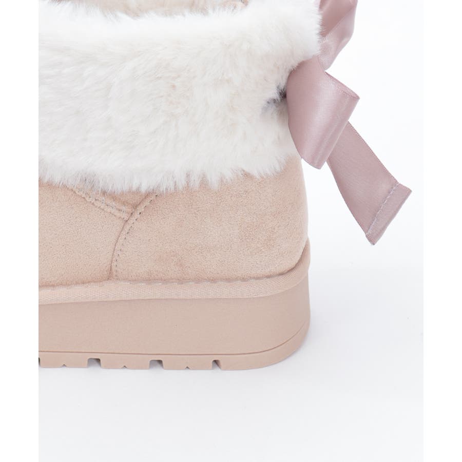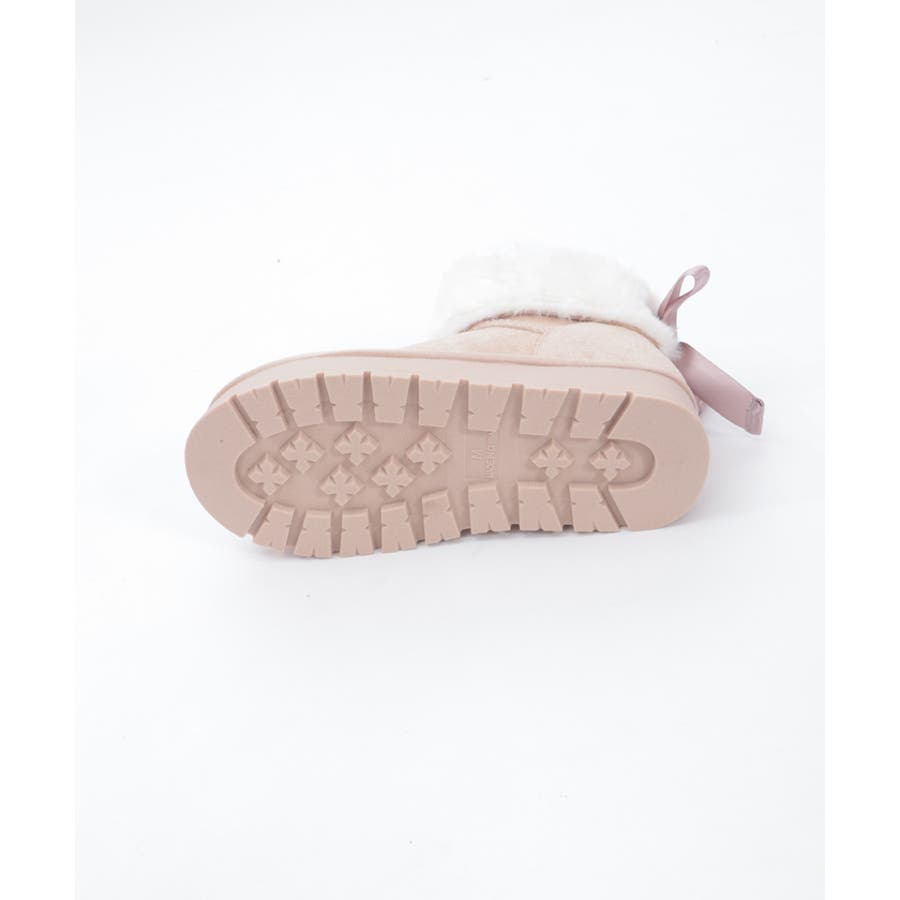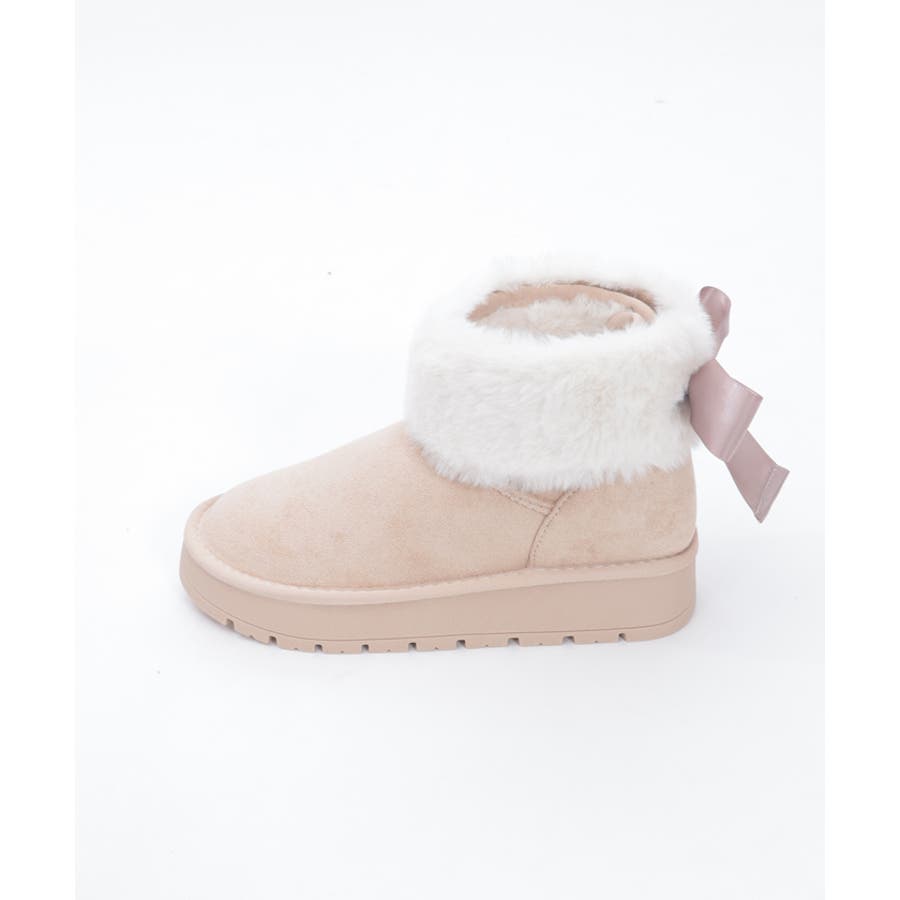 バックリボンデザインがポイントのショート丈ムートンブーツです。