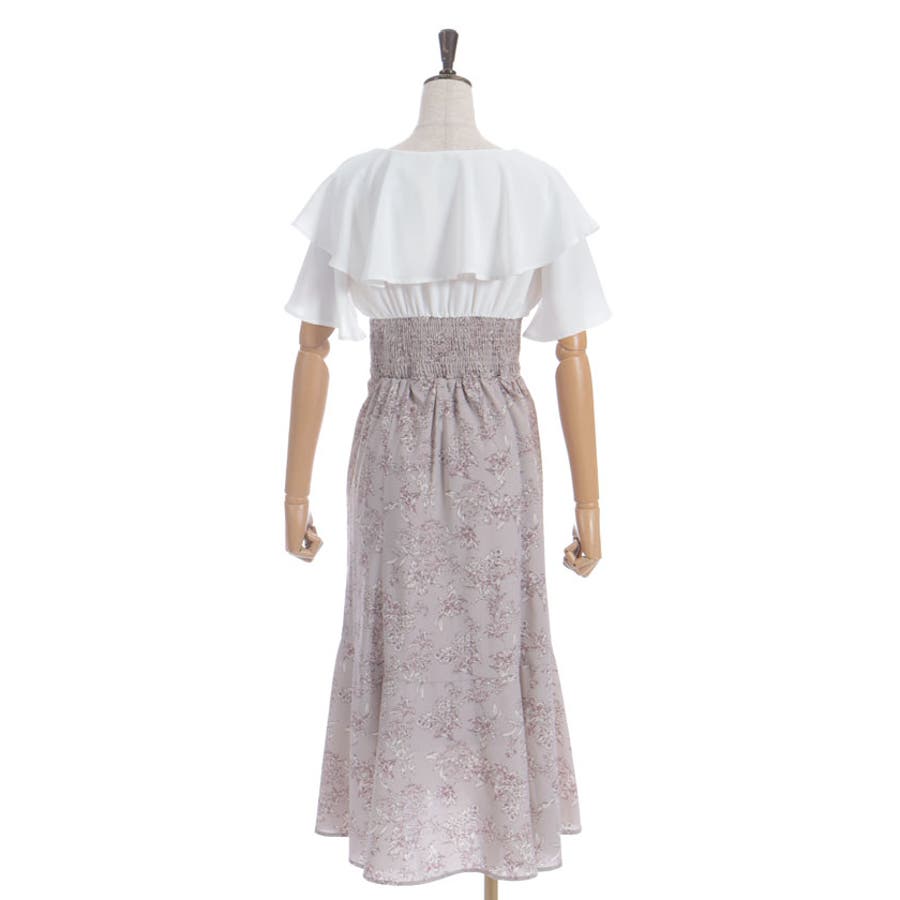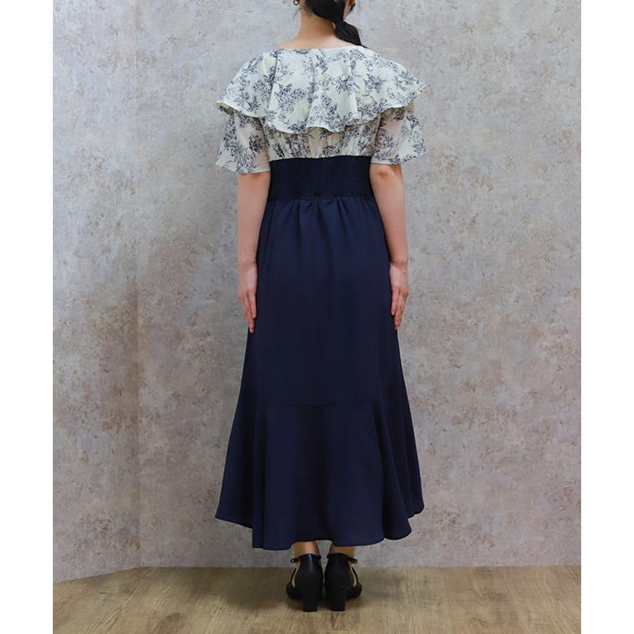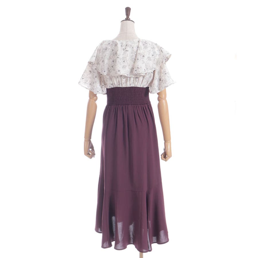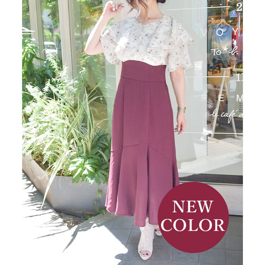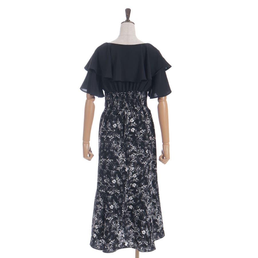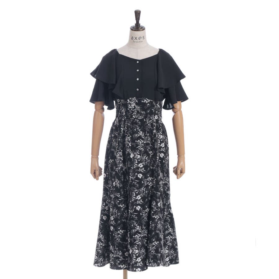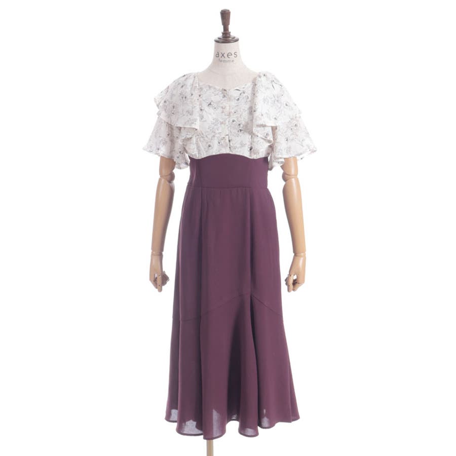 無地×シンプル花柄合わせのドッキングワンピースです。