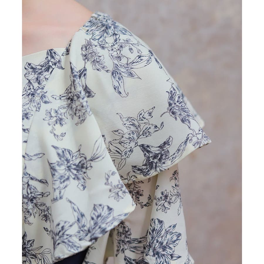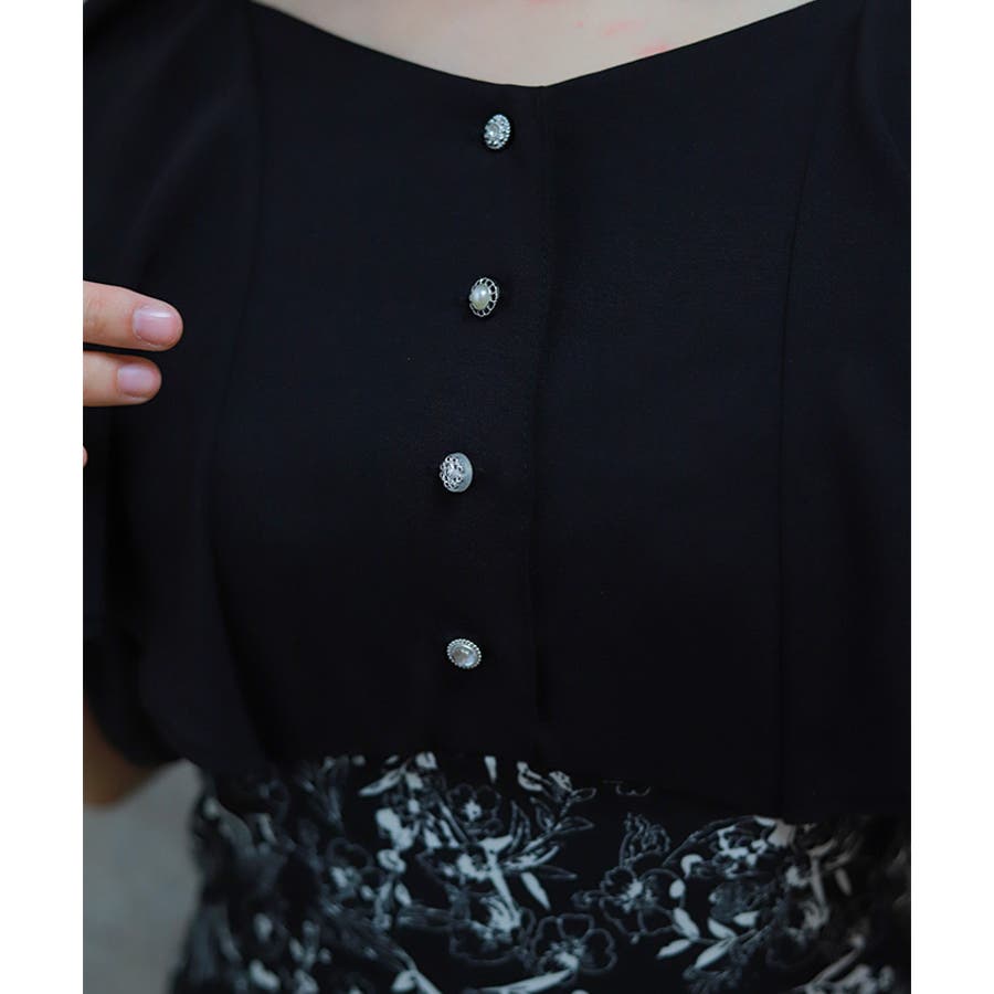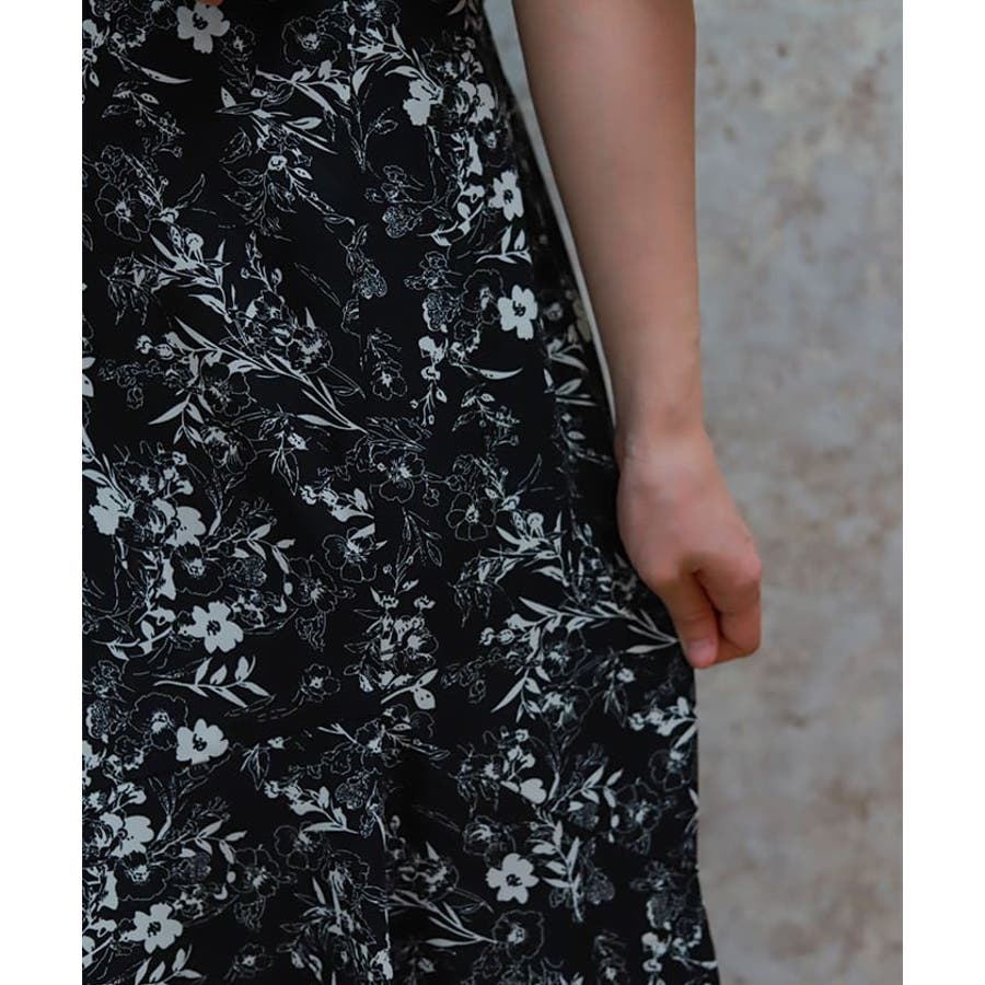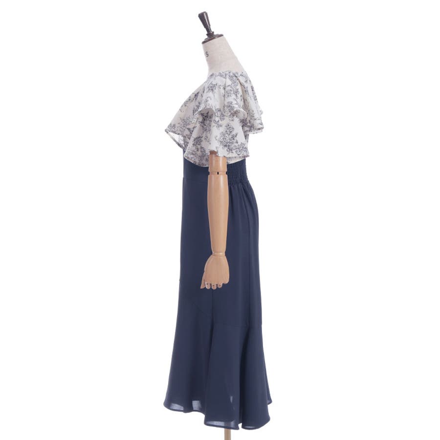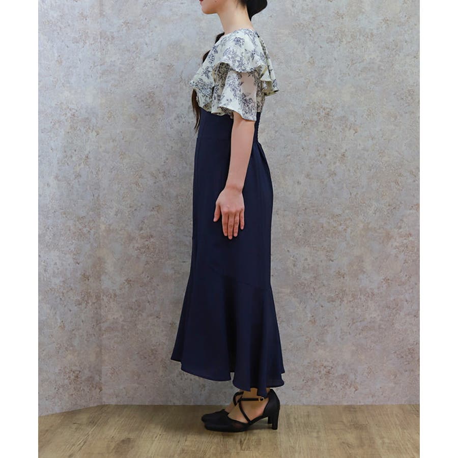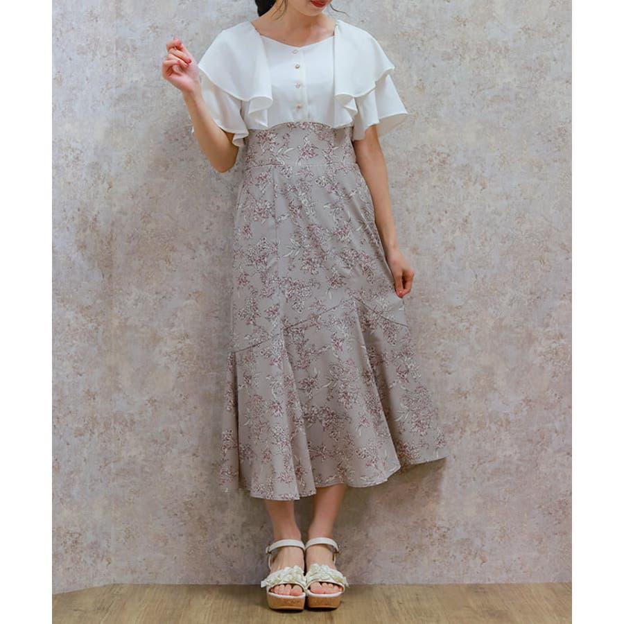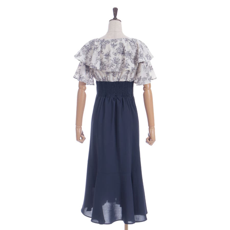 無地×シンプル花柄合わせのドッキングワンピースです。