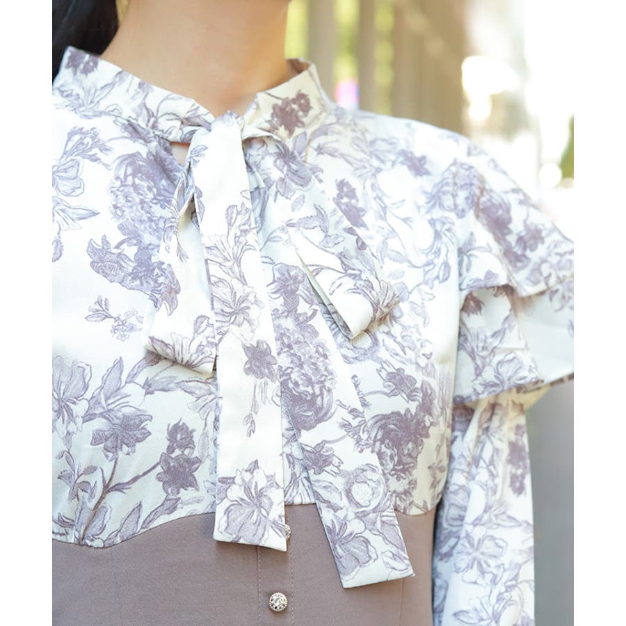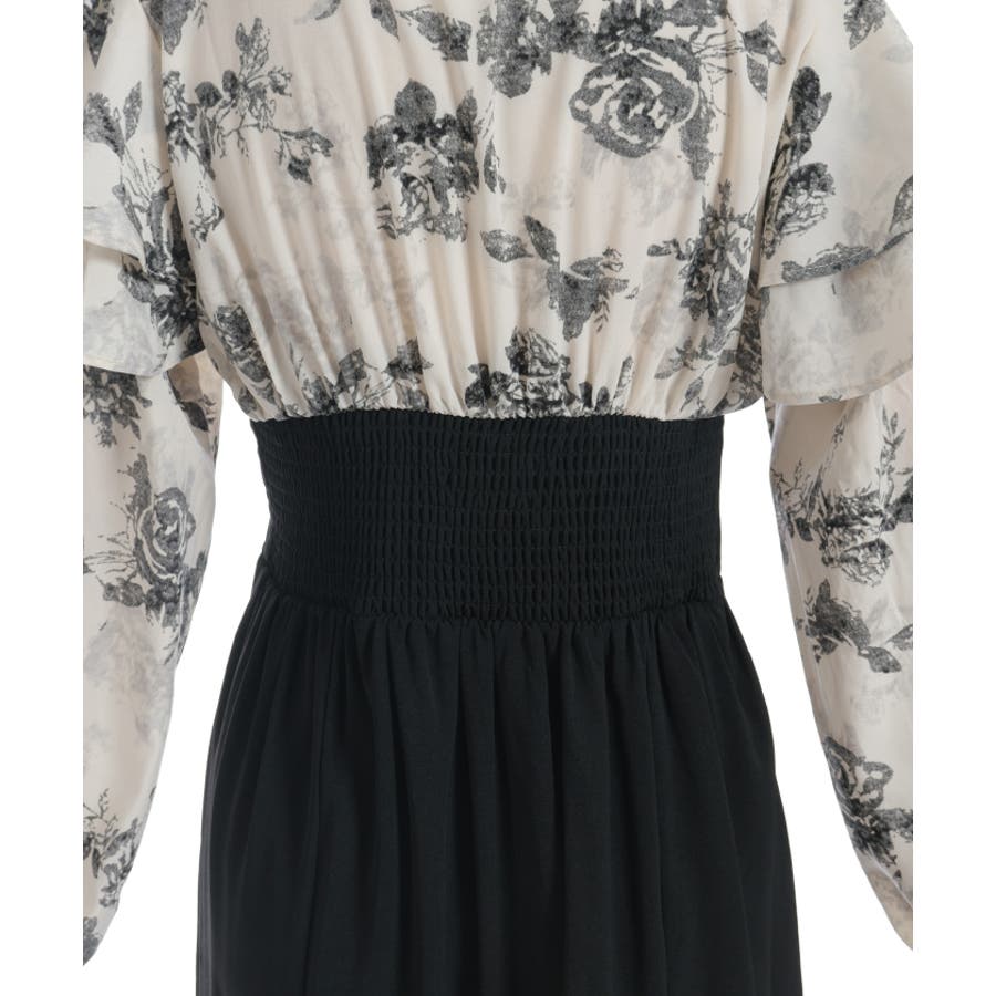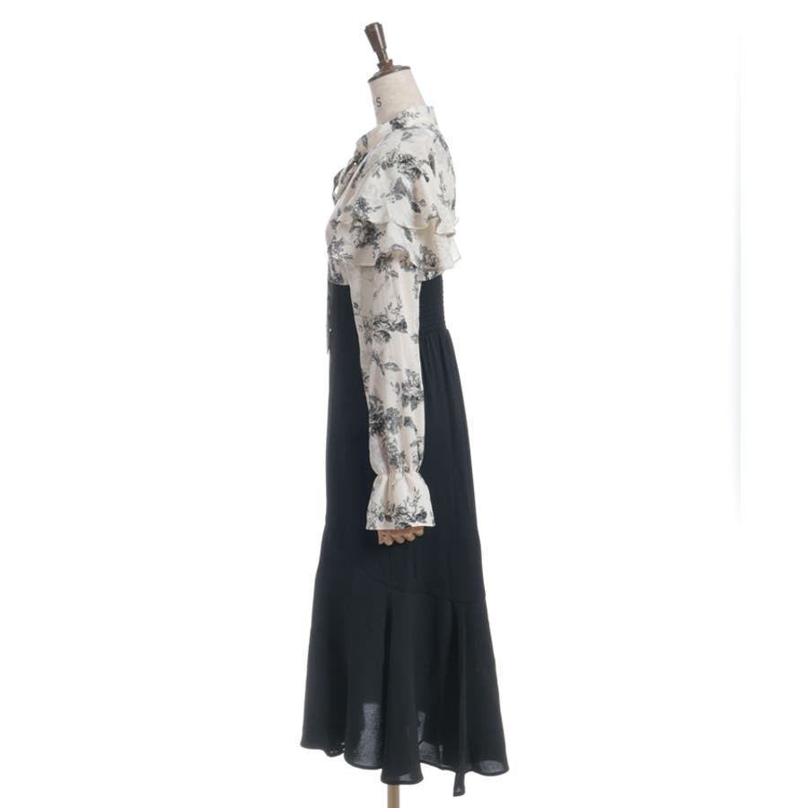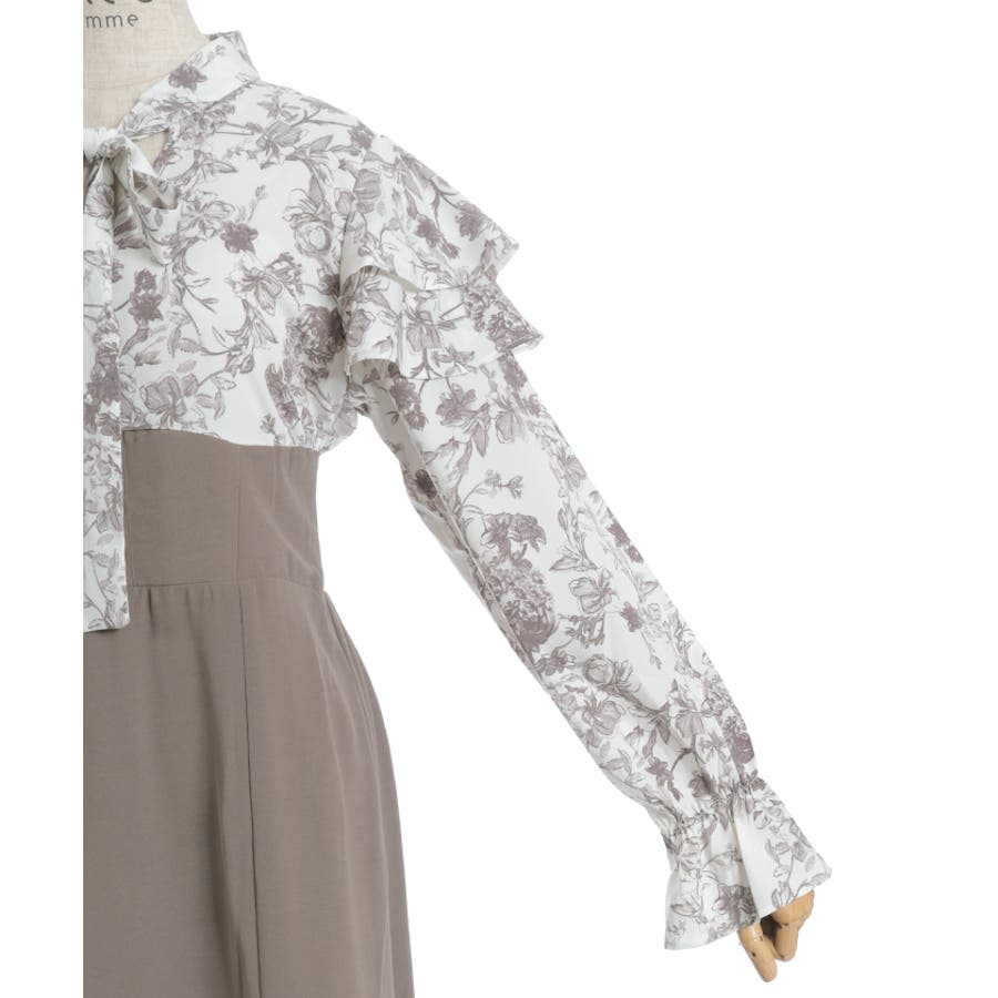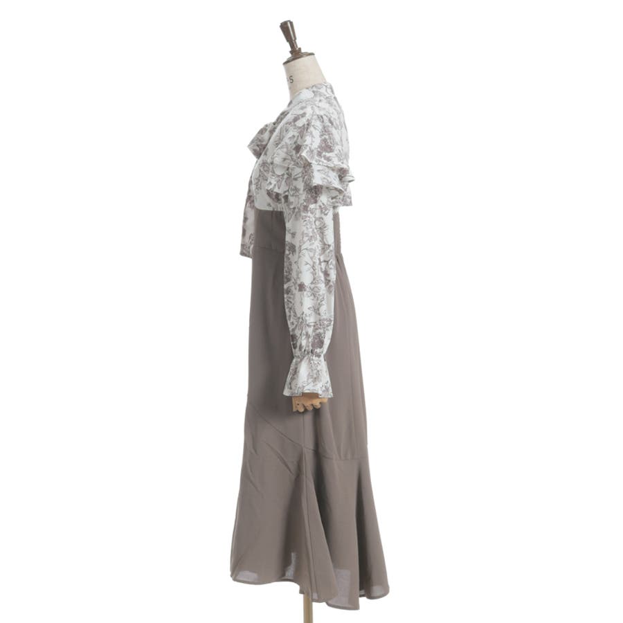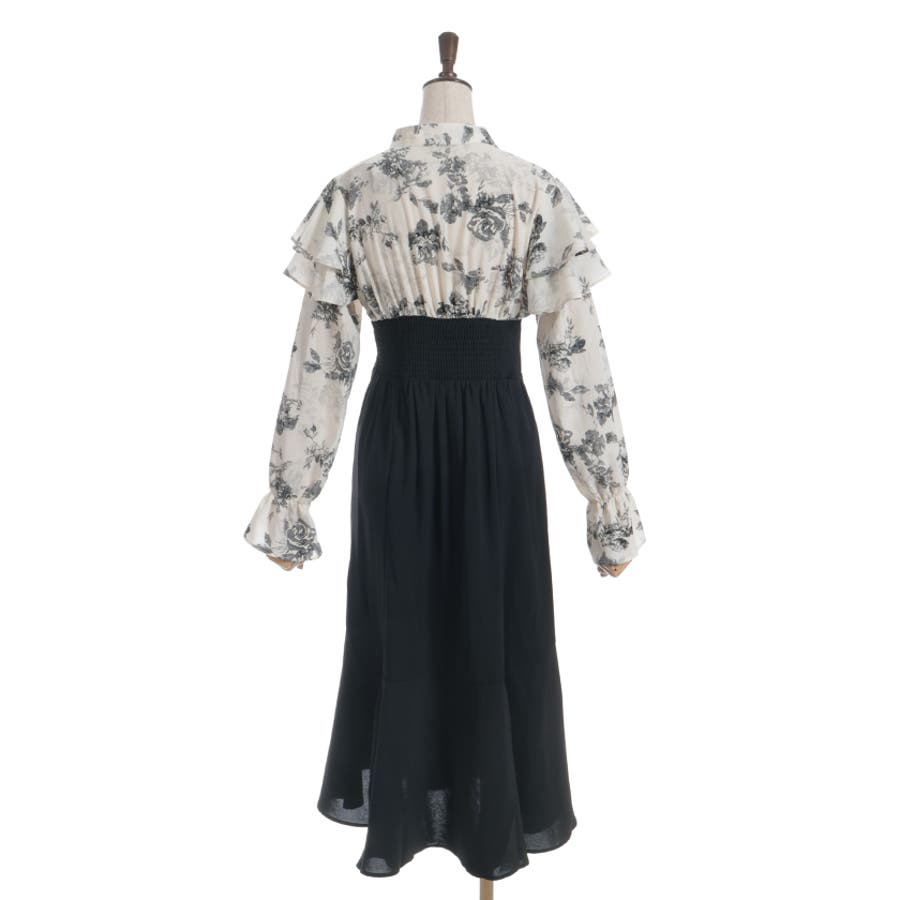 シンプルめな柄ブラウス×無地スカートのドッキングワンピースです。