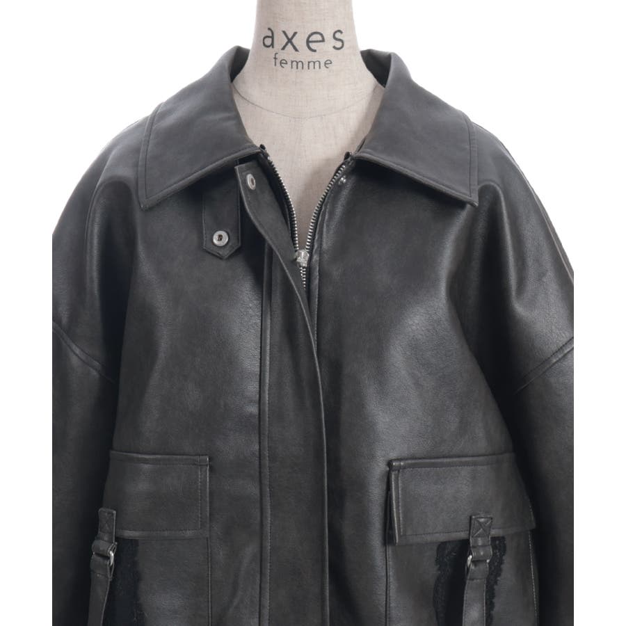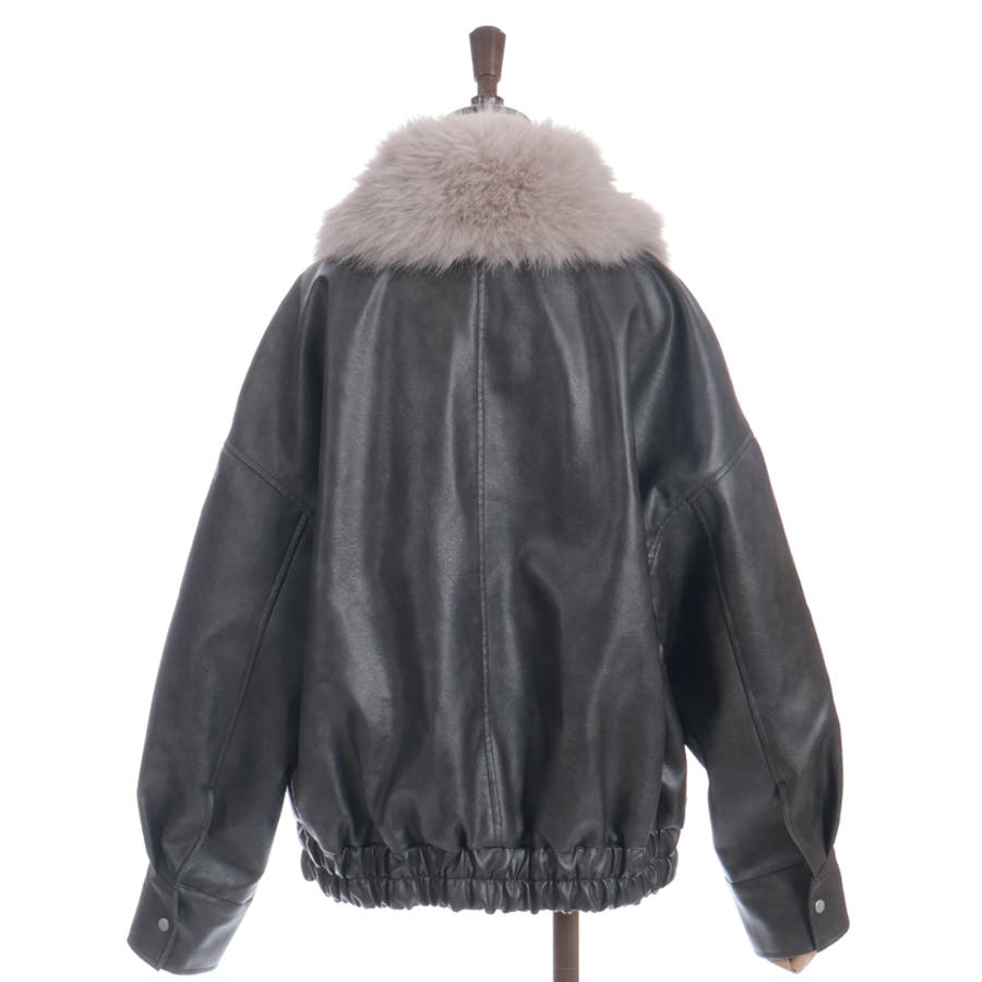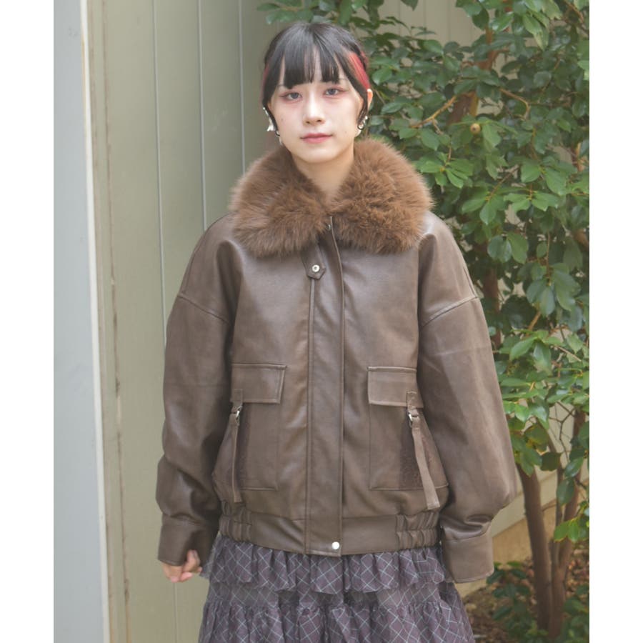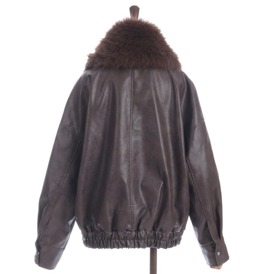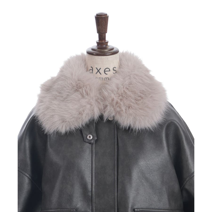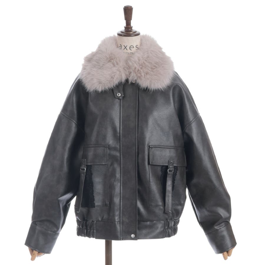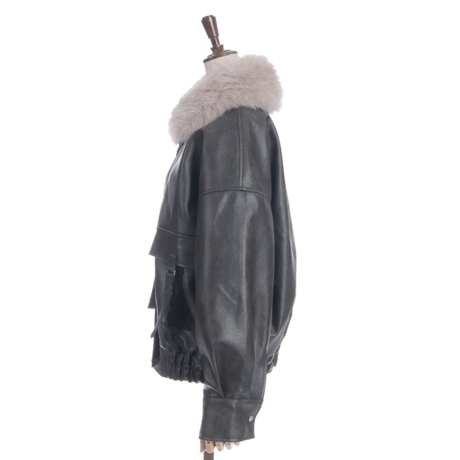 レザー風素材を使用したオーバーサイズジャケット。取り外し可能なファー付きで、季節やスタイルに合わせて表情を変えられます。