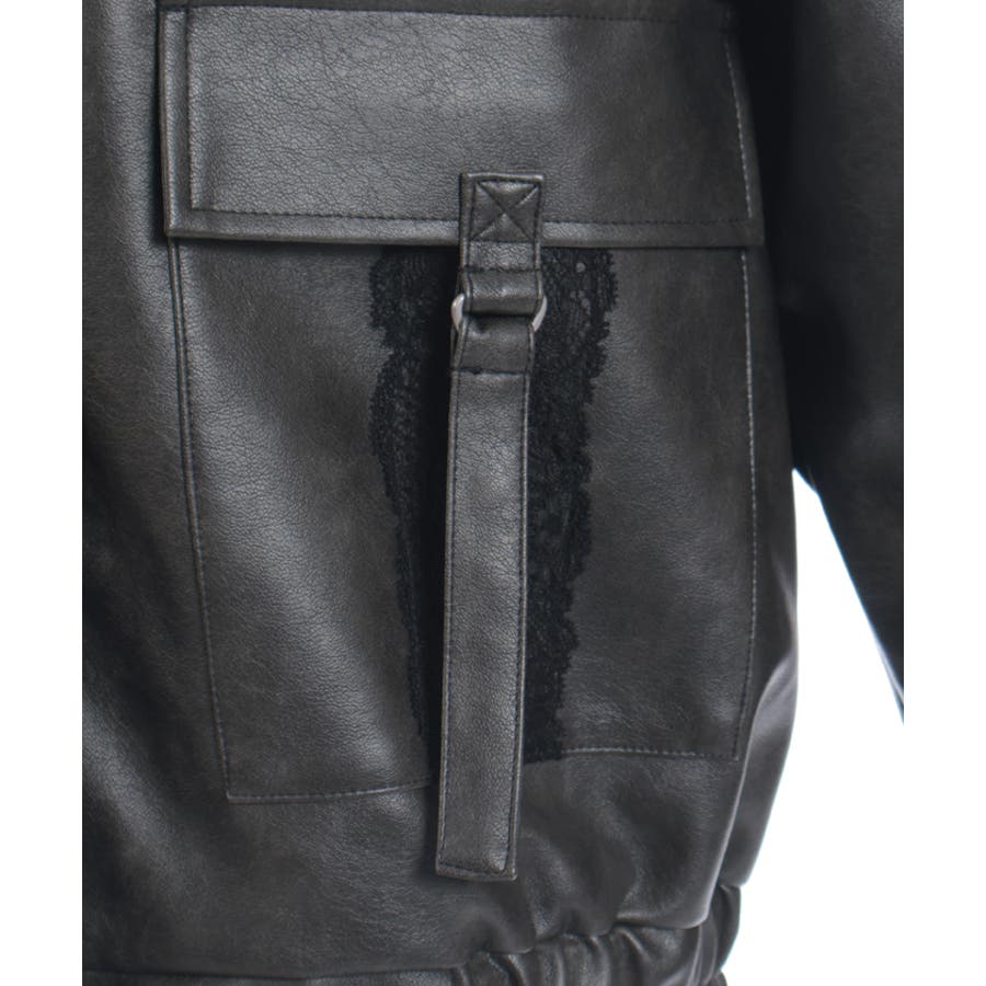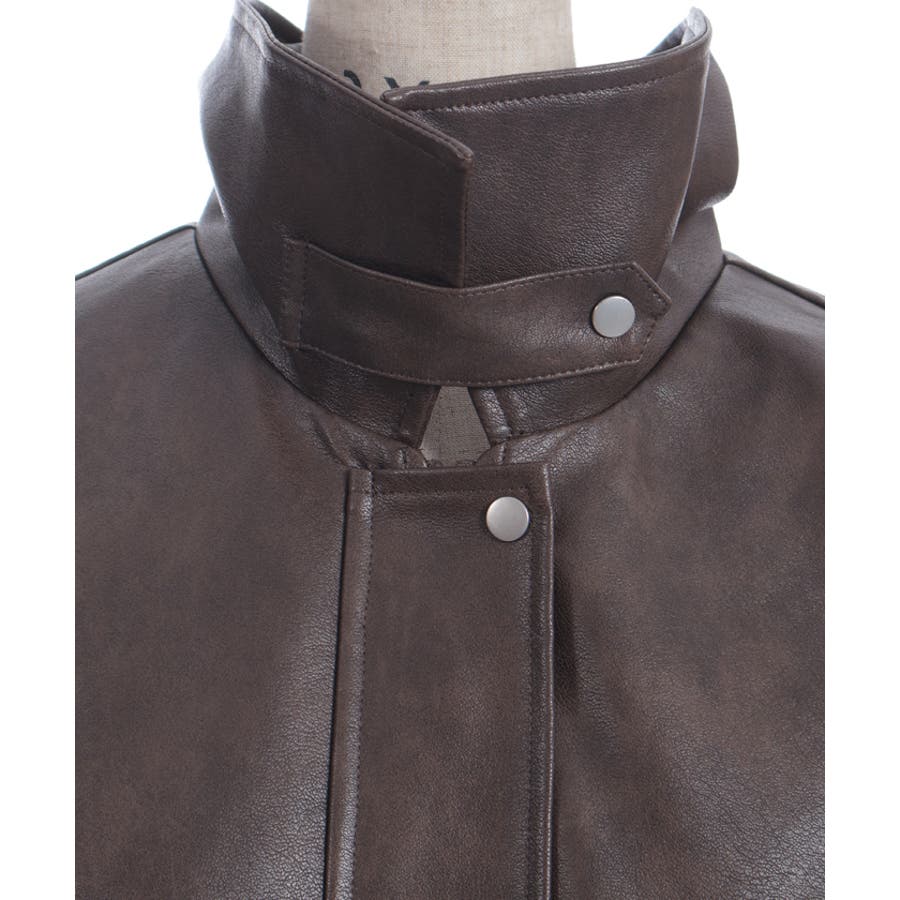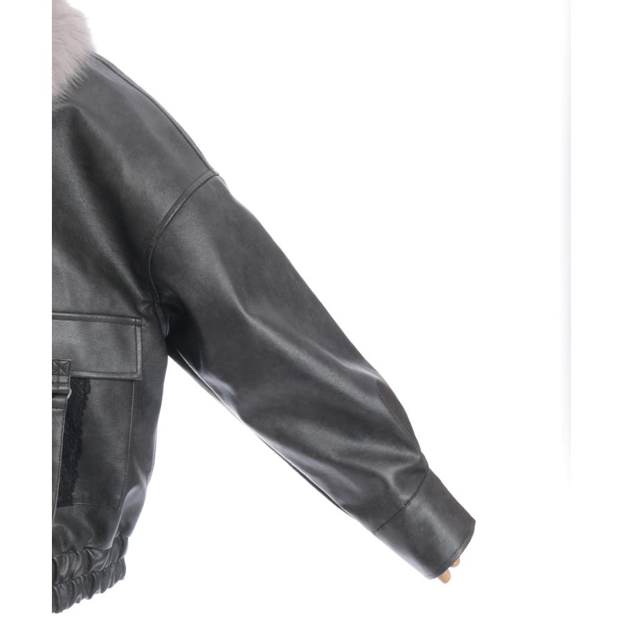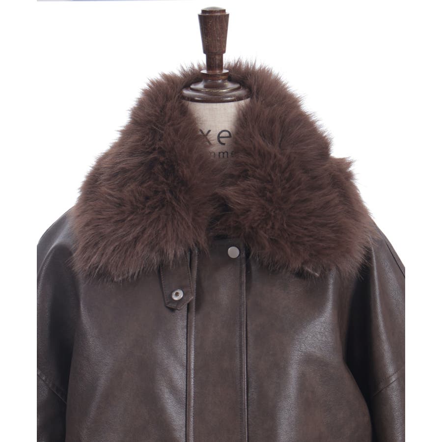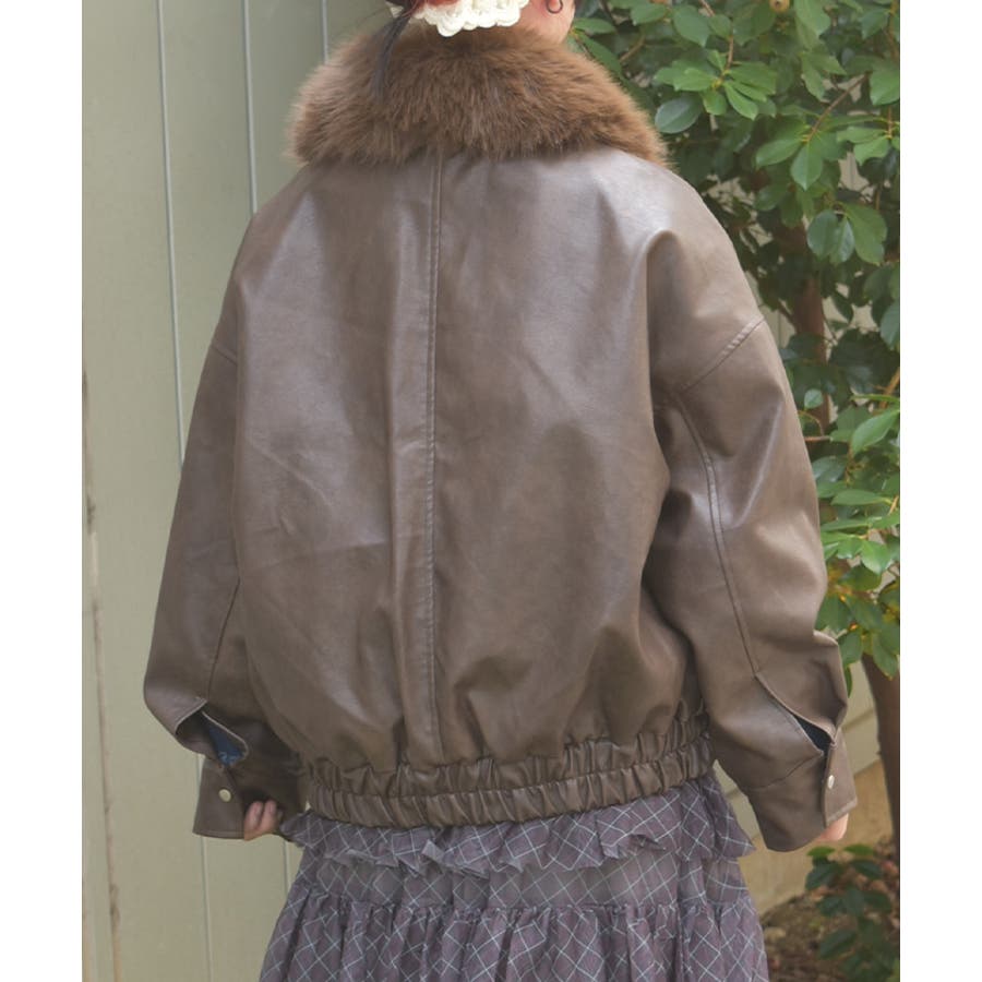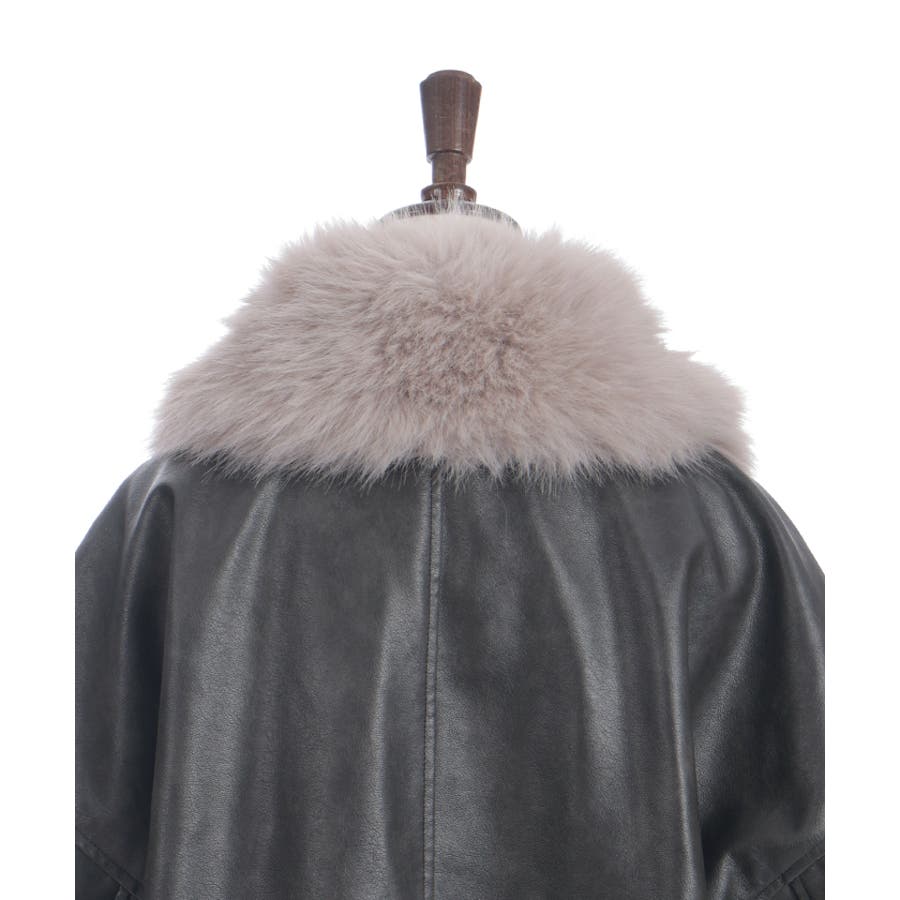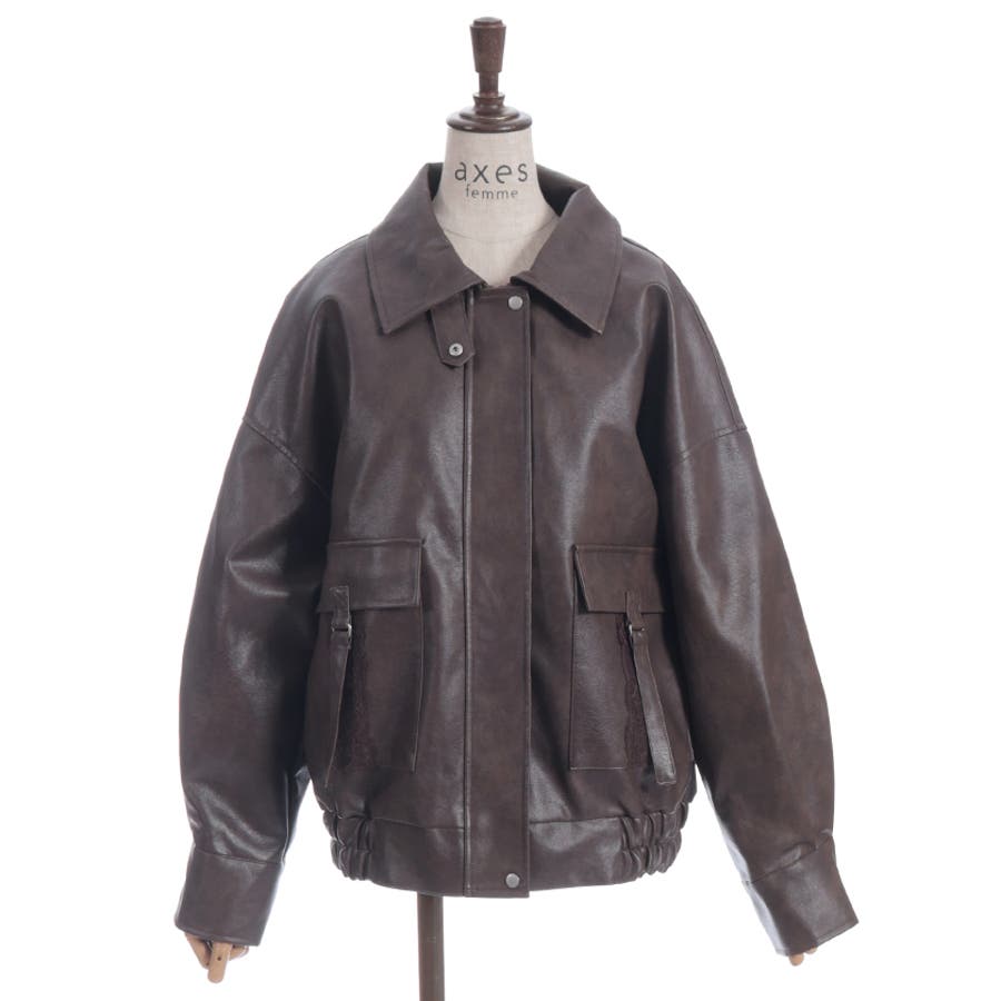 レザー風素材を使用したオーバーサイズジャケット。取り外し可能なファー付きで、季節やスタイルに合わせて表情を変えられます。