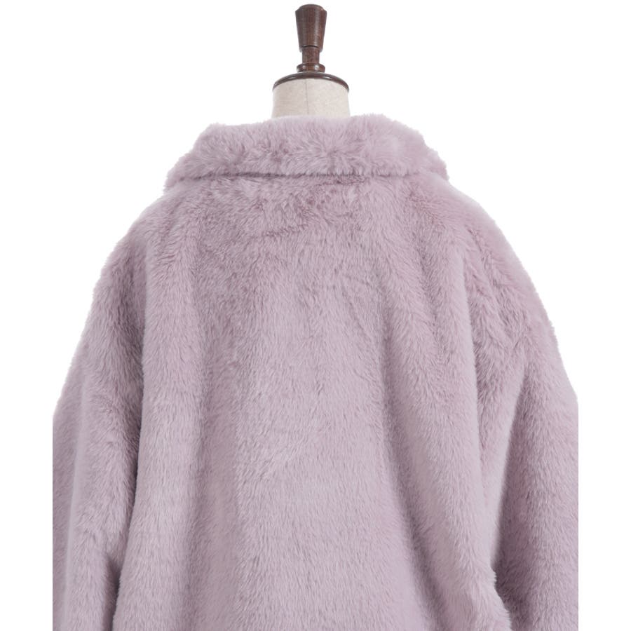 ふんわりとした毛並みが魅力のフェイクファーコート。軽やかな着心地ながらも見た目はリッチで、羽織るだけでシーズンムードを高めてくれる一枚です。