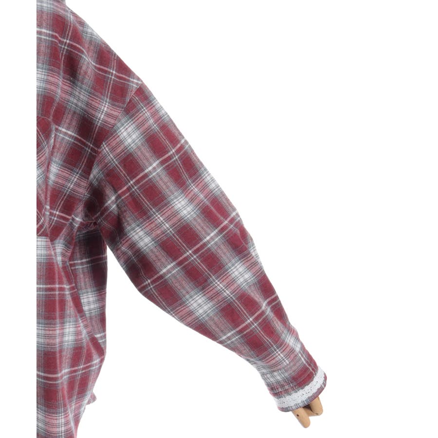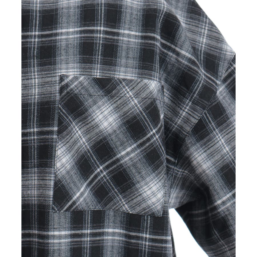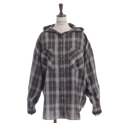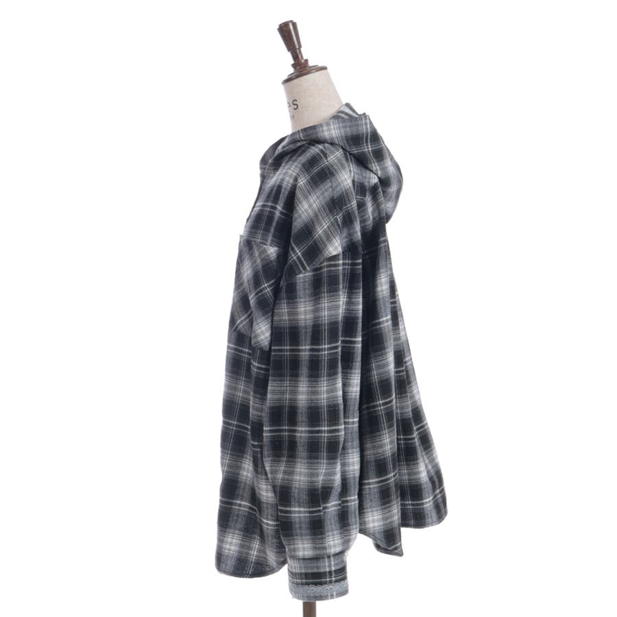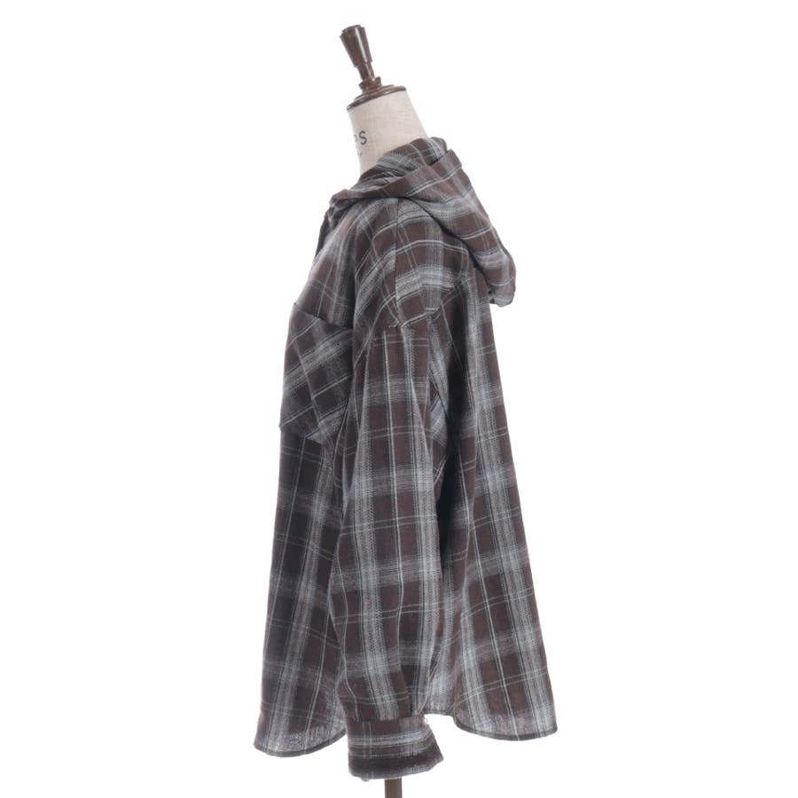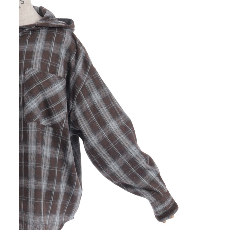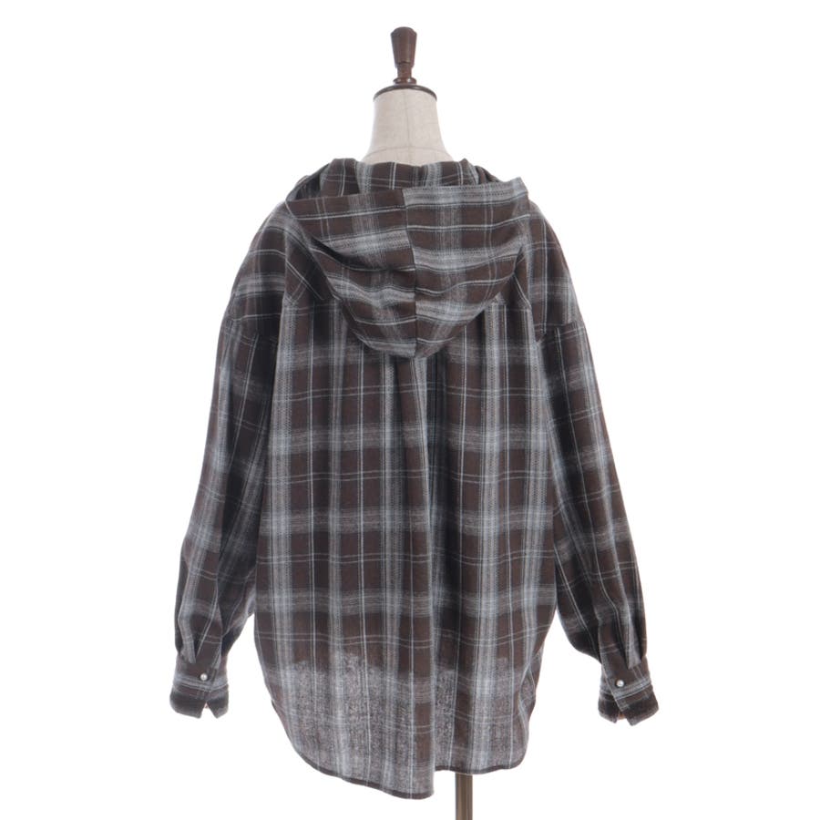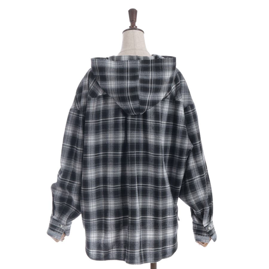 柔らかな風合いのチェック生地のフード付きオーバーシャツです。