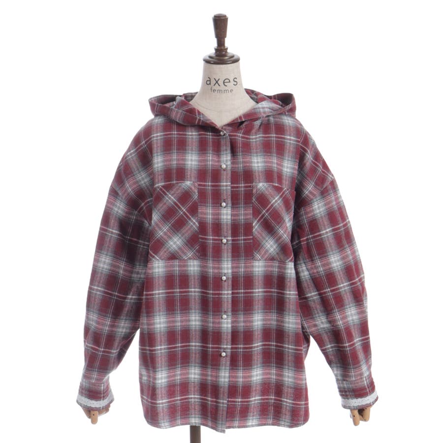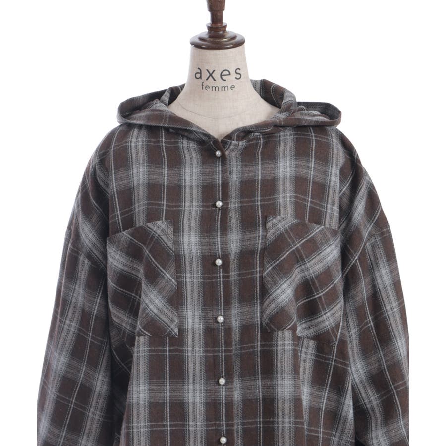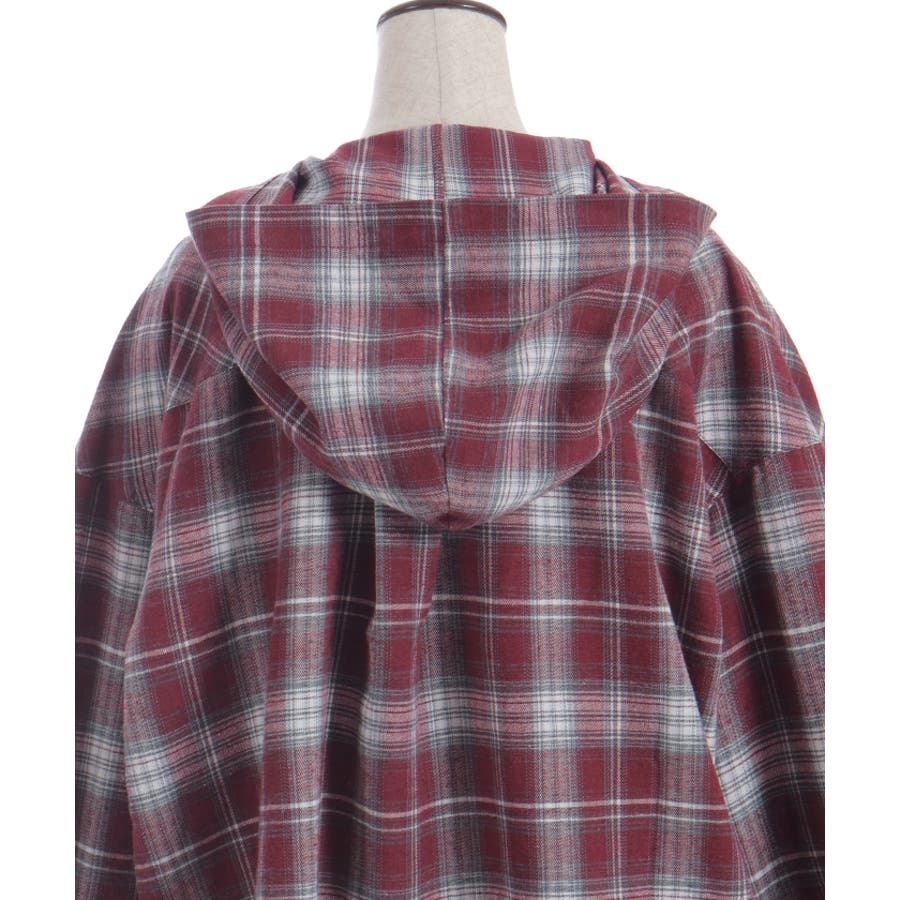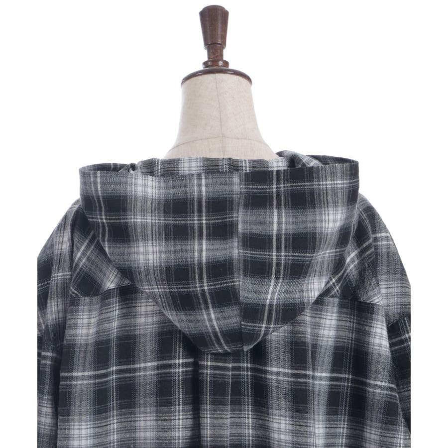 トレンドライクなギークチェックとフード付きデザインがポイント。
