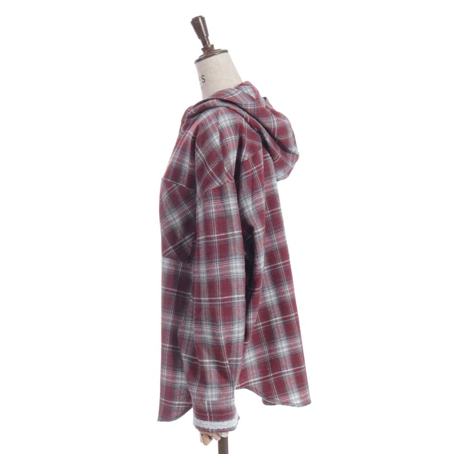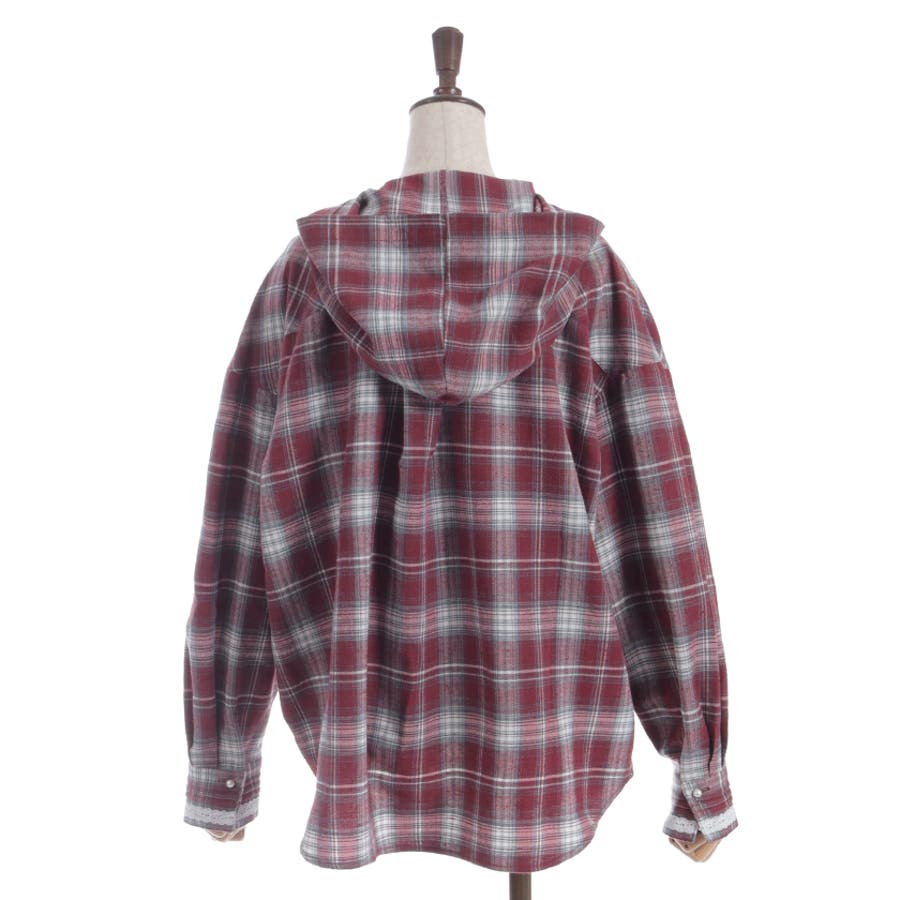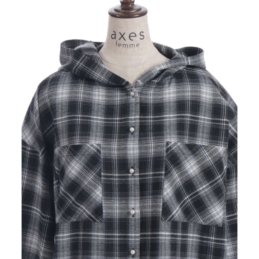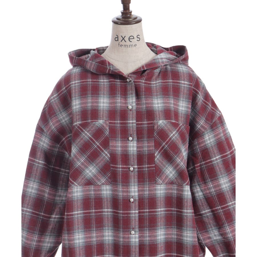 トレンドライクなギークチェックとフード付きデザインがポイント。