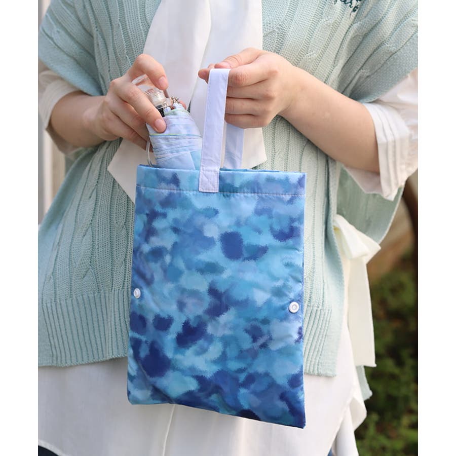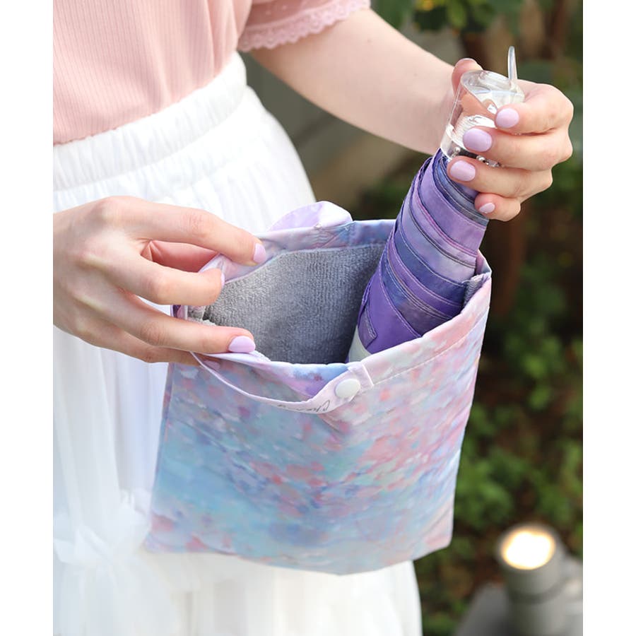 裏地が吸水素材になっており、濡れた折りたたみ傘を収納するのに便利なアイテム。