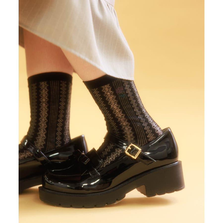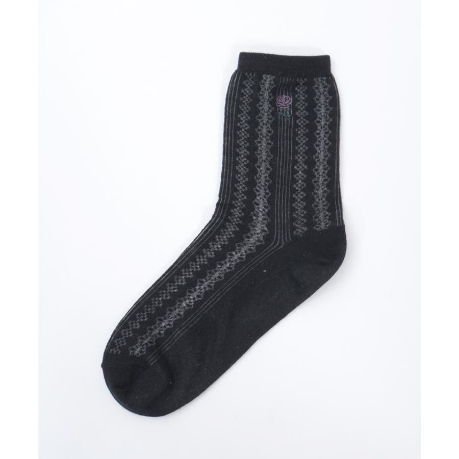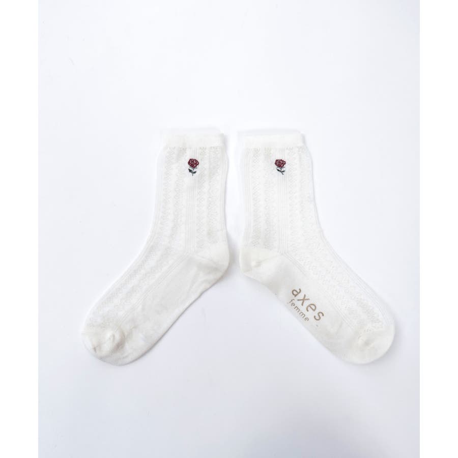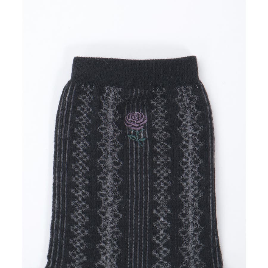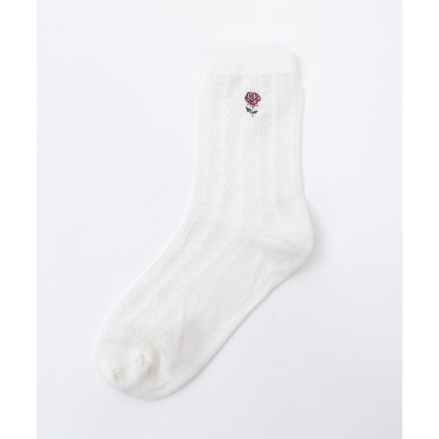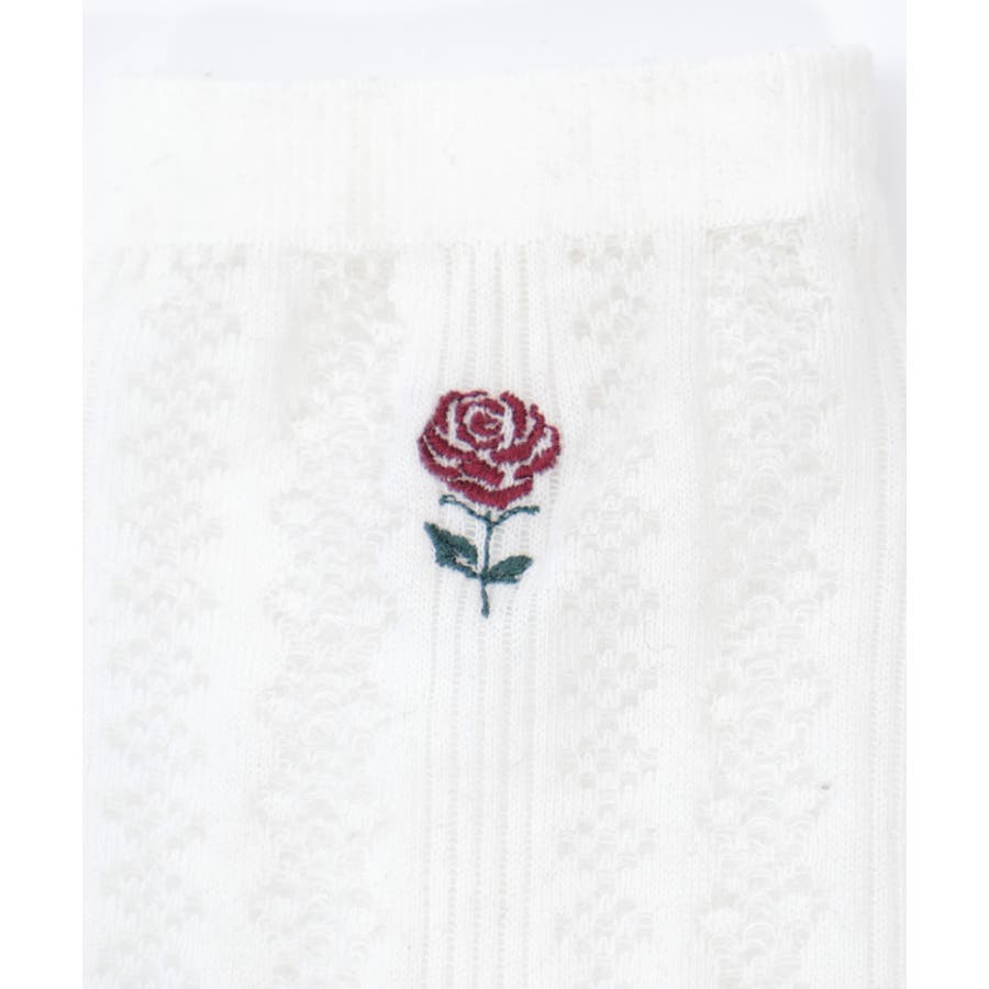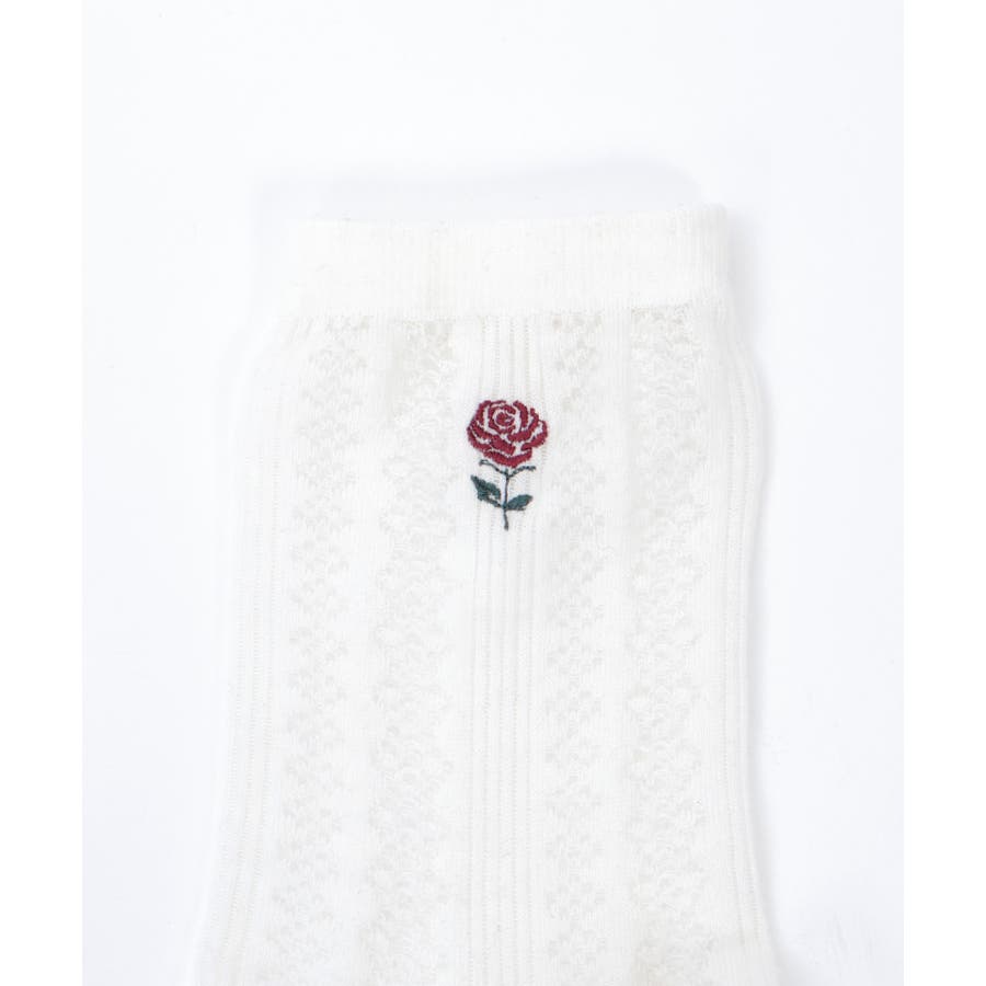 繊細なローズ刺繍をあしらった透かし柄ソックスです。