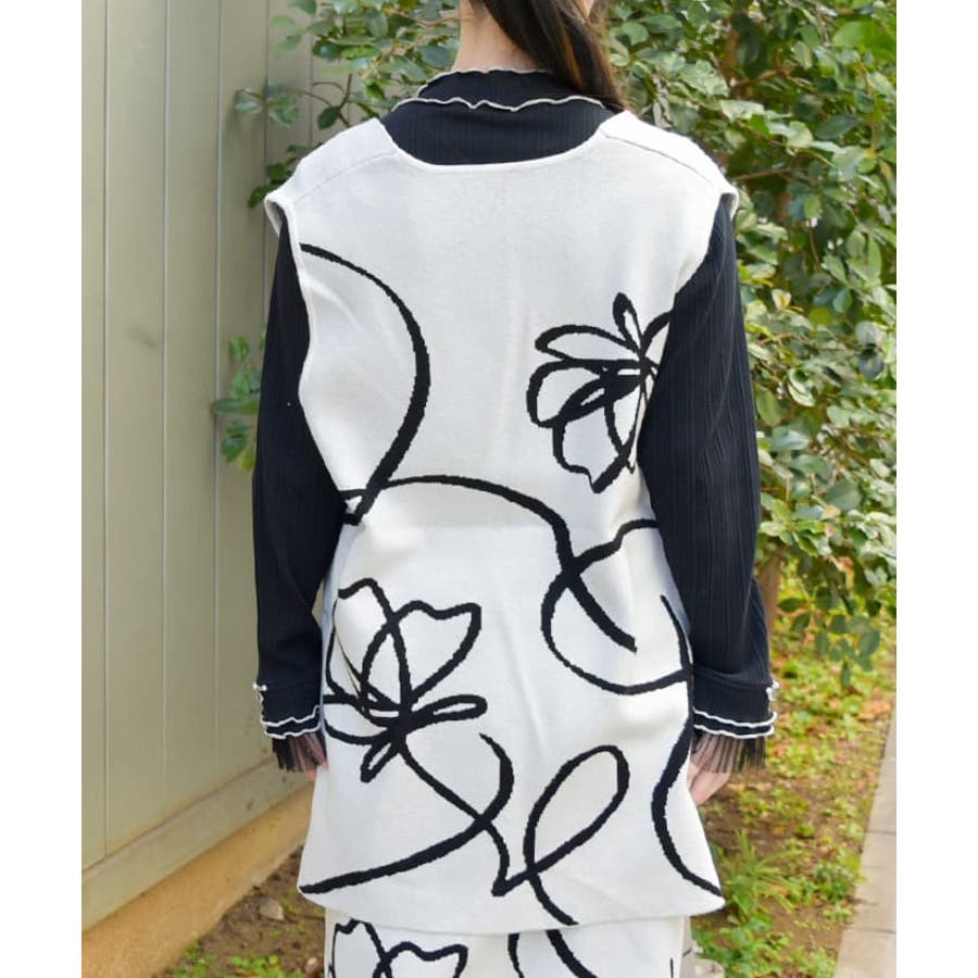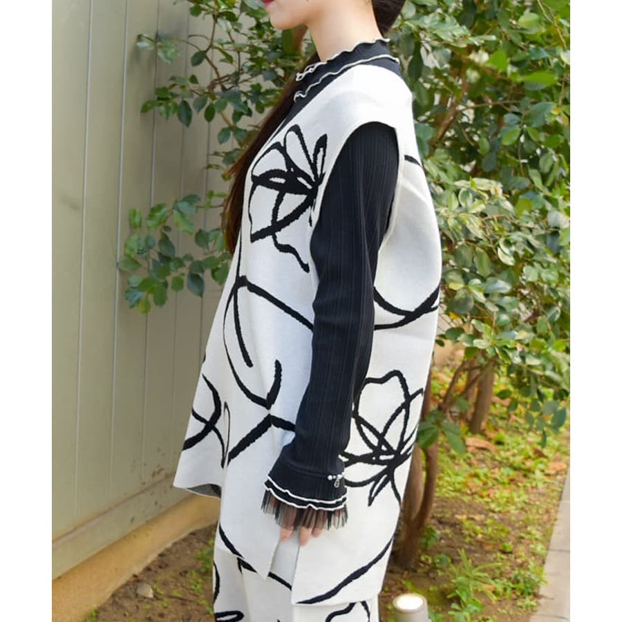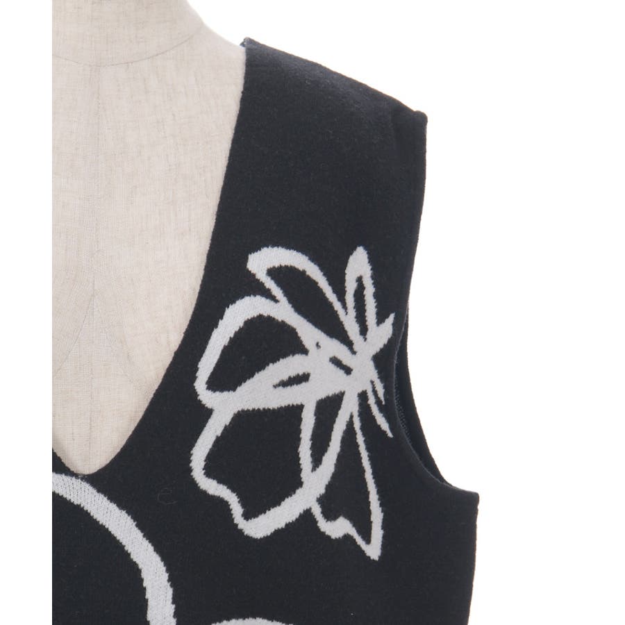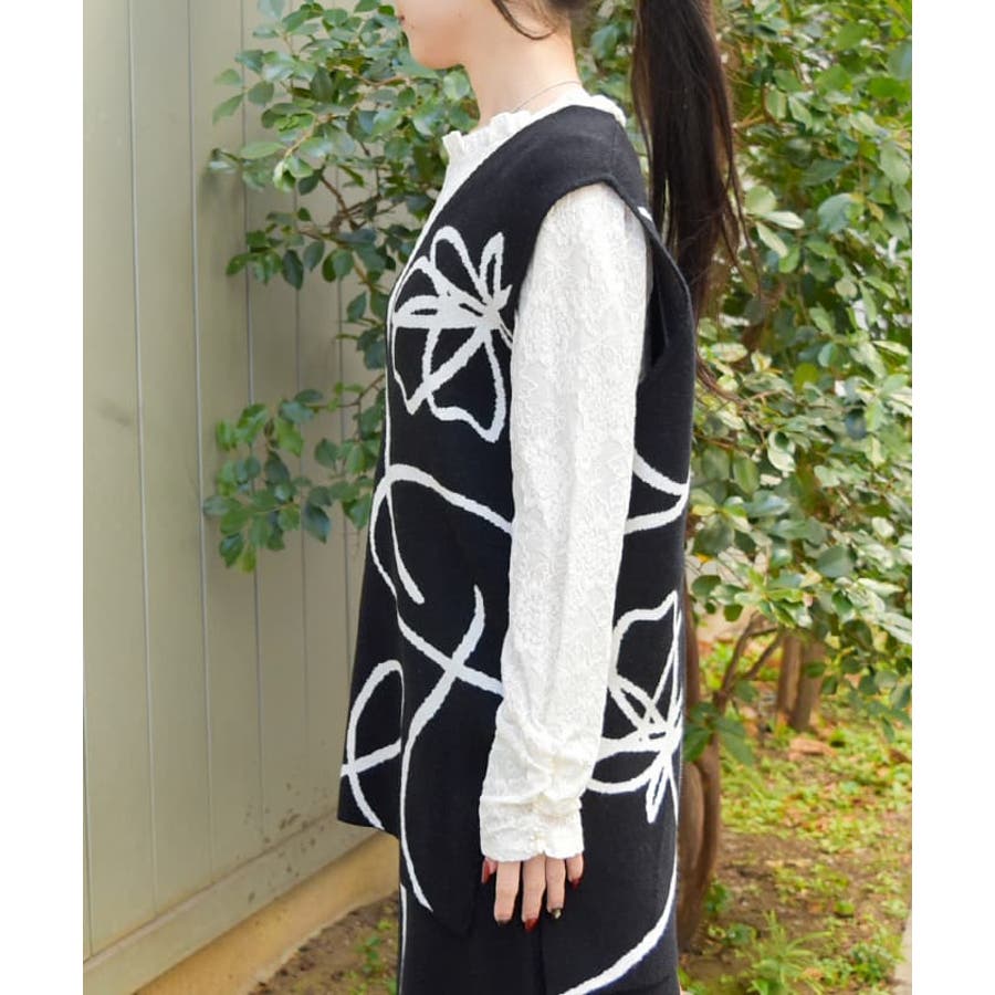 フラワージャガード柄ニットベスト