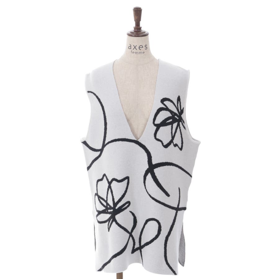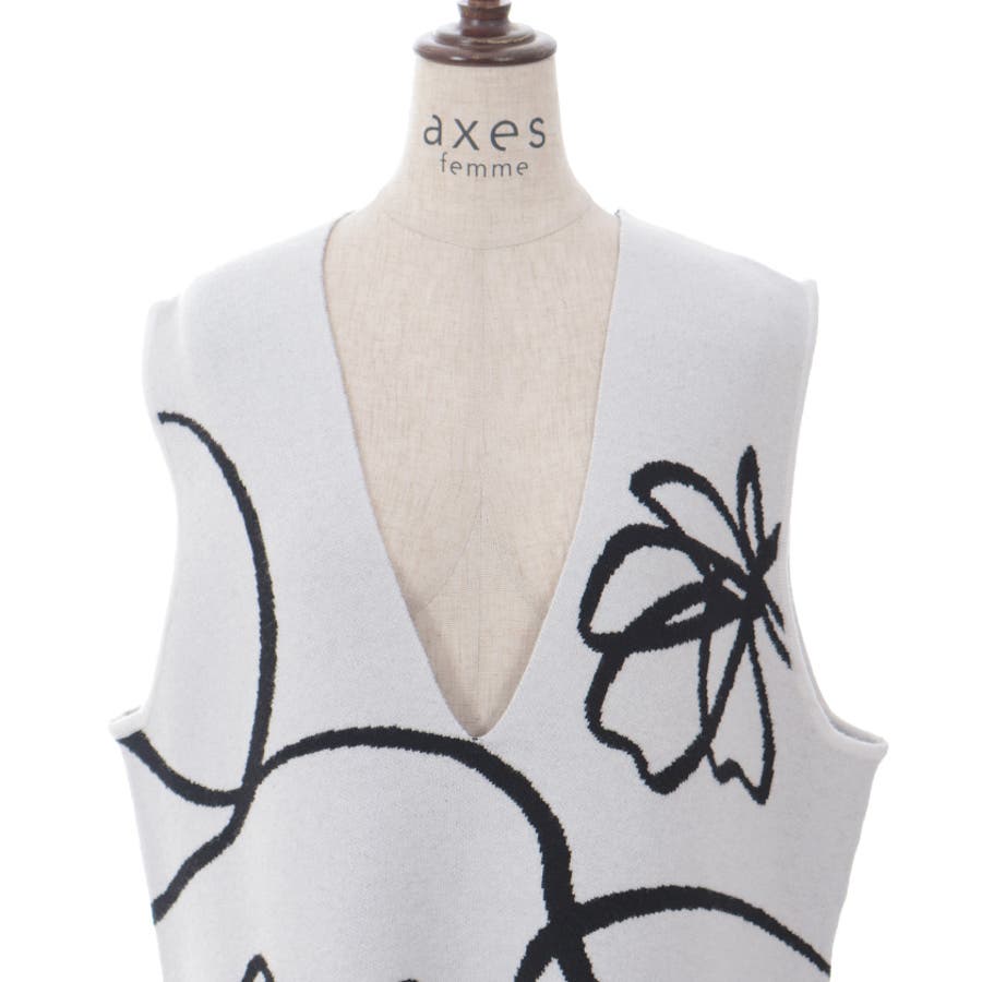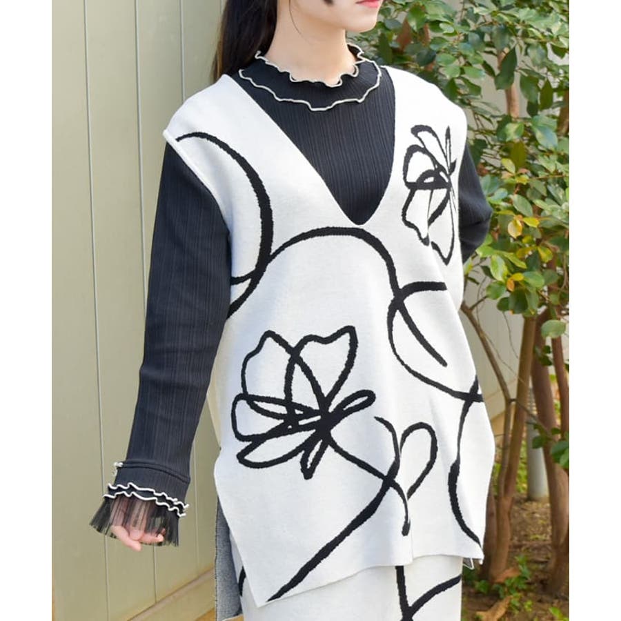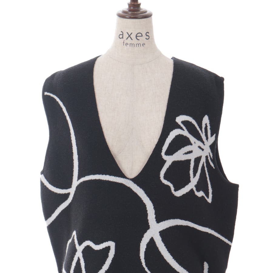 フラワージャガード柄ニットベスト