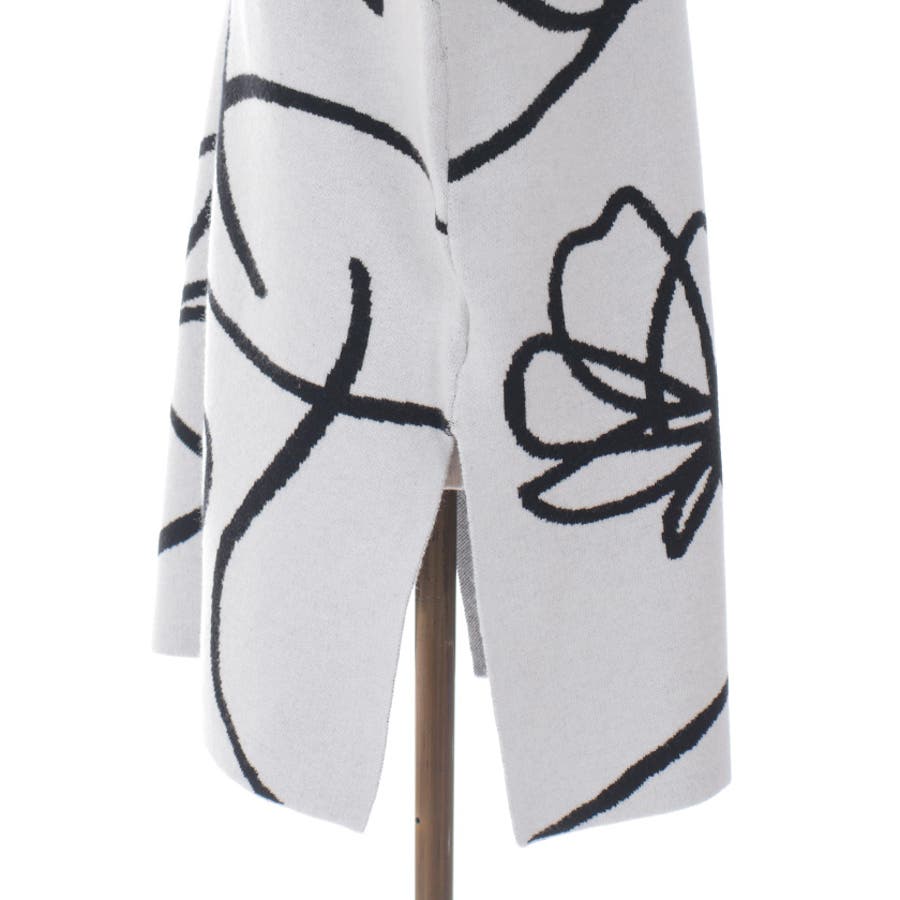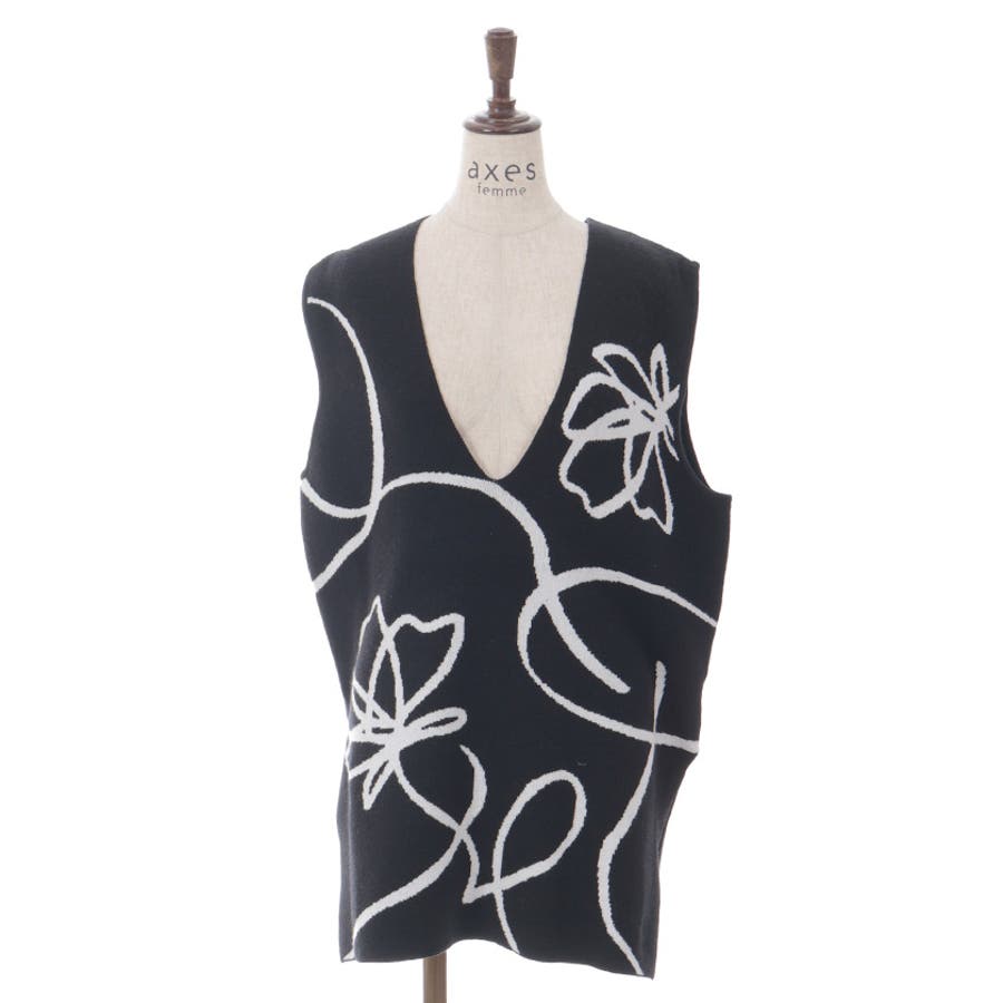 大胆なフラワージャカードデザインが目を引くニットベストです。存在感のある柄とシンプルなシルエットが絶妙にマッチし、コーディネートの幅を広げてくれる一枚です。同じデザインのスカートとセットアップとしても楽しめます。