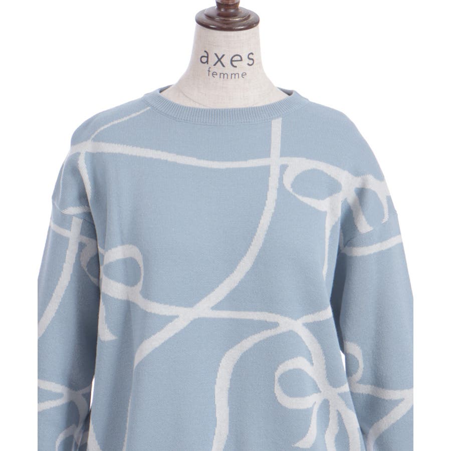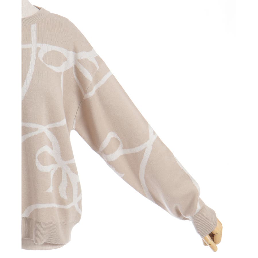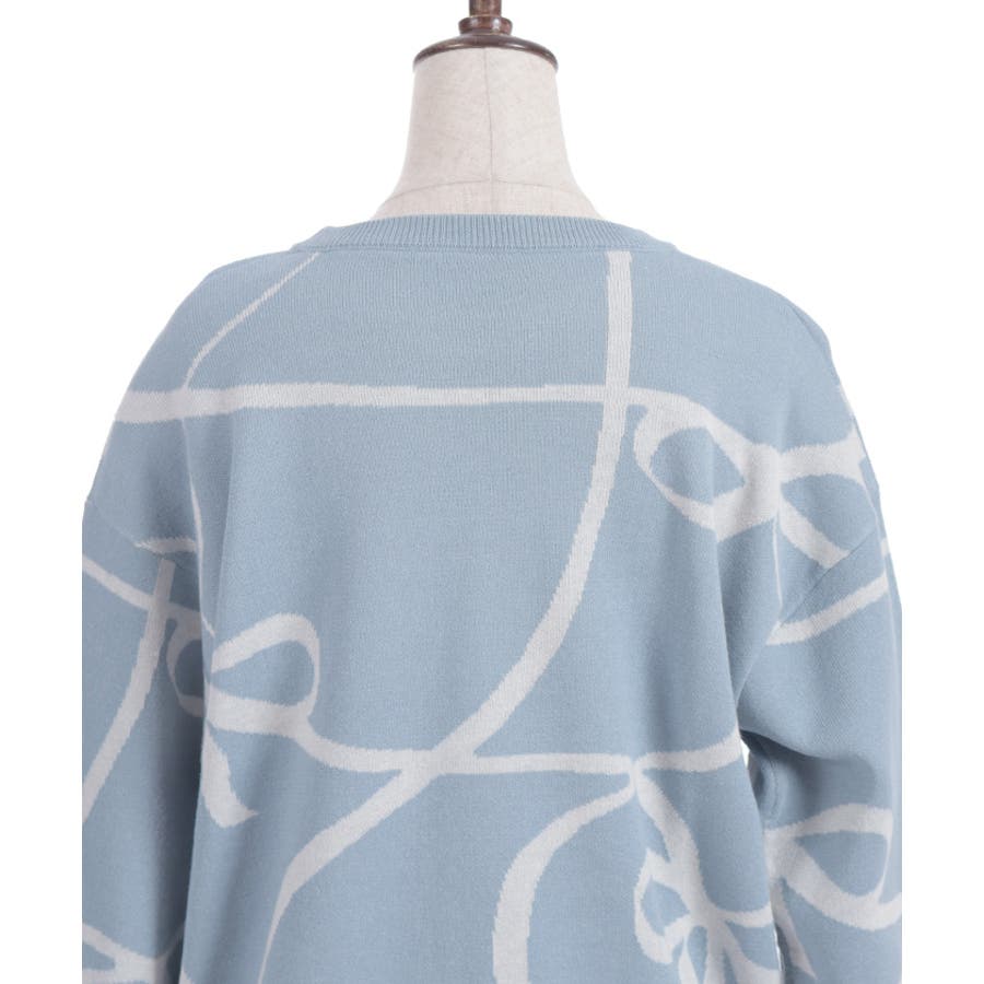 リボン柄ニットプルオーバー