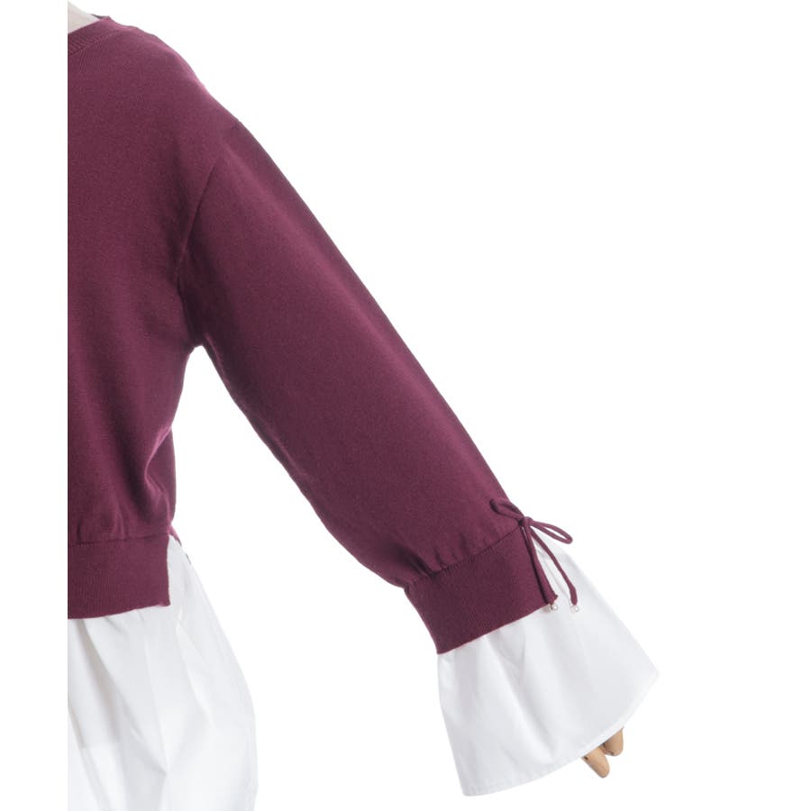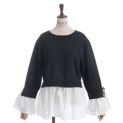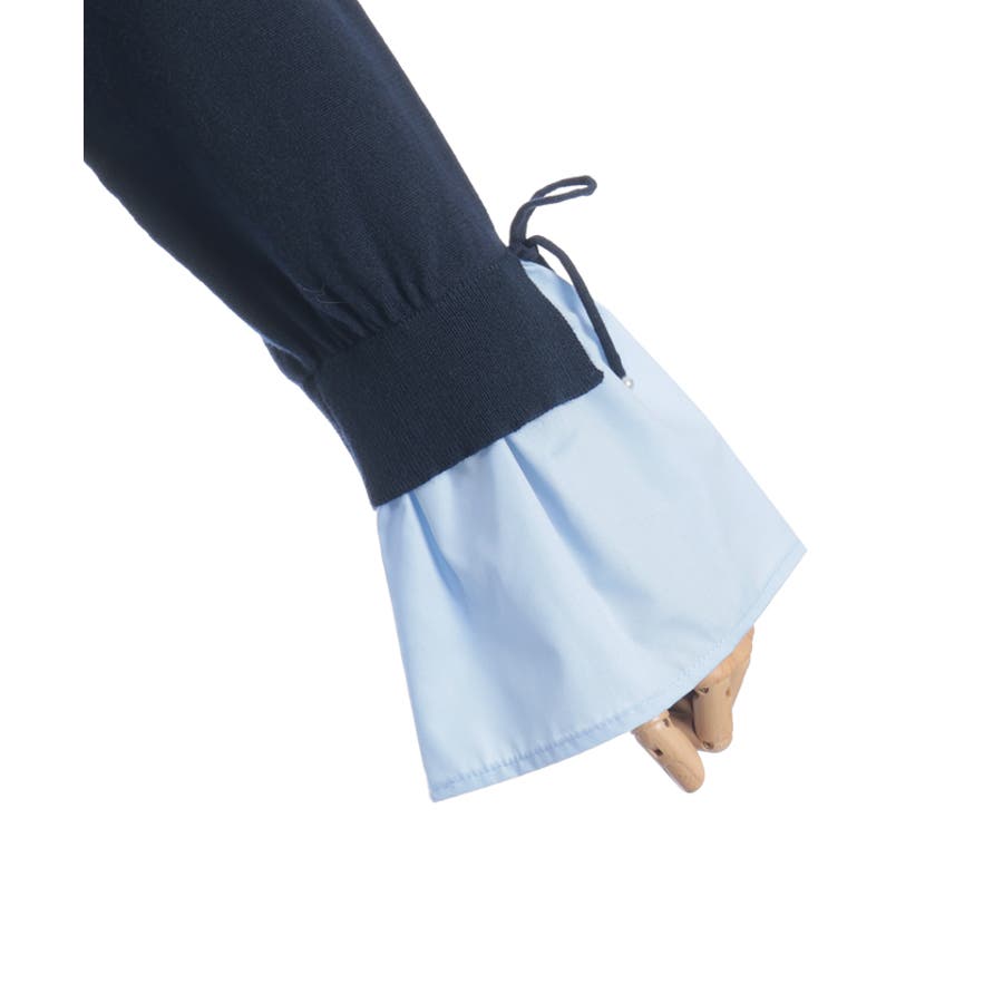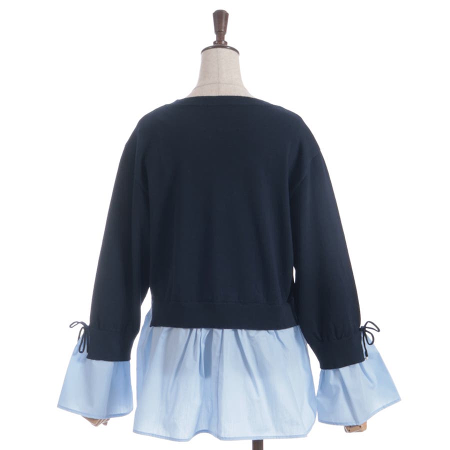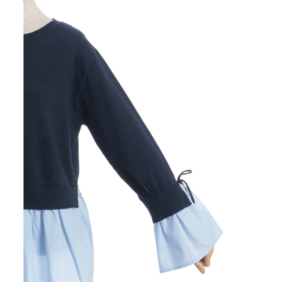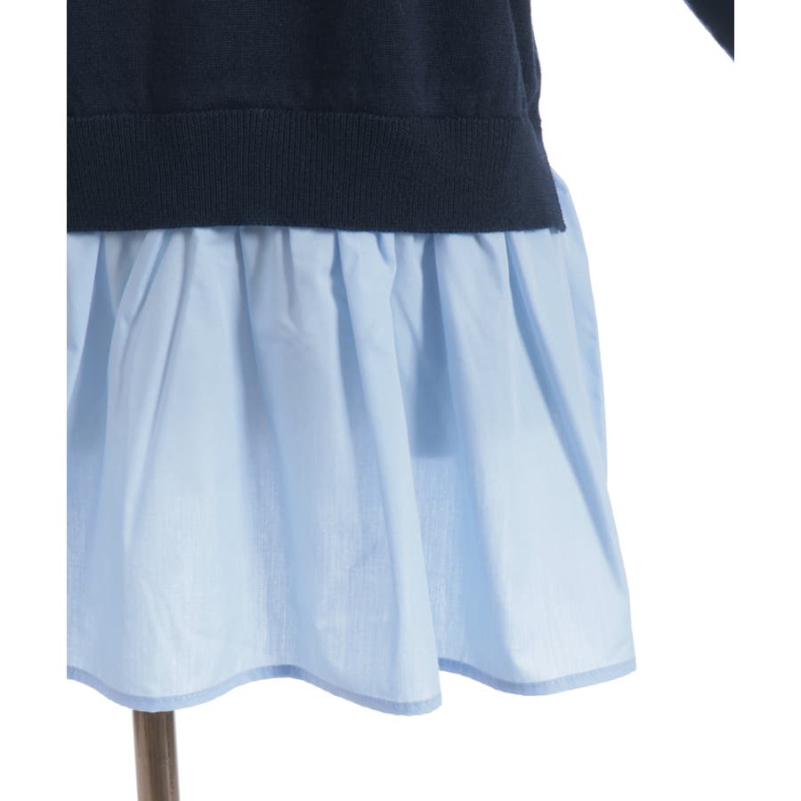 裾と袖のシャツ生地はギャザーフリルの広がりがキレイなデザイン。