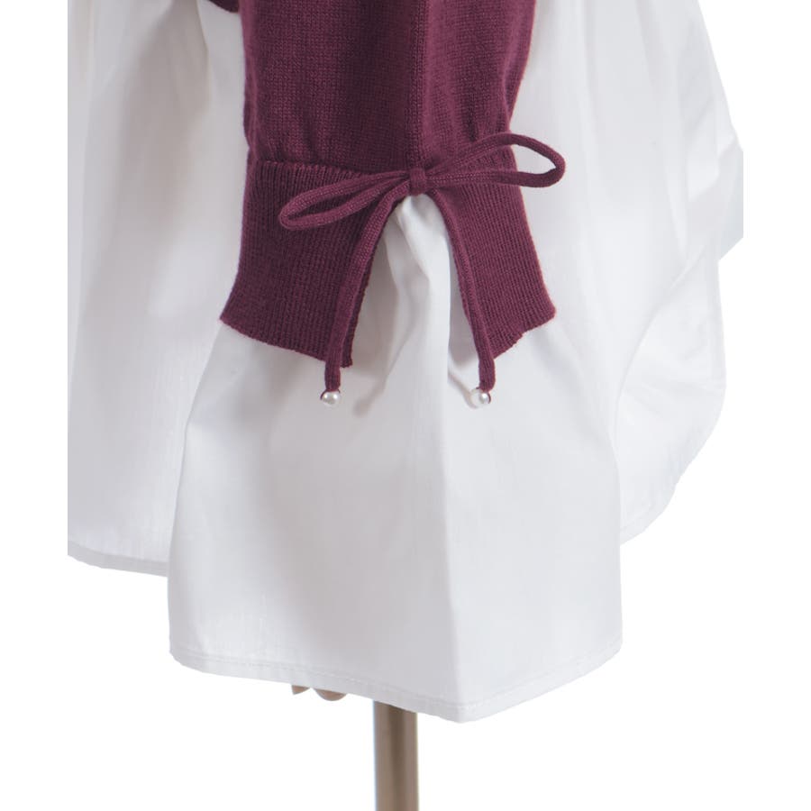 袖口のニットリボンの先にはパールを付けてフェミニンに。
