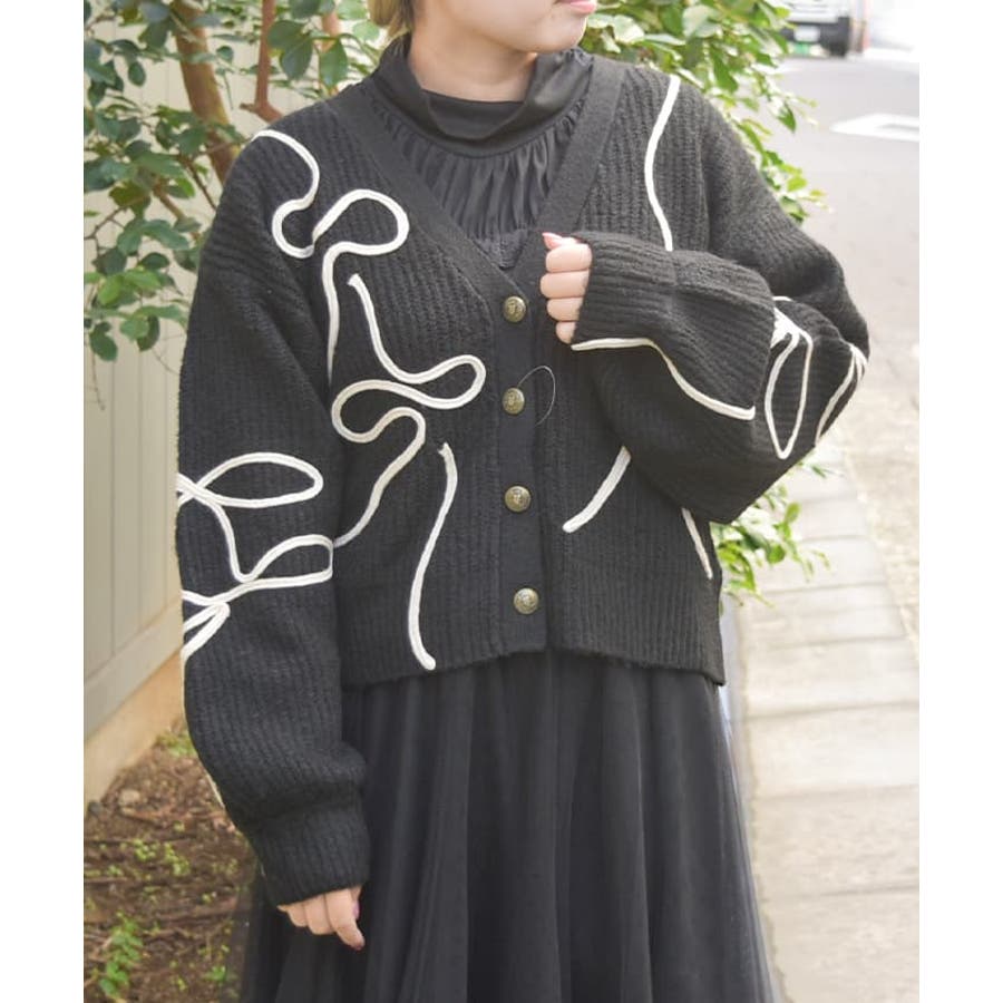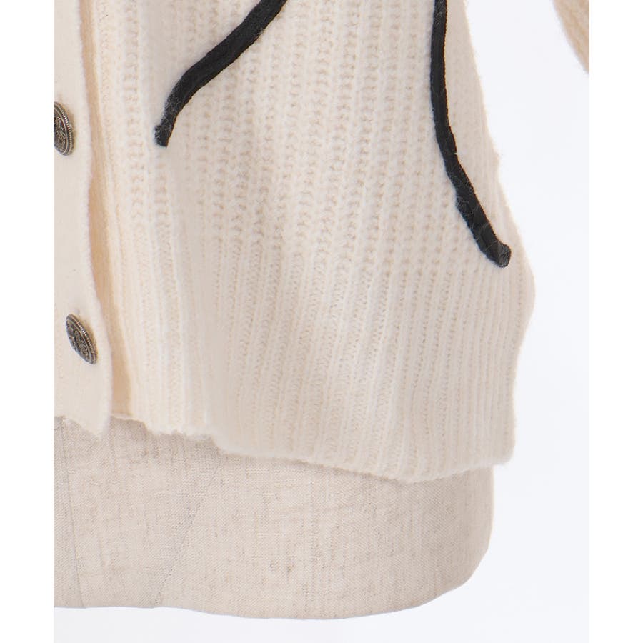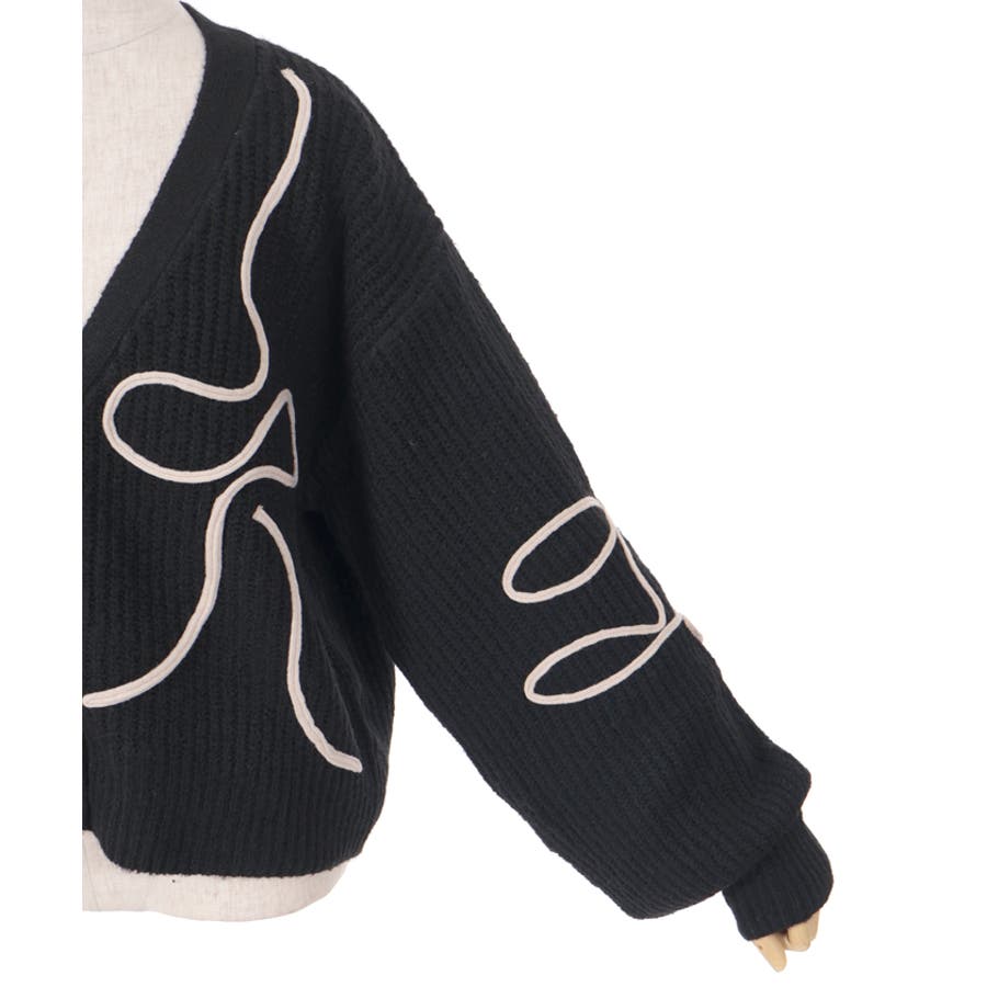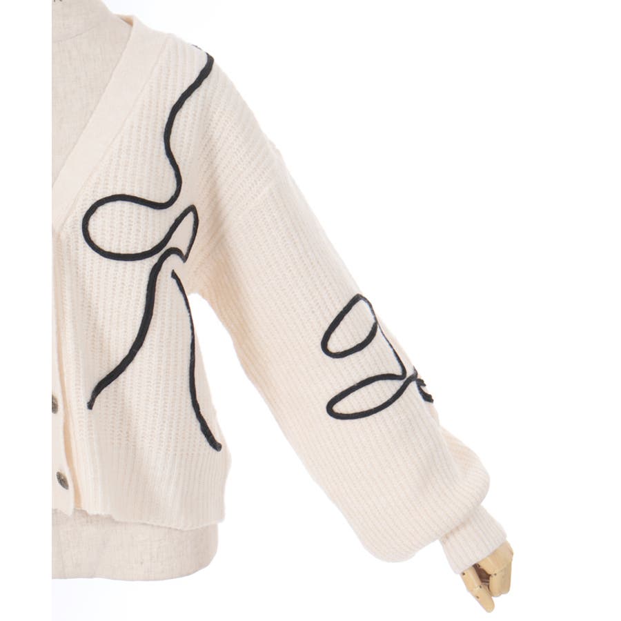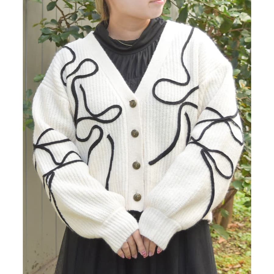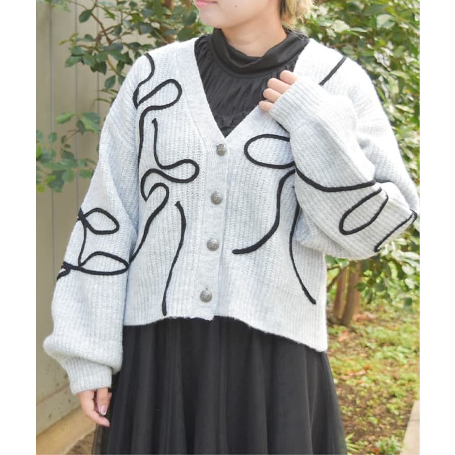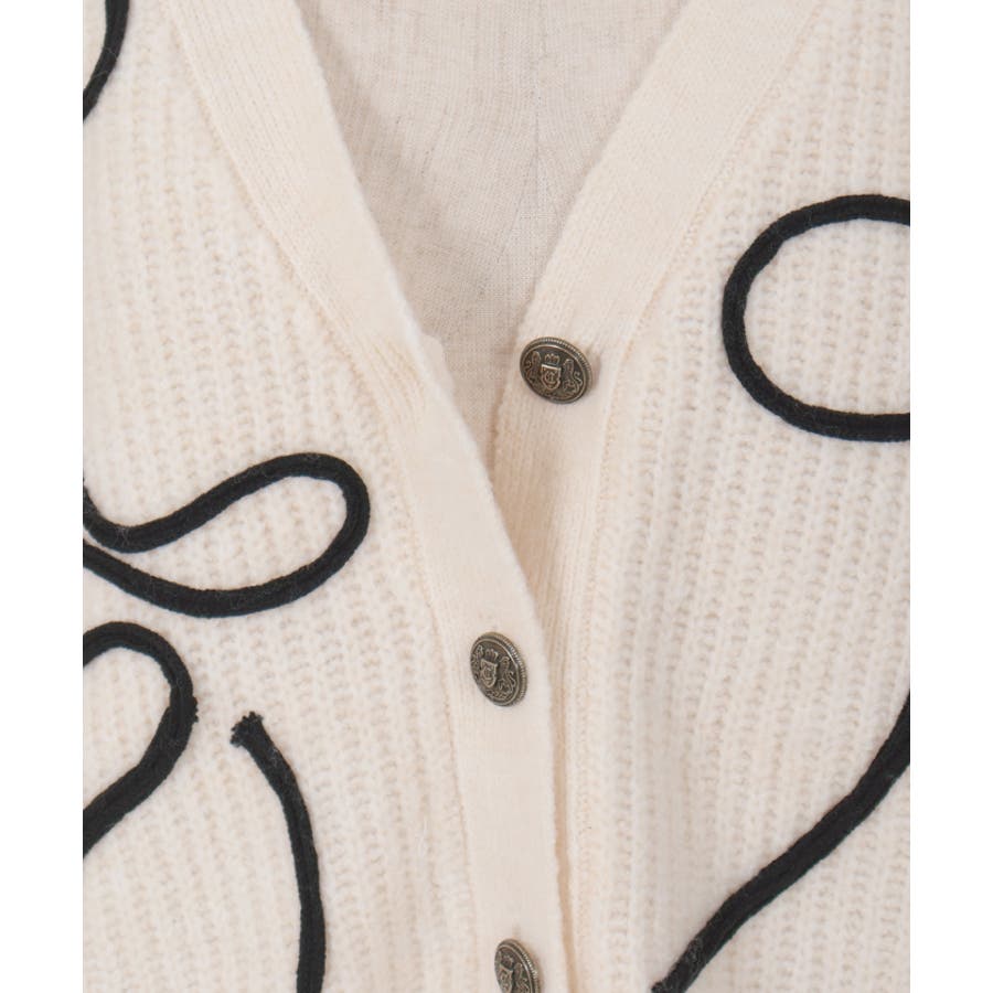 リボンテープ風刺繍ニットカーディガン
