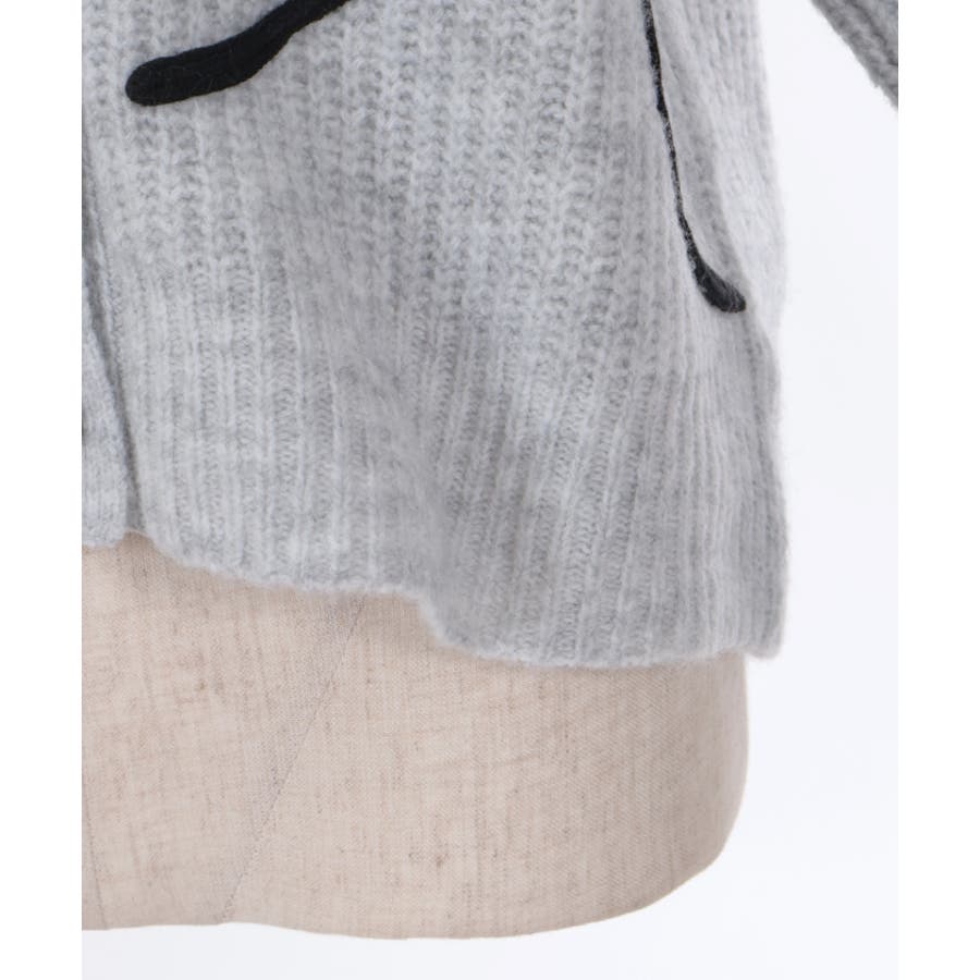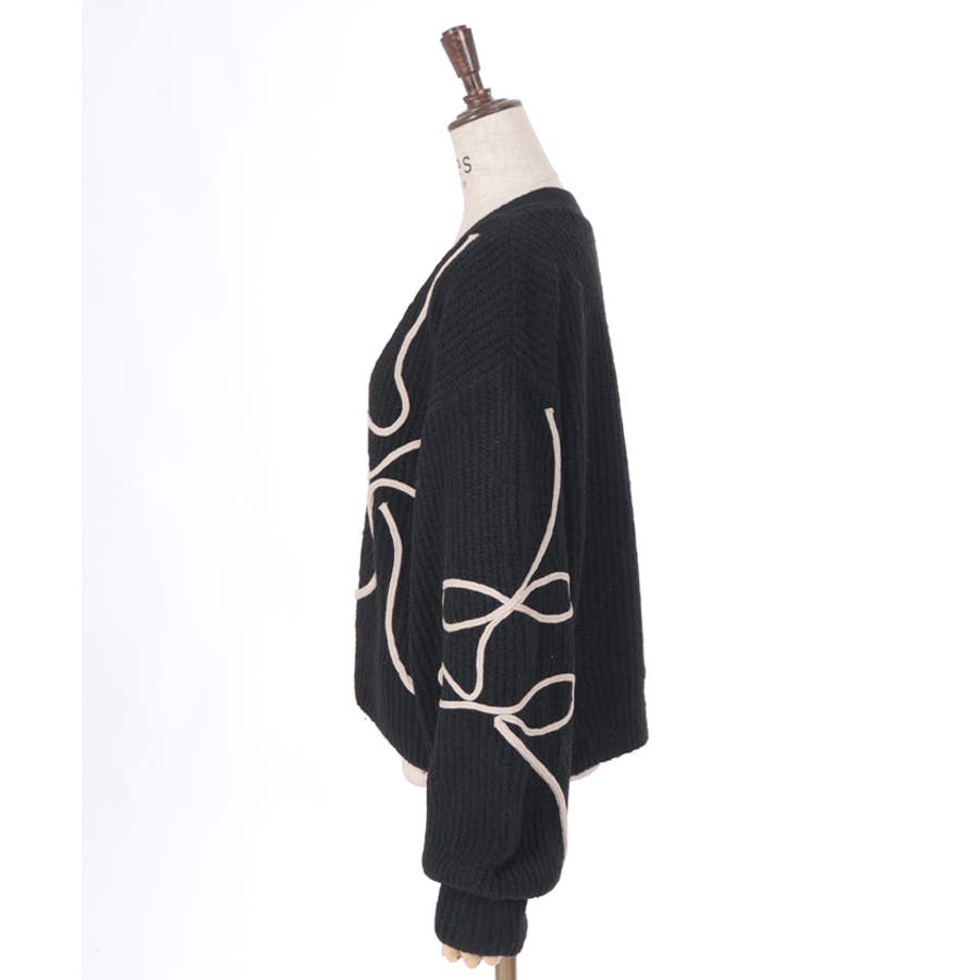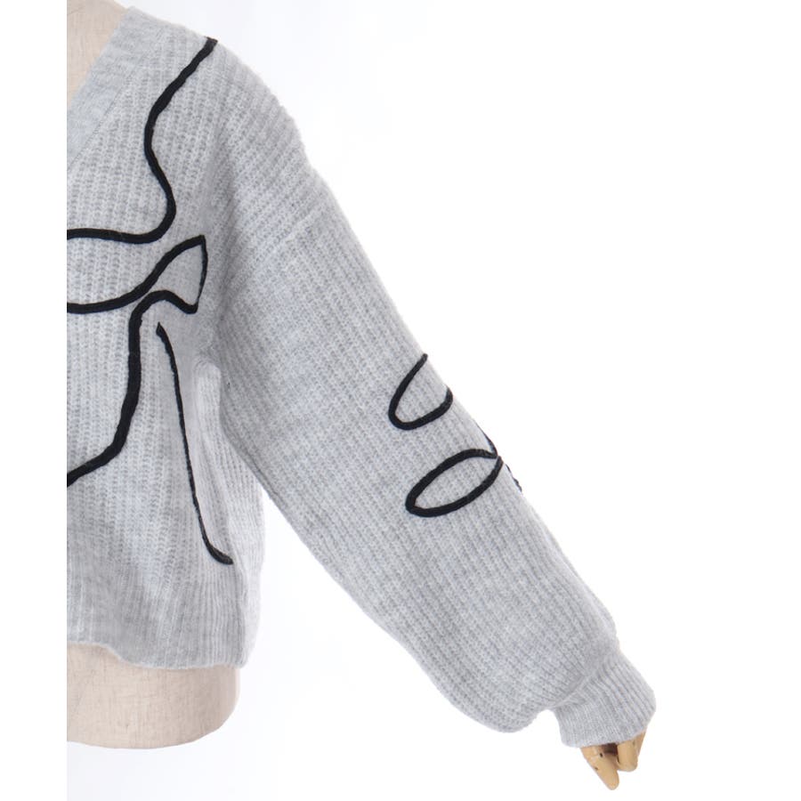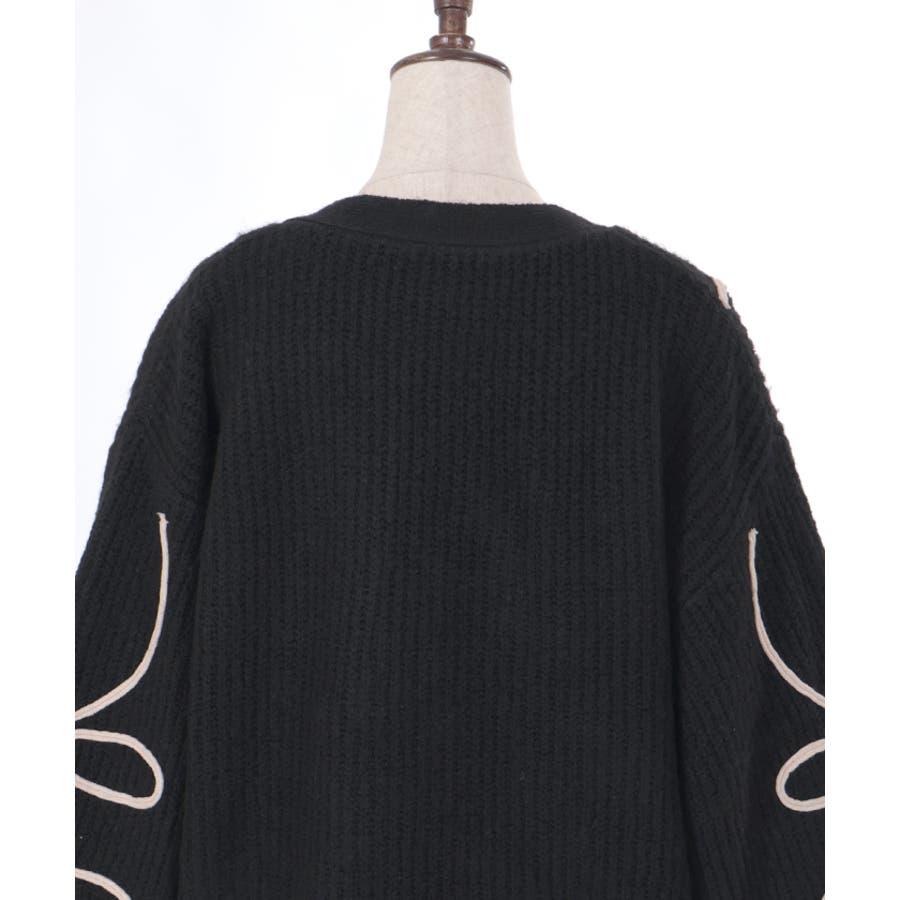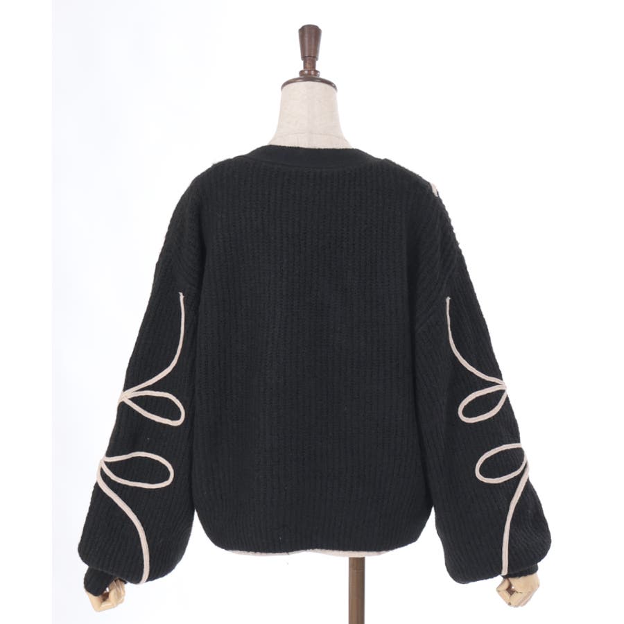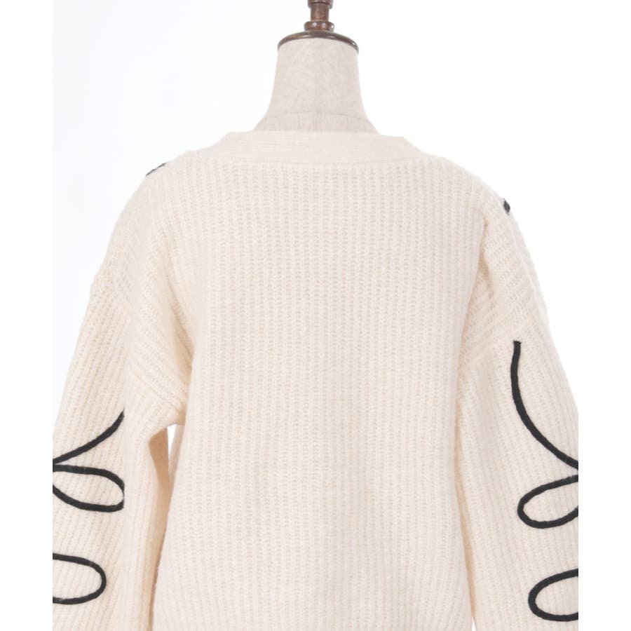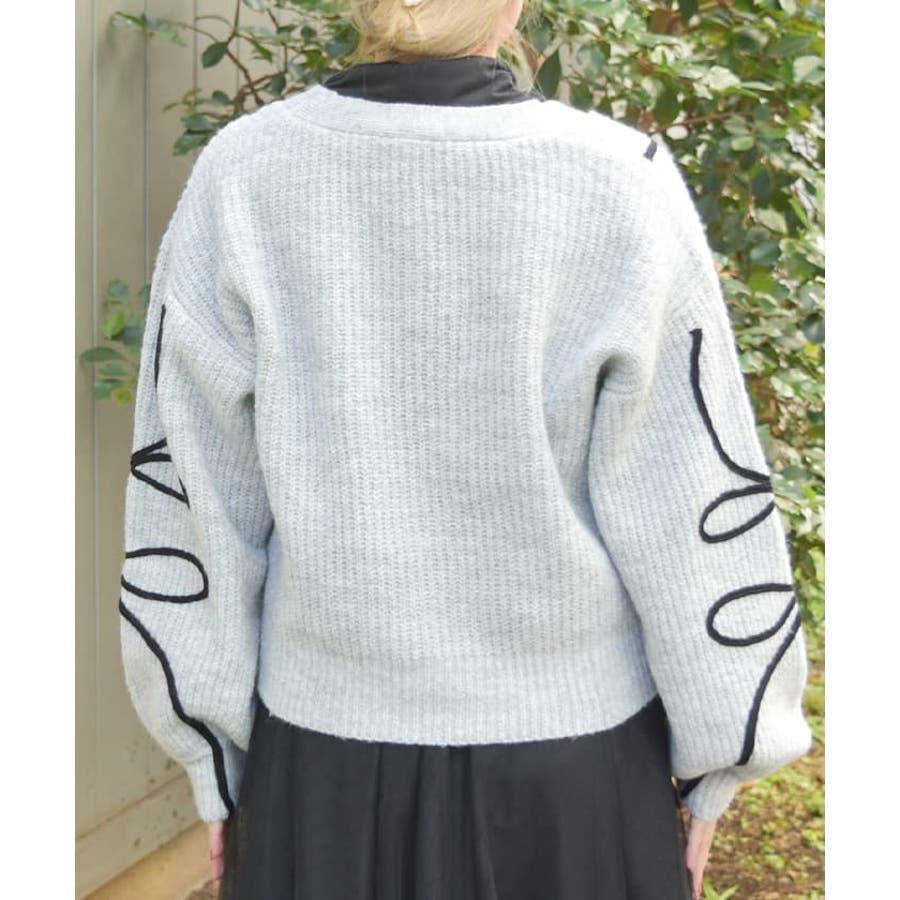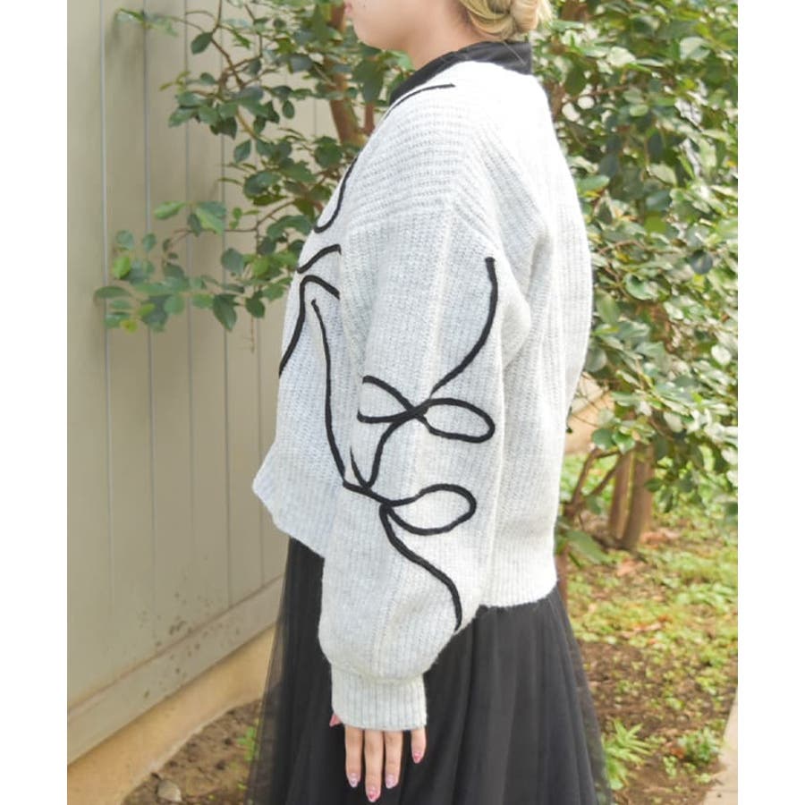 リボンテープ風刺繍ニットカーディガン