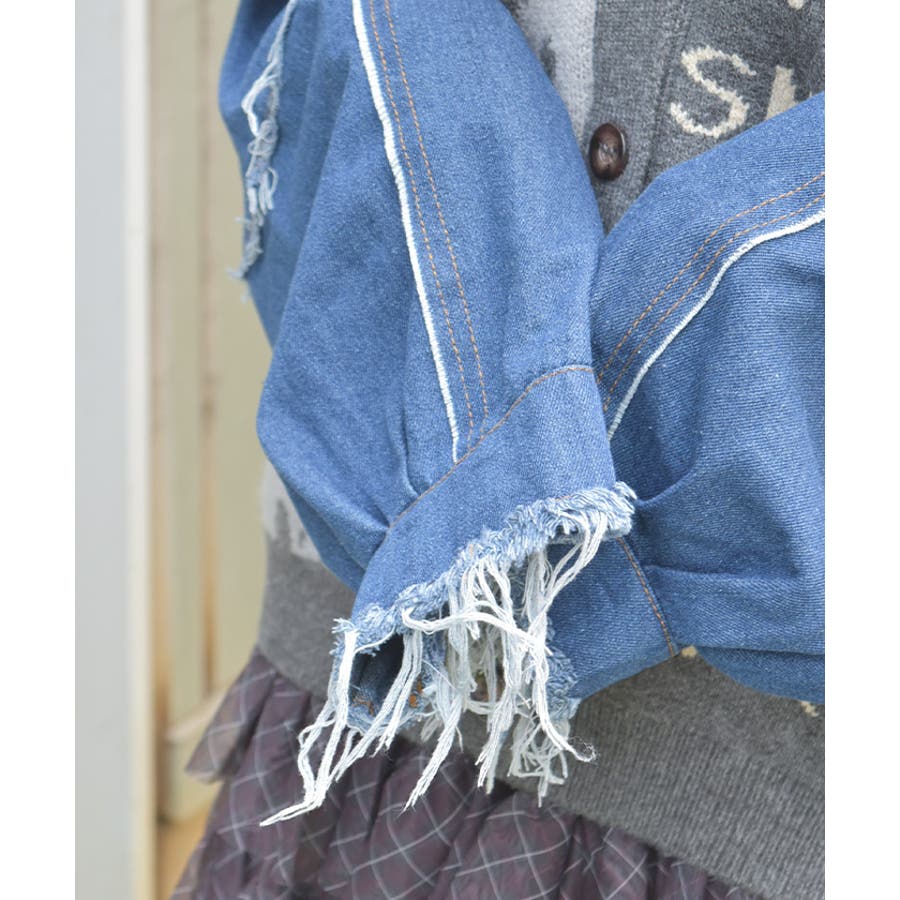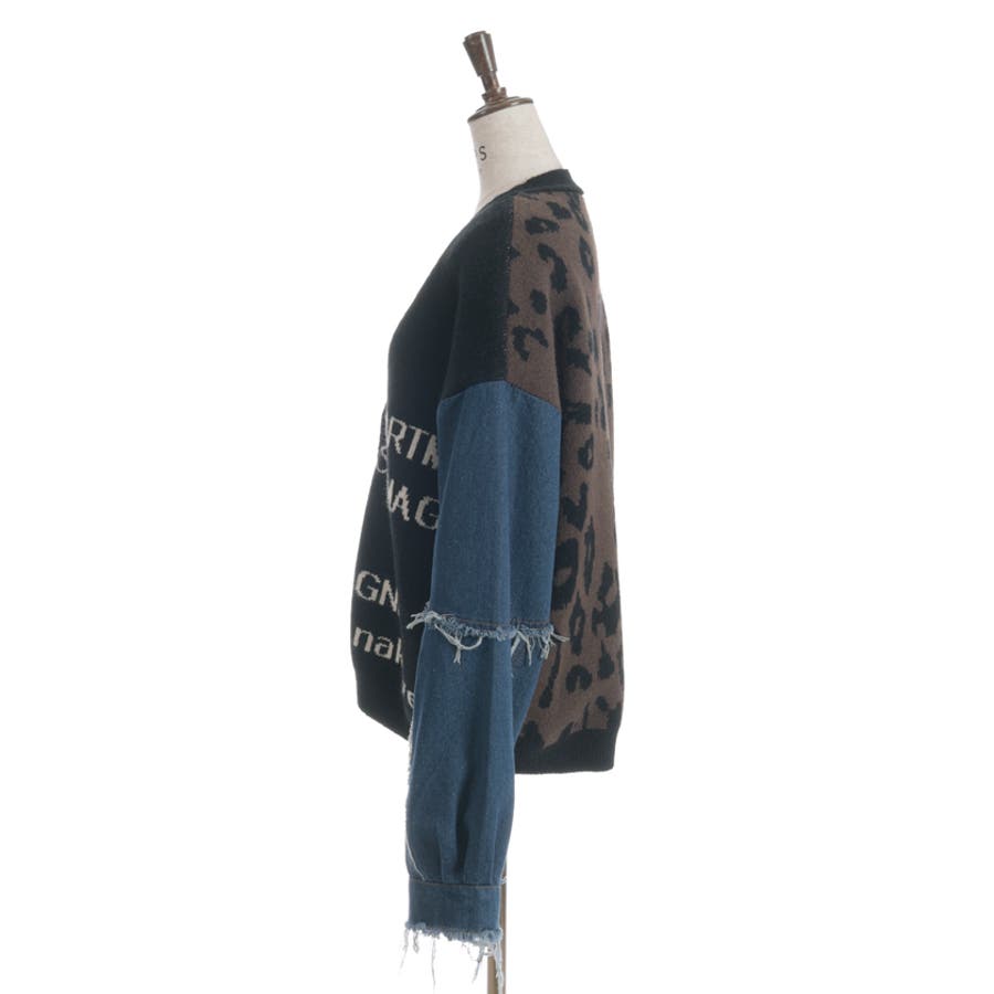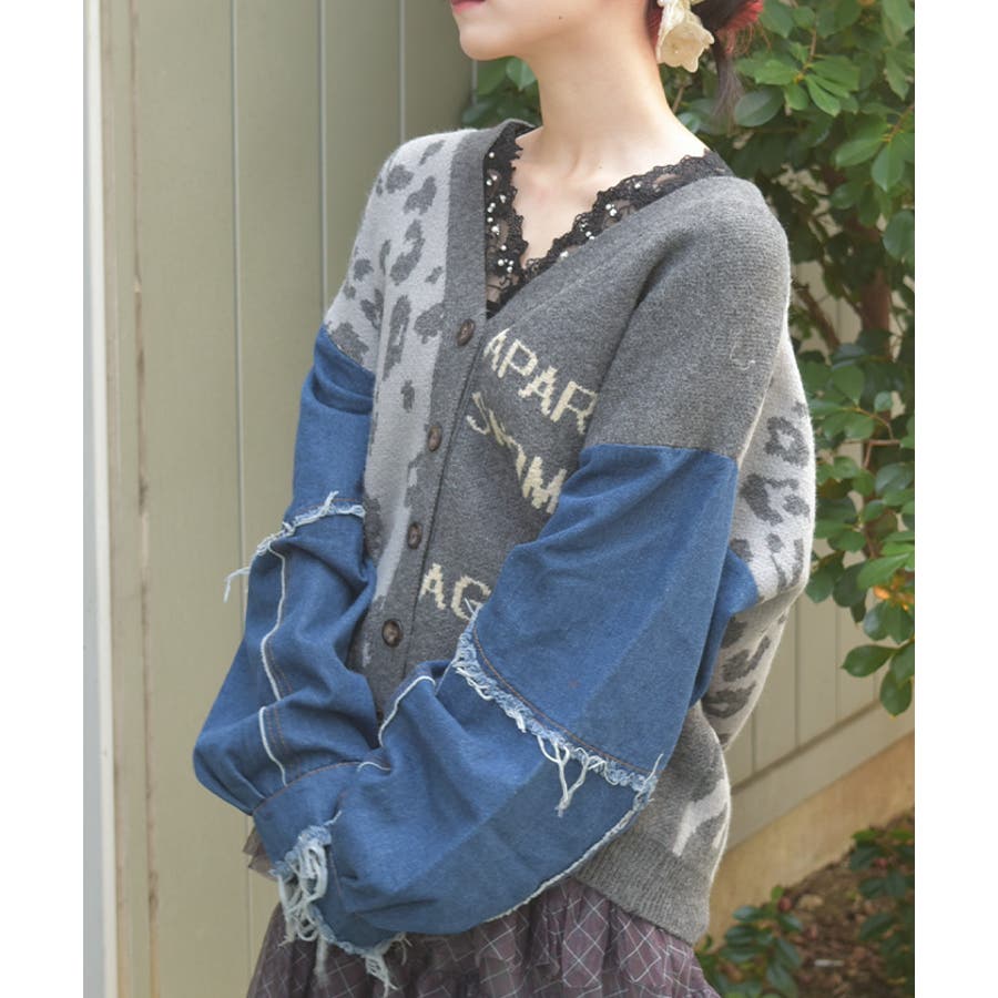 前身頃にはアニマル柄×ロゴ、袖には異素材デニムを使用。
