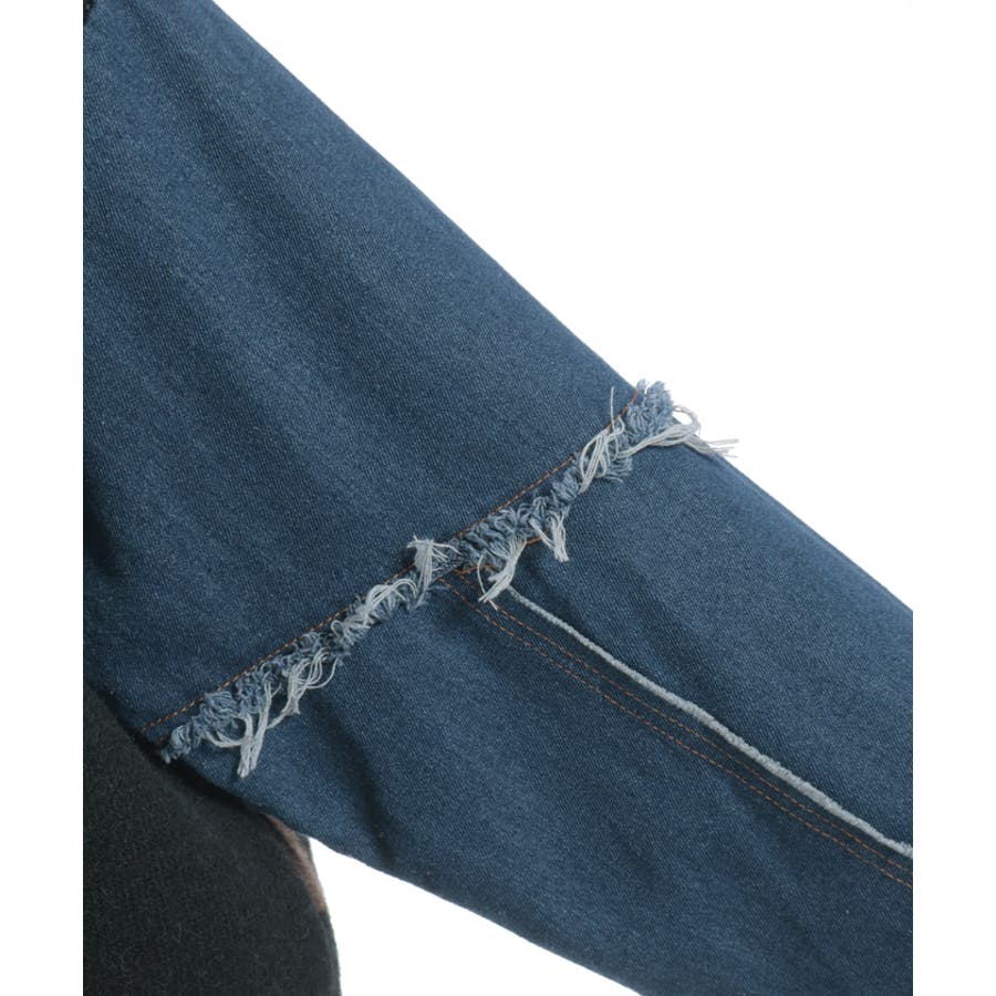 大胆なアニマル柄とデニム素材を組み合わせた存在感抜群の羽織。