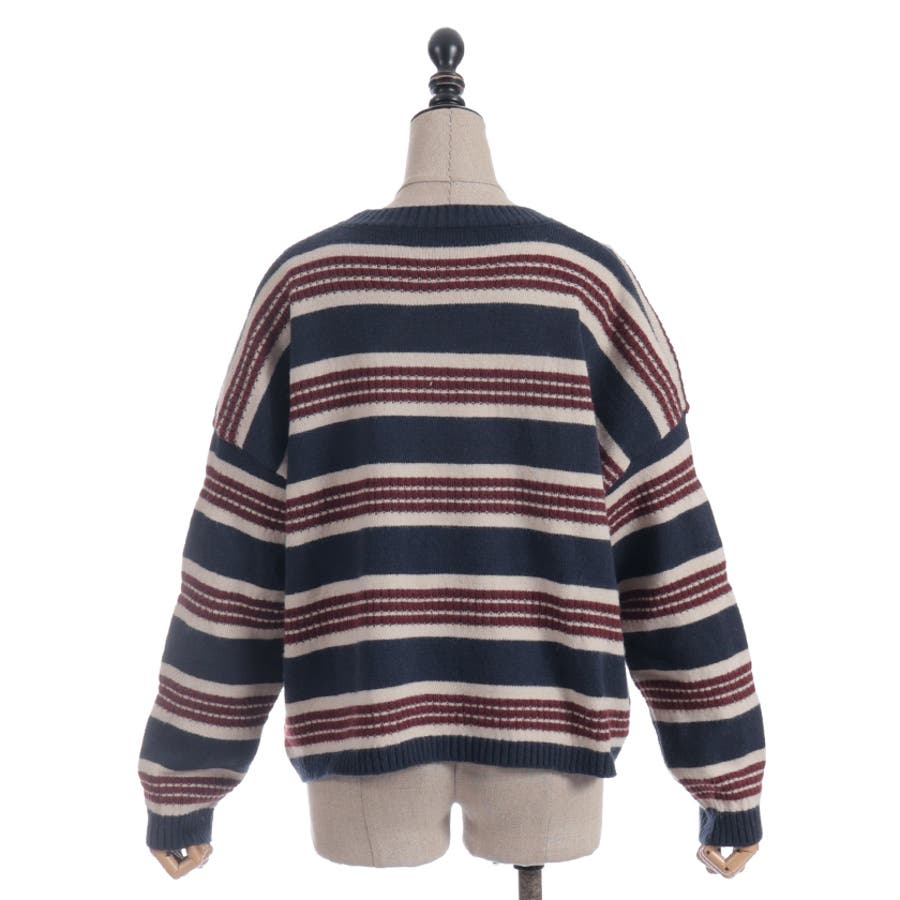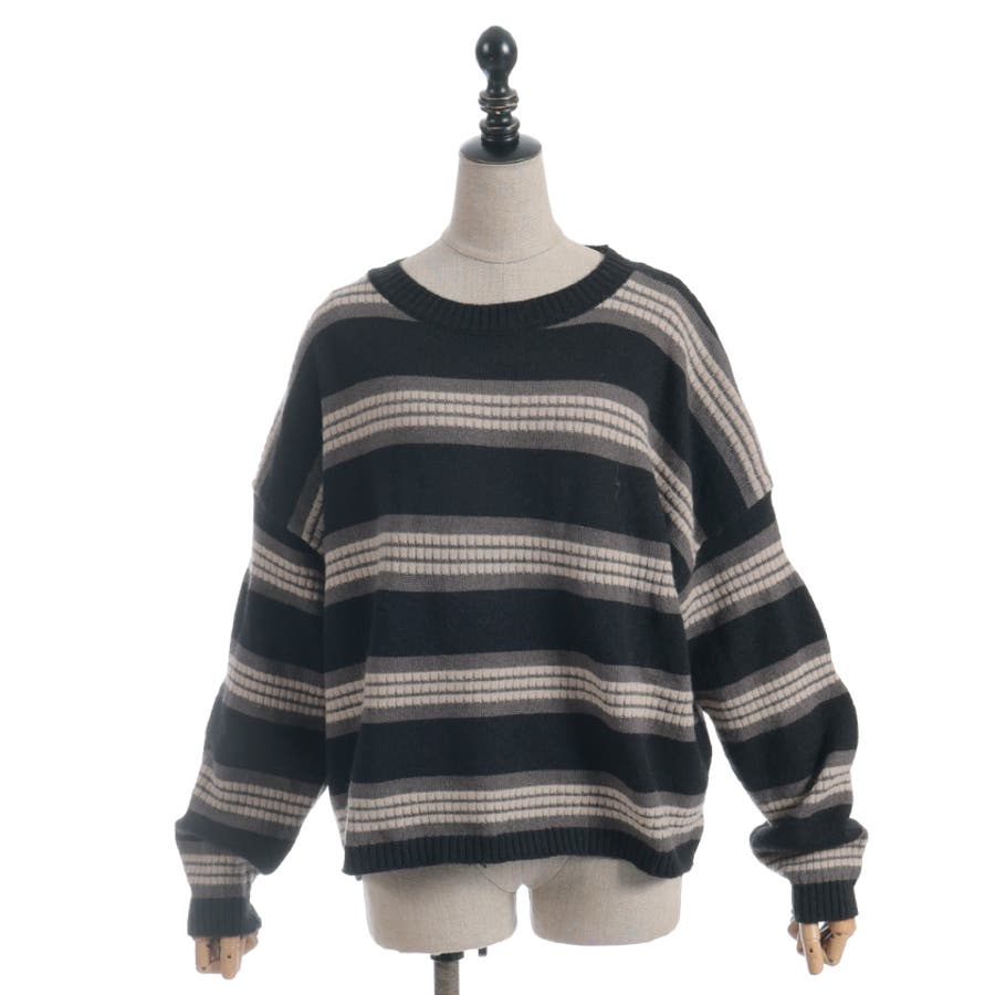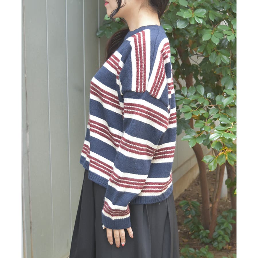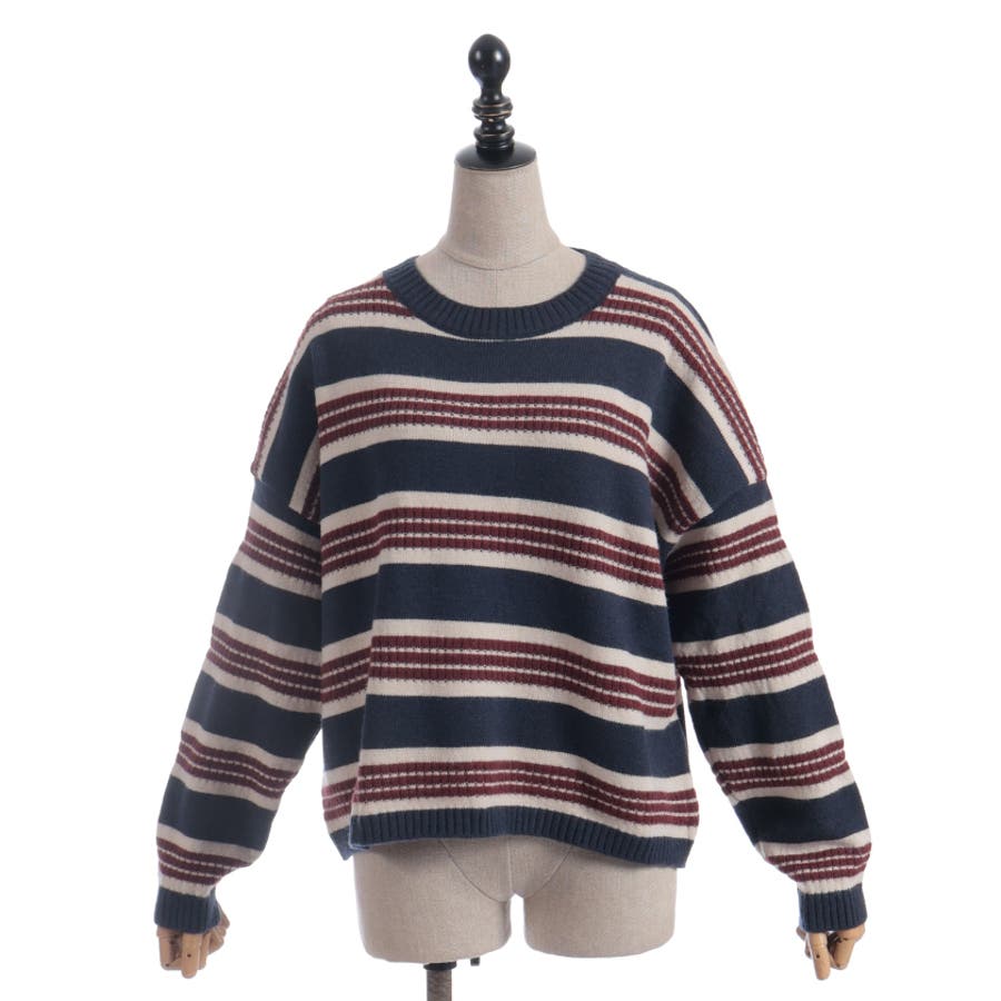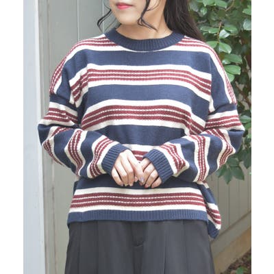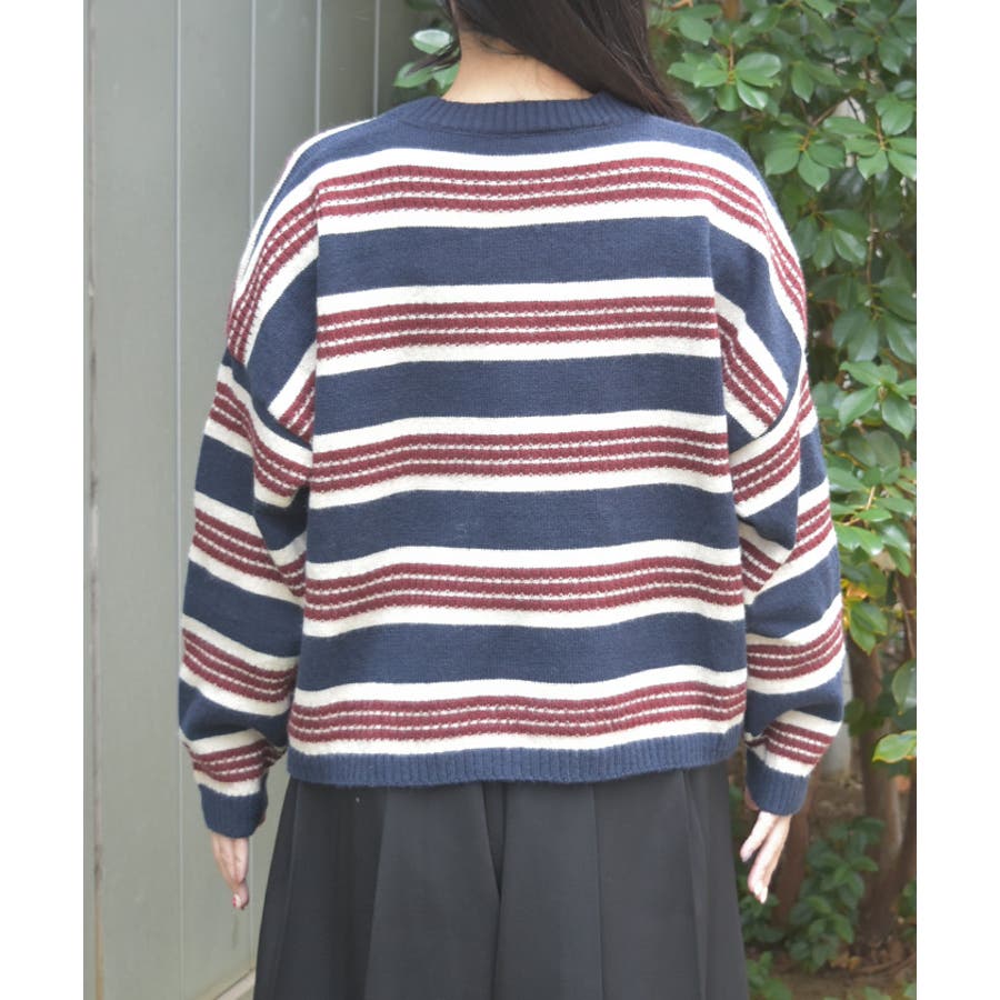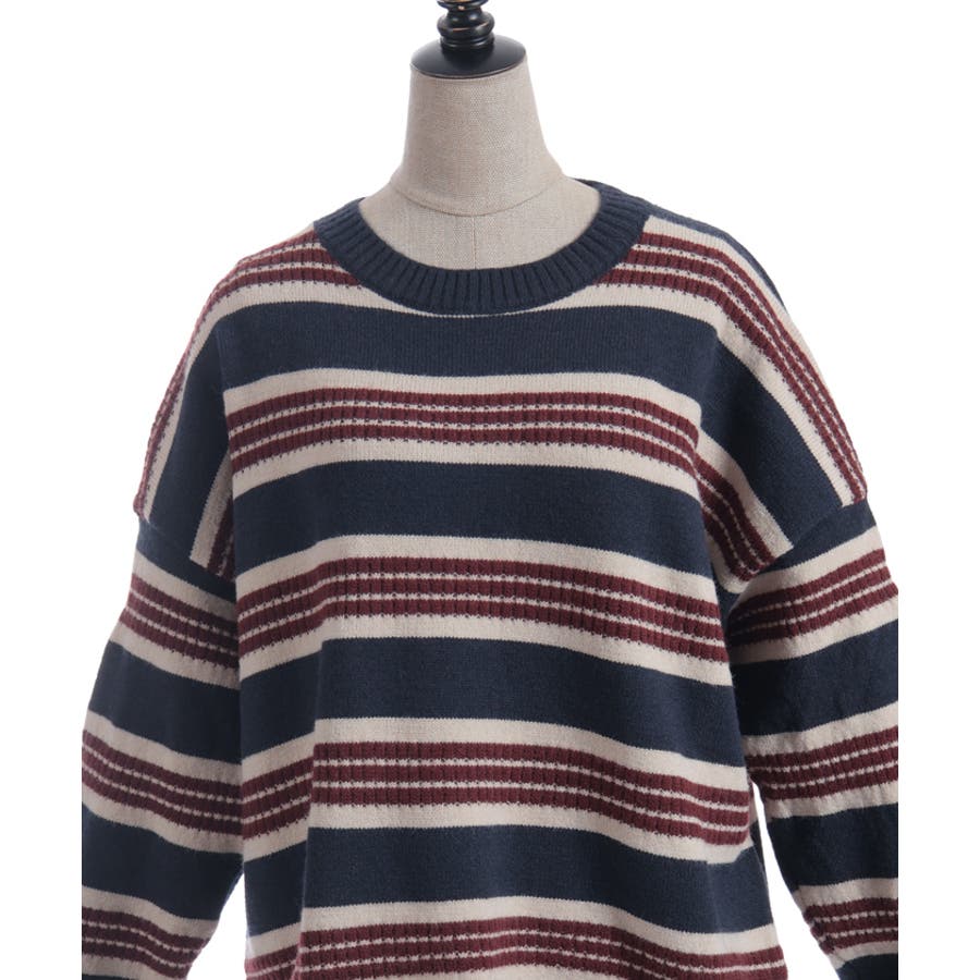 やわらかな風合いのニットで仕立てたボーダープルオーバー。