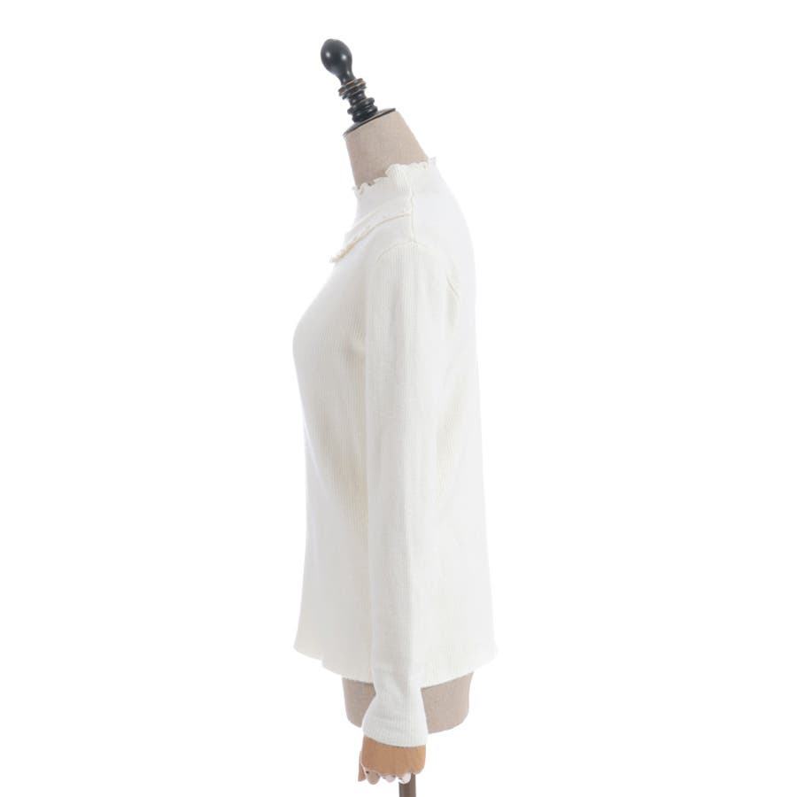 首元と袖口に施されたさりげないフリルがポイント。シンプルな中にも可憐さをプラスし、顔まわりを優しく華やかに見せてくれます。きれいめにもカジュアルにも合わせやすい、ほどよいフィット感のシルエットが魅力です。