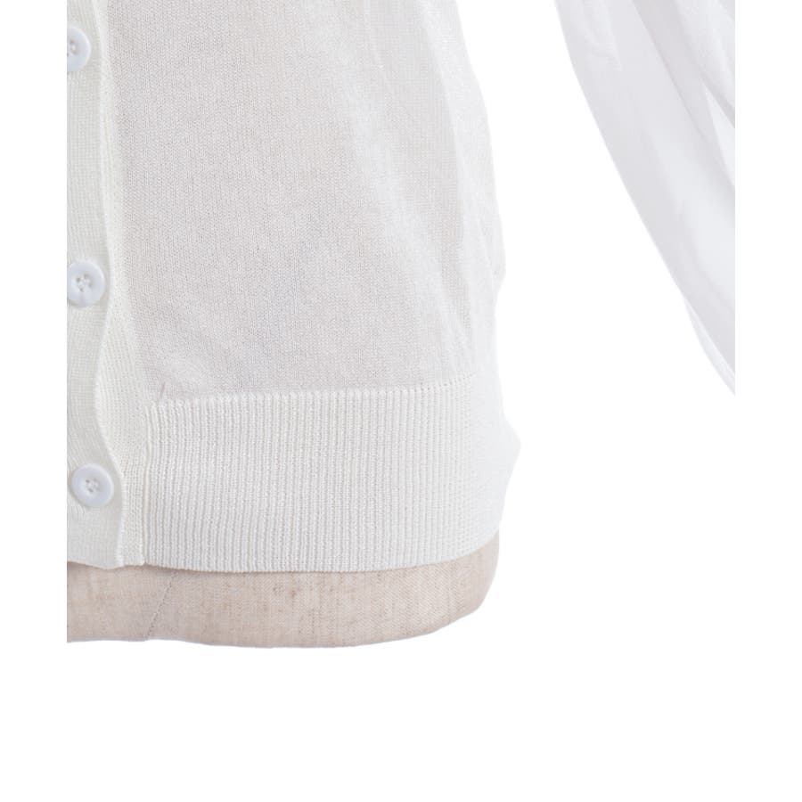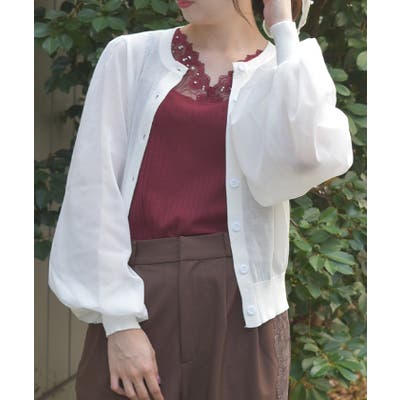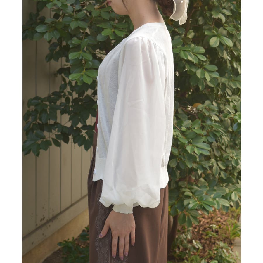 ふんわりとした袖が印象的なニットカーディガン。