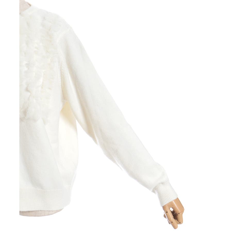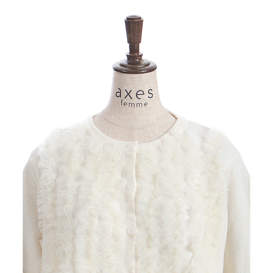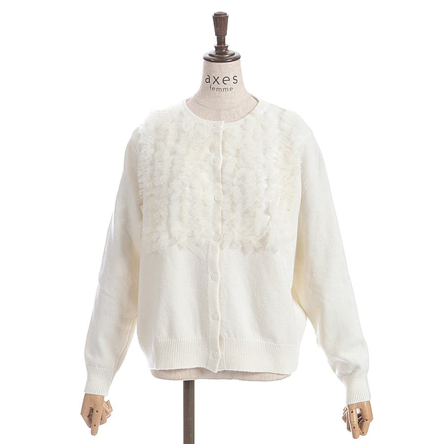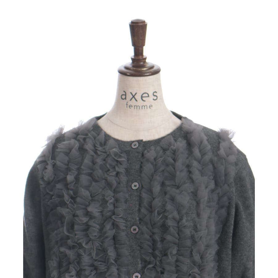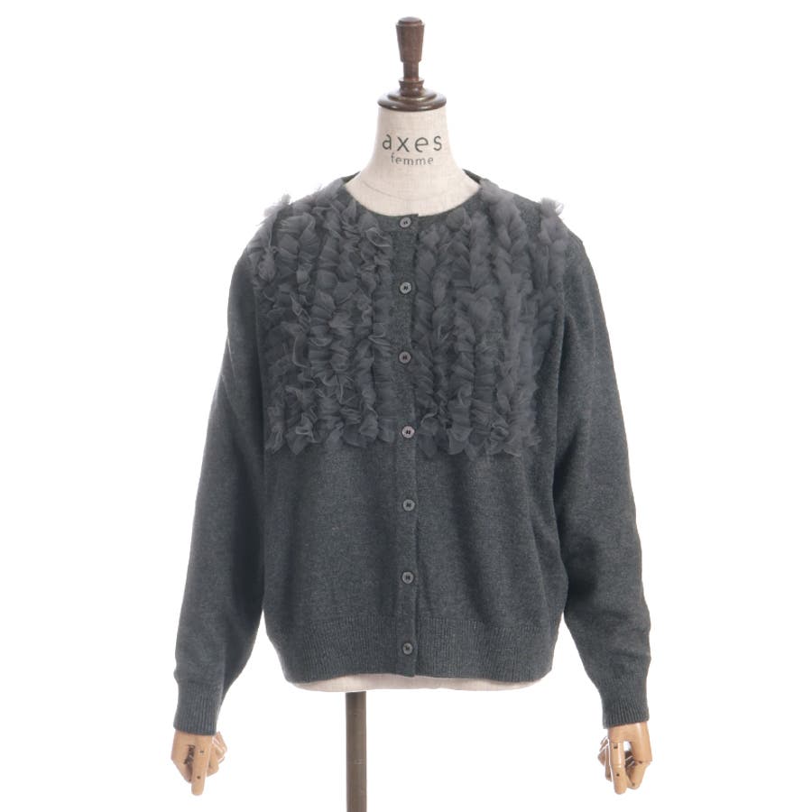 チュールフリルを贅沢にあしらったニットカーディガン。柔らかな肌触りのニット素材で、デイリーにも着やすい一枚です。