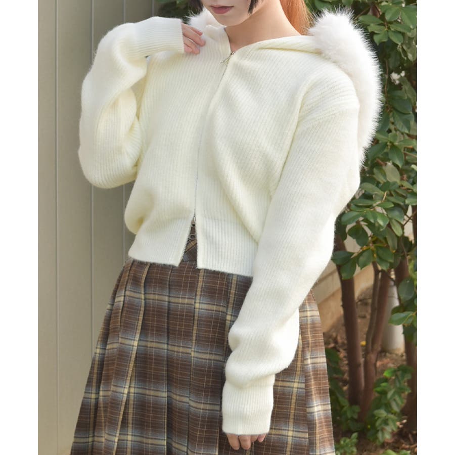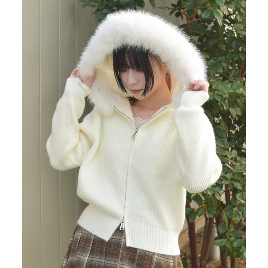 ファー付ニットパーカー