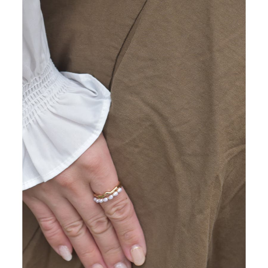 アシンメトリーな裾ラインが動くたびに揺れ、上品でナチュラルな印象を与えます。