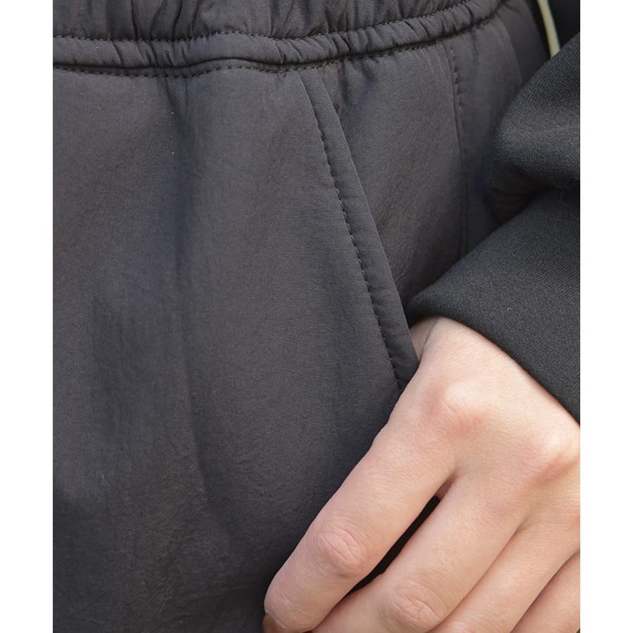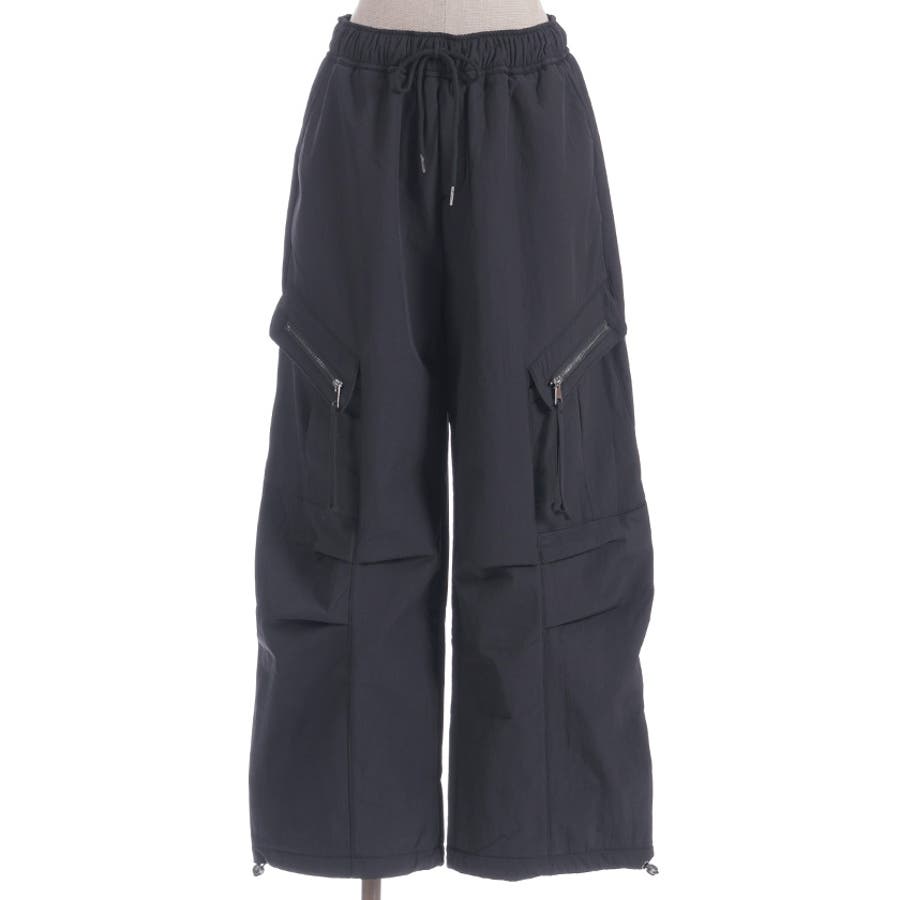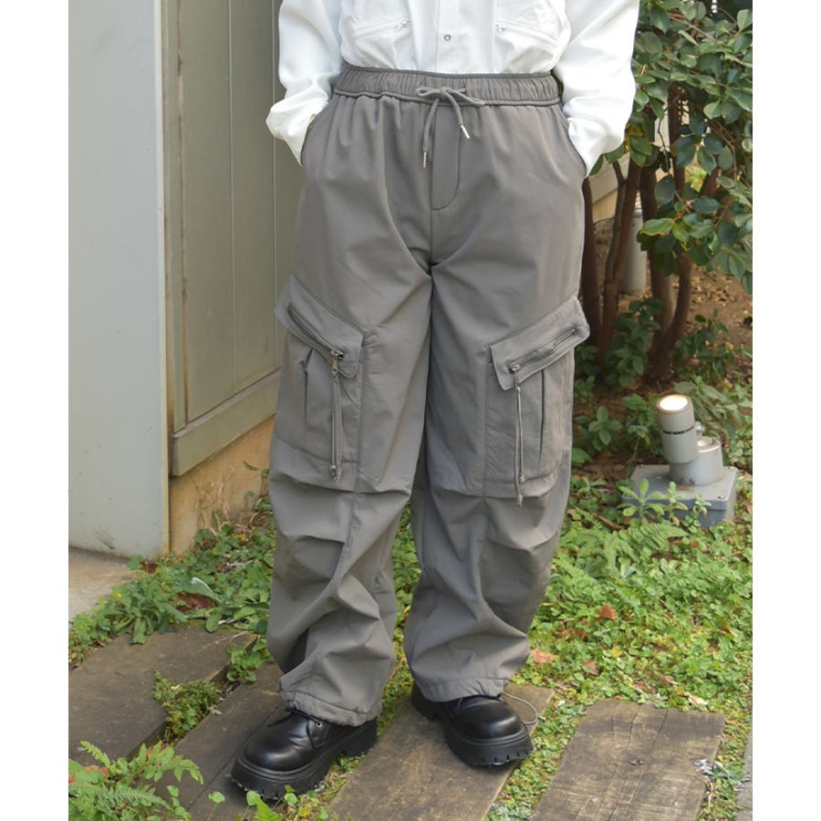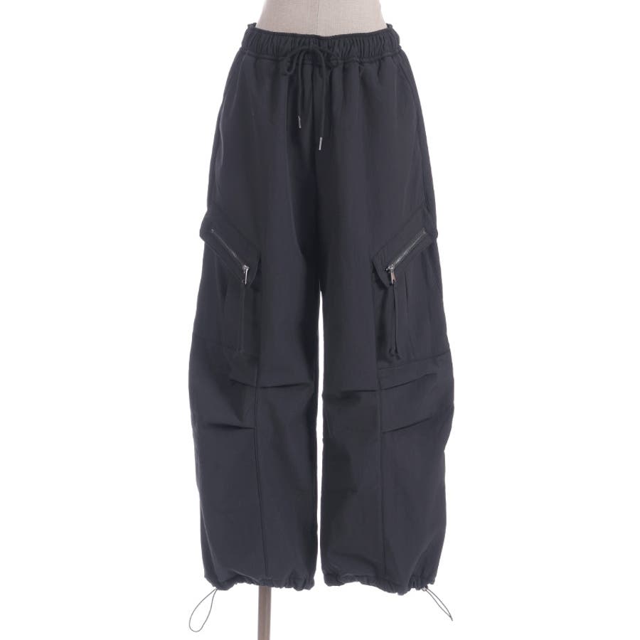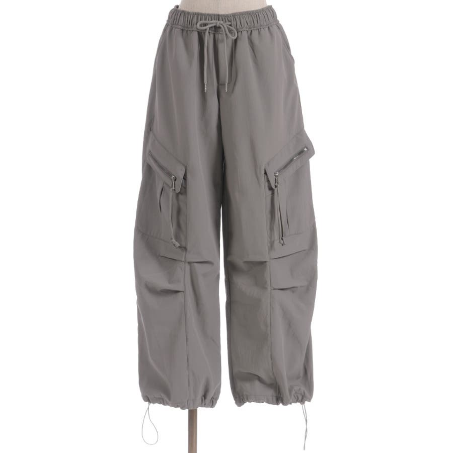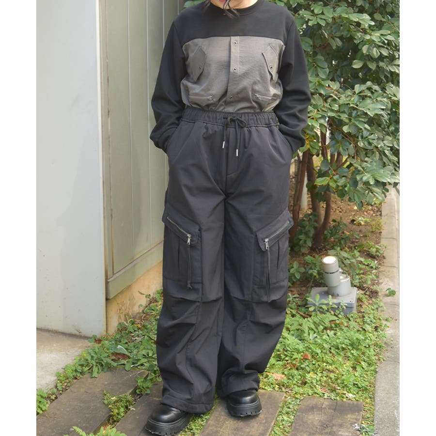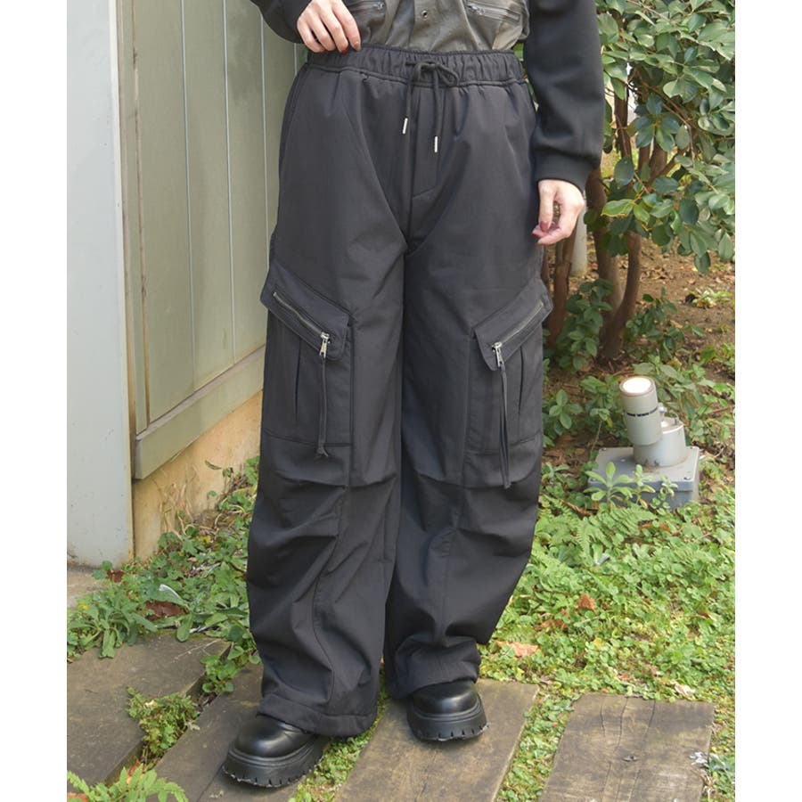 サイドの立体ポケットがアクセントになったトレンド感たっぷりのカーゴデザイン。ウエストは総ゴム仕様でラクな履き心地ながら、ほどよいボリュームシルエットで脚のラインを拾いにくく、デイリーに使いやすい1本です。