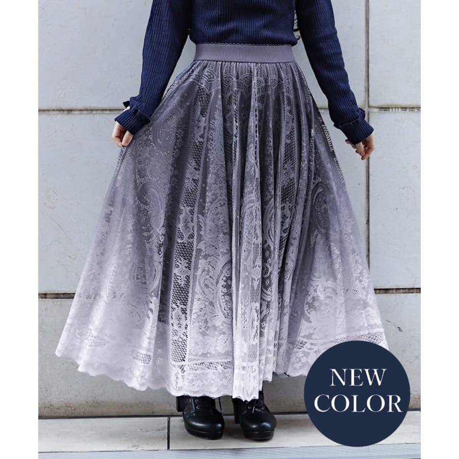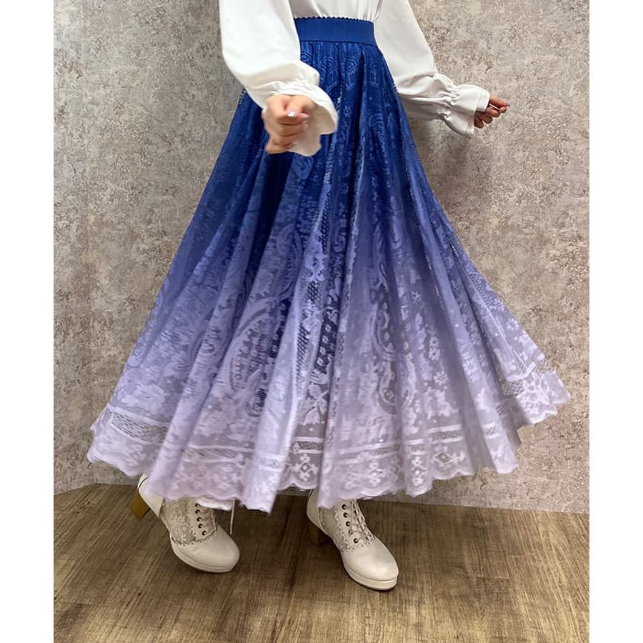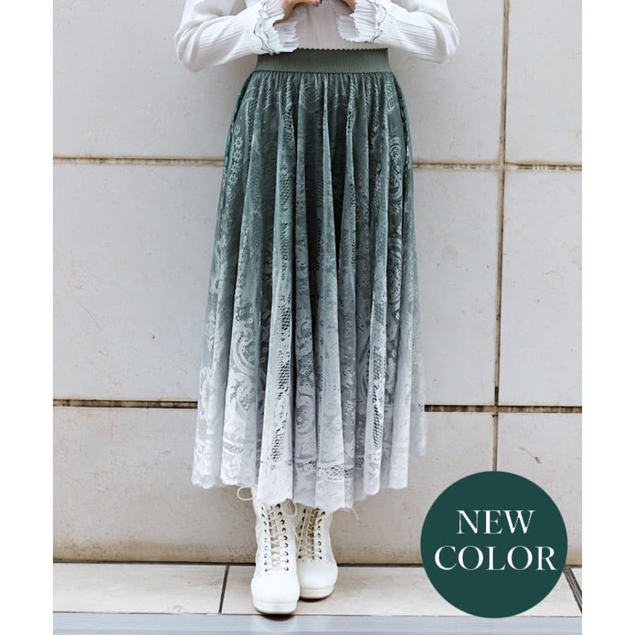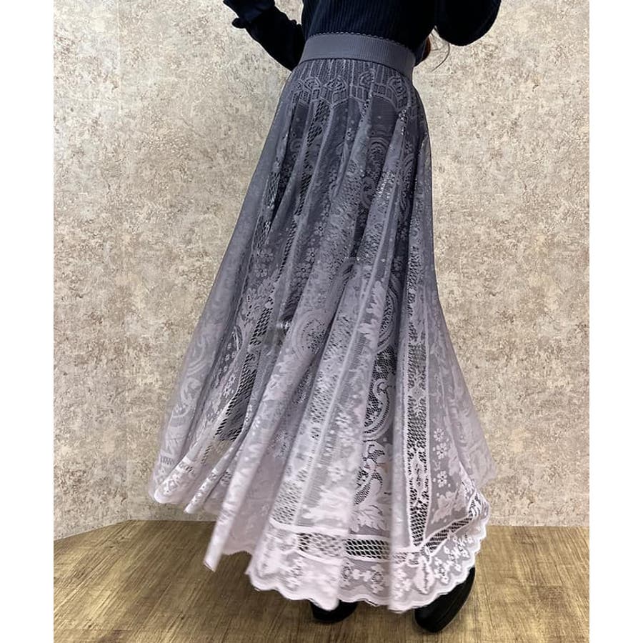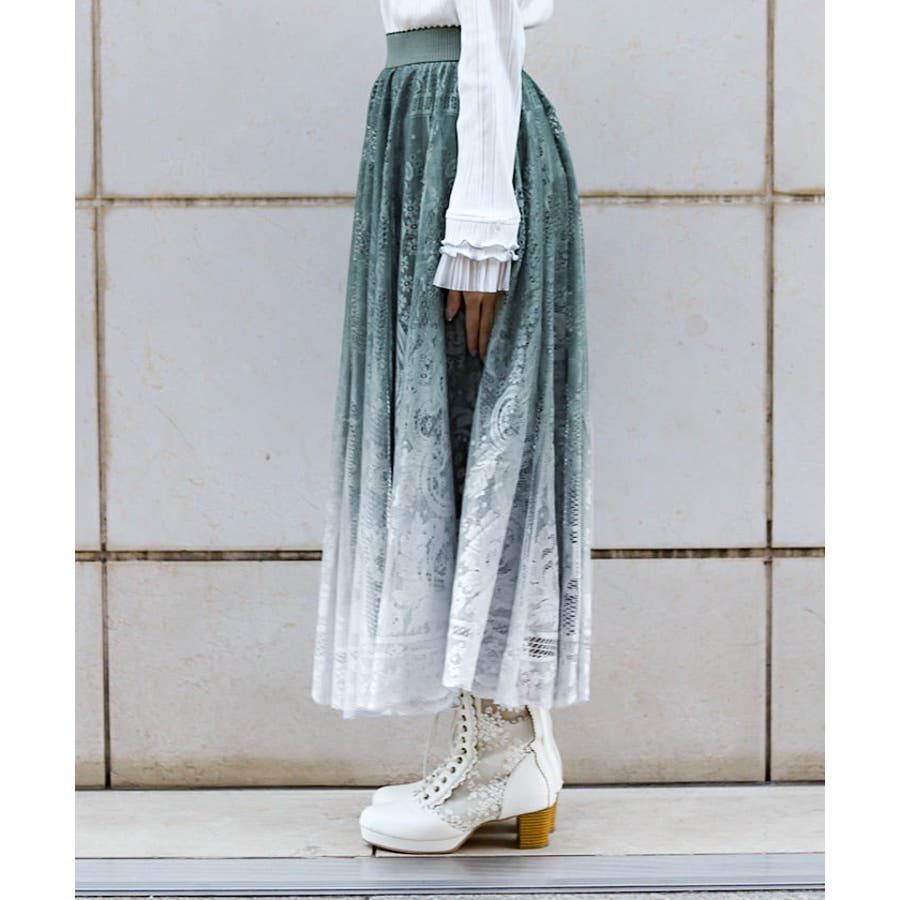 グラデーションが美しい総レースのスカート。
