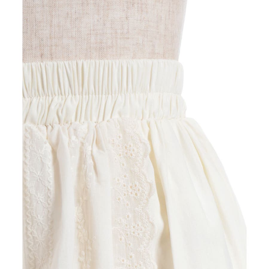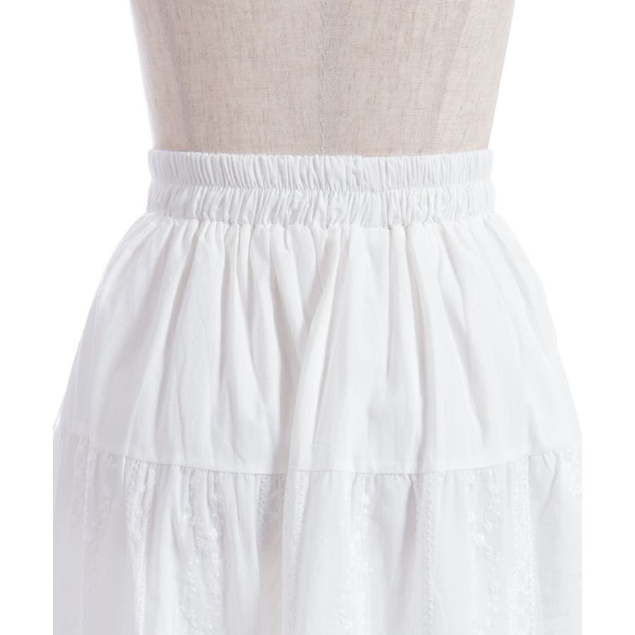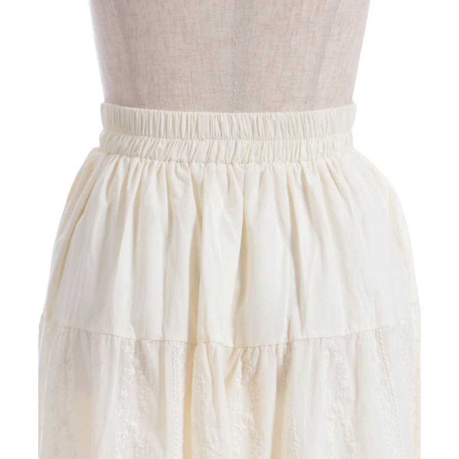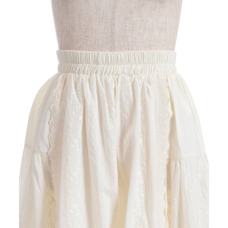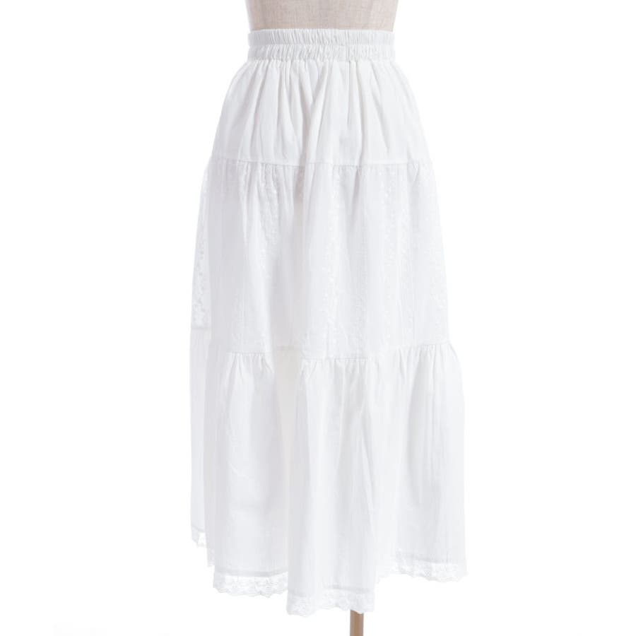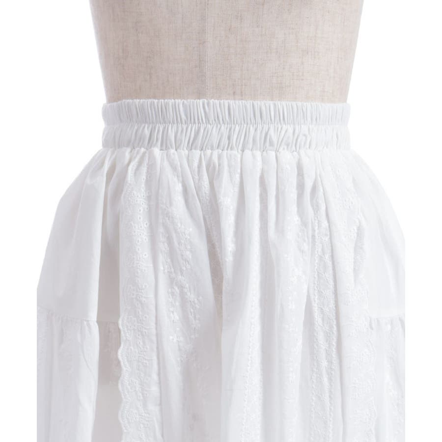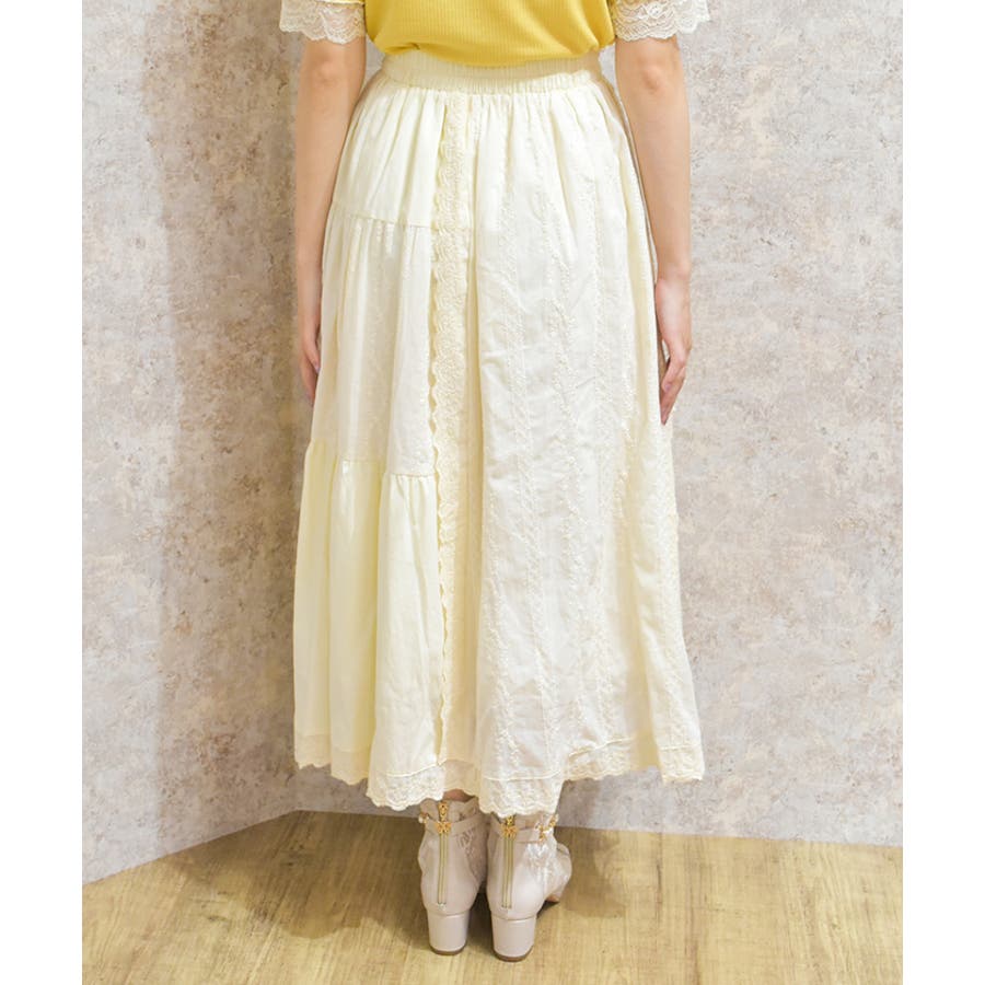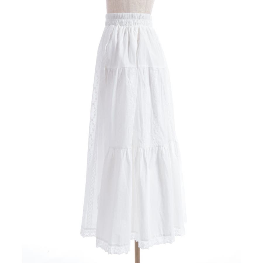 ティアード切替と繊細なカットワークレースがフェミニンな印象のロングスカート。