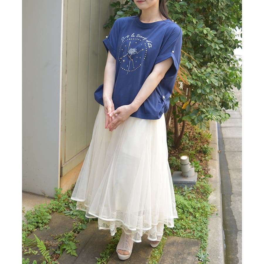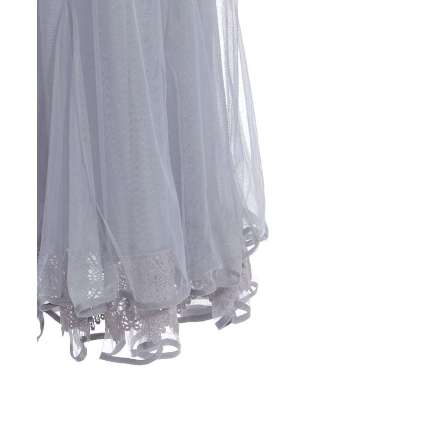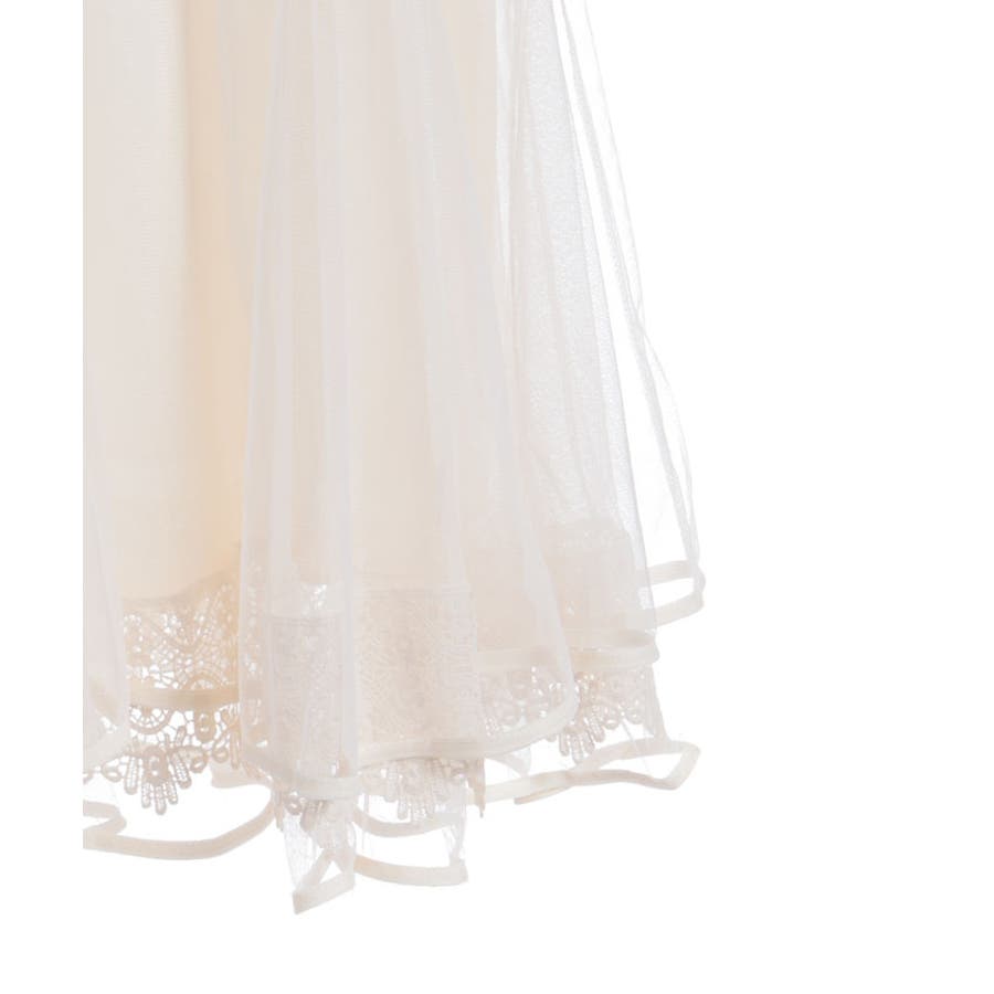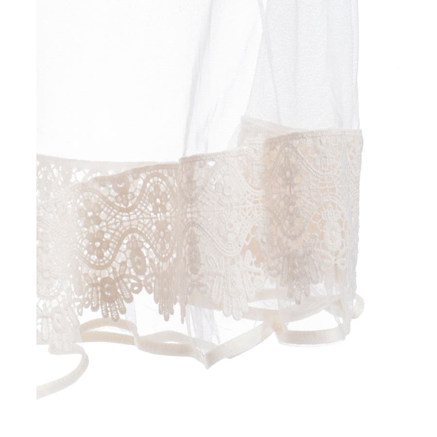 レース使いや裾のパイピングでフリル感をだしたディティールがポイント。