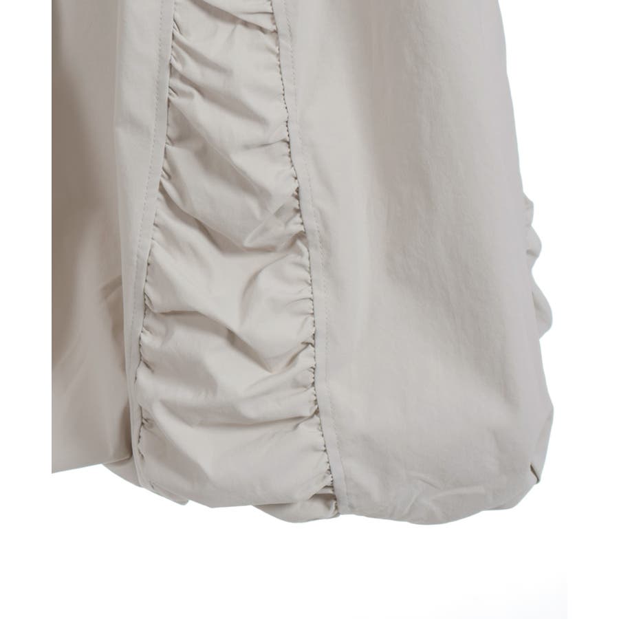 丸みのあるシルエットがやさしく広がり、動くたびにふわっと揺れて存在感を演出します。ウエストはすっきり見える仕様で、ボリュームがありながらも上品にまとまる一着です。