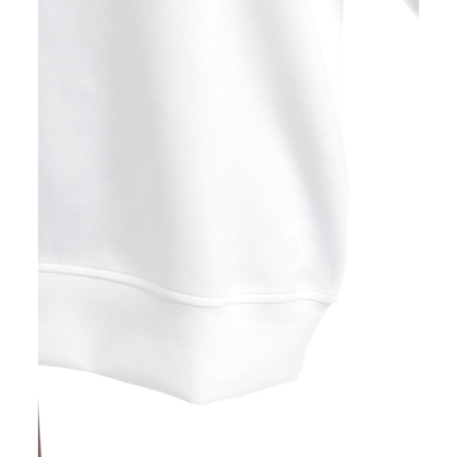 袖のリボンデザインがポイントになったプルオーバー。程よいハリ感と柔らかさを兼ね備えたダンボールニット素材を使用し、快適な着心地を叶えます。