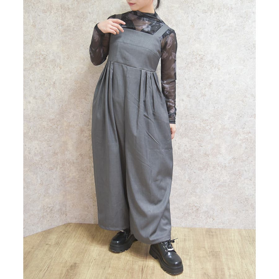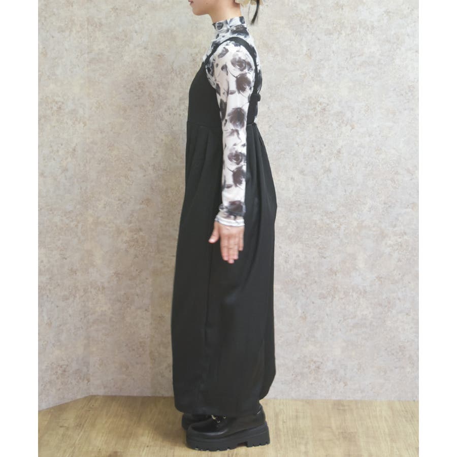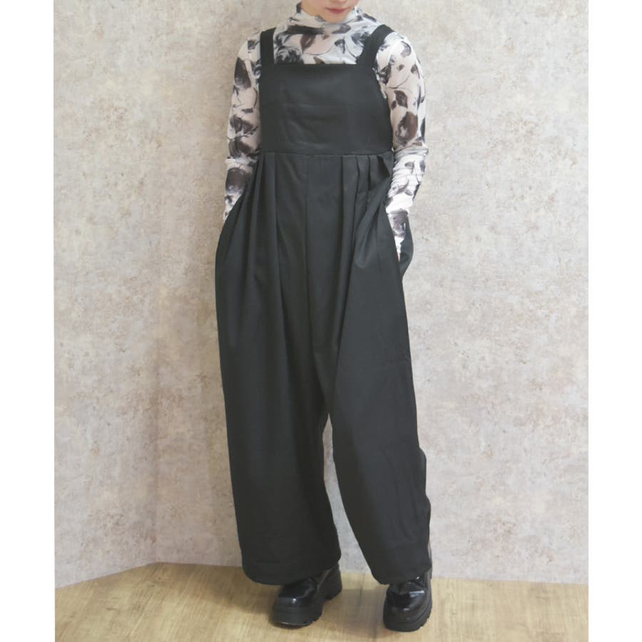 さらりとした落ち感のある素材を使用したサロペット。ゆったりとしたシルエットでリラックス感がありながらも、すっきりとした印象を演出します。