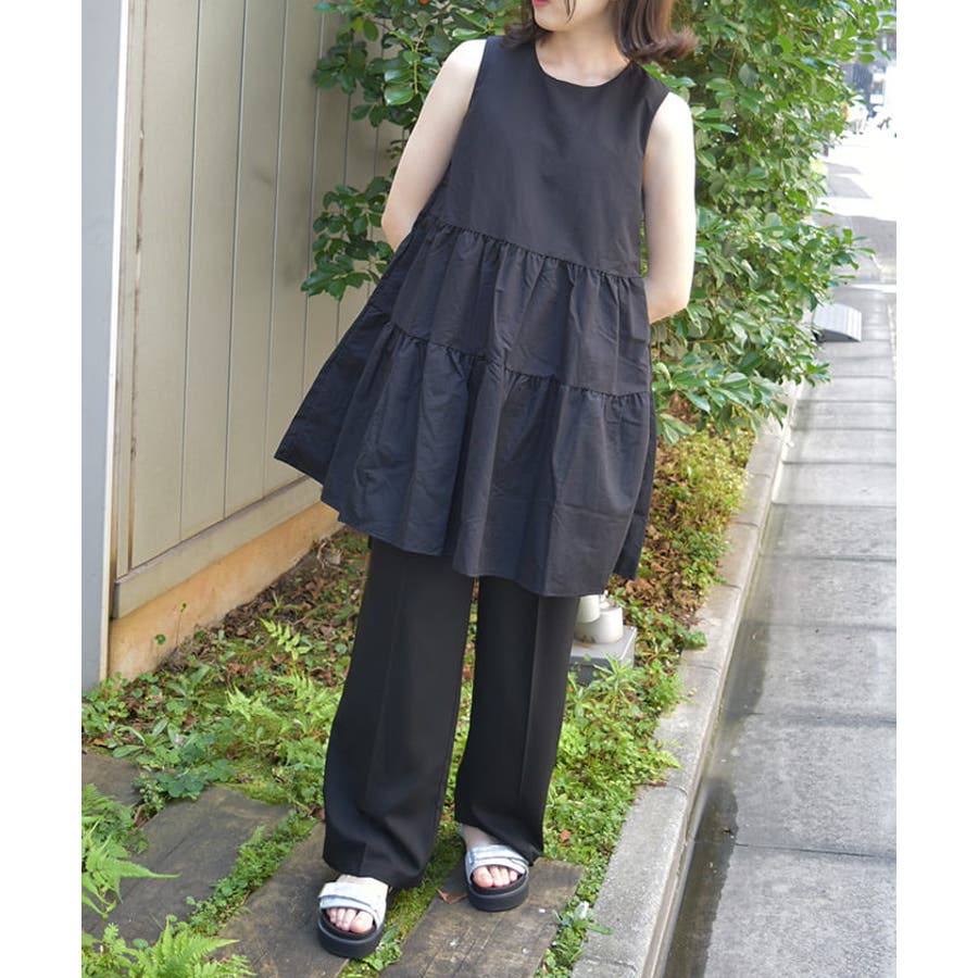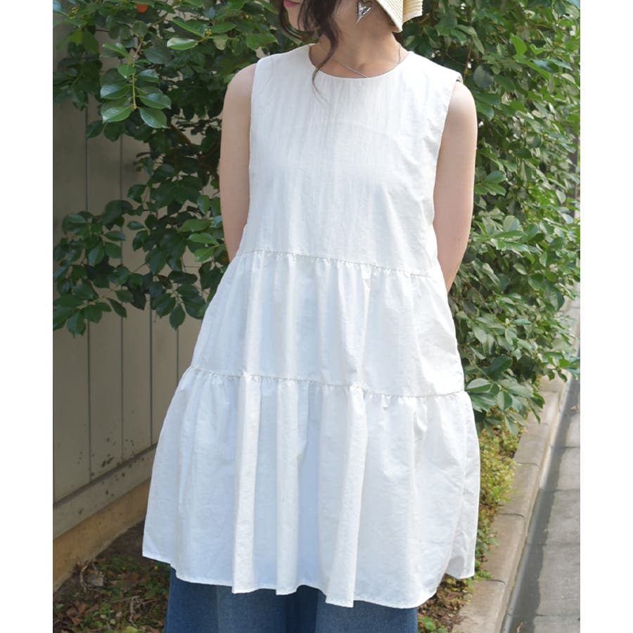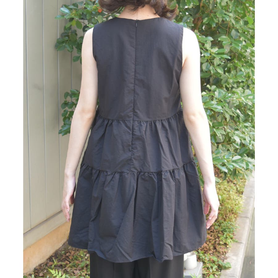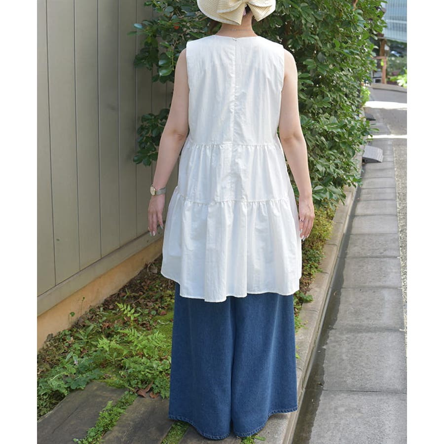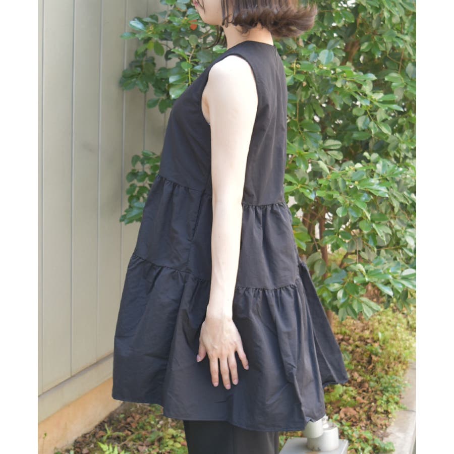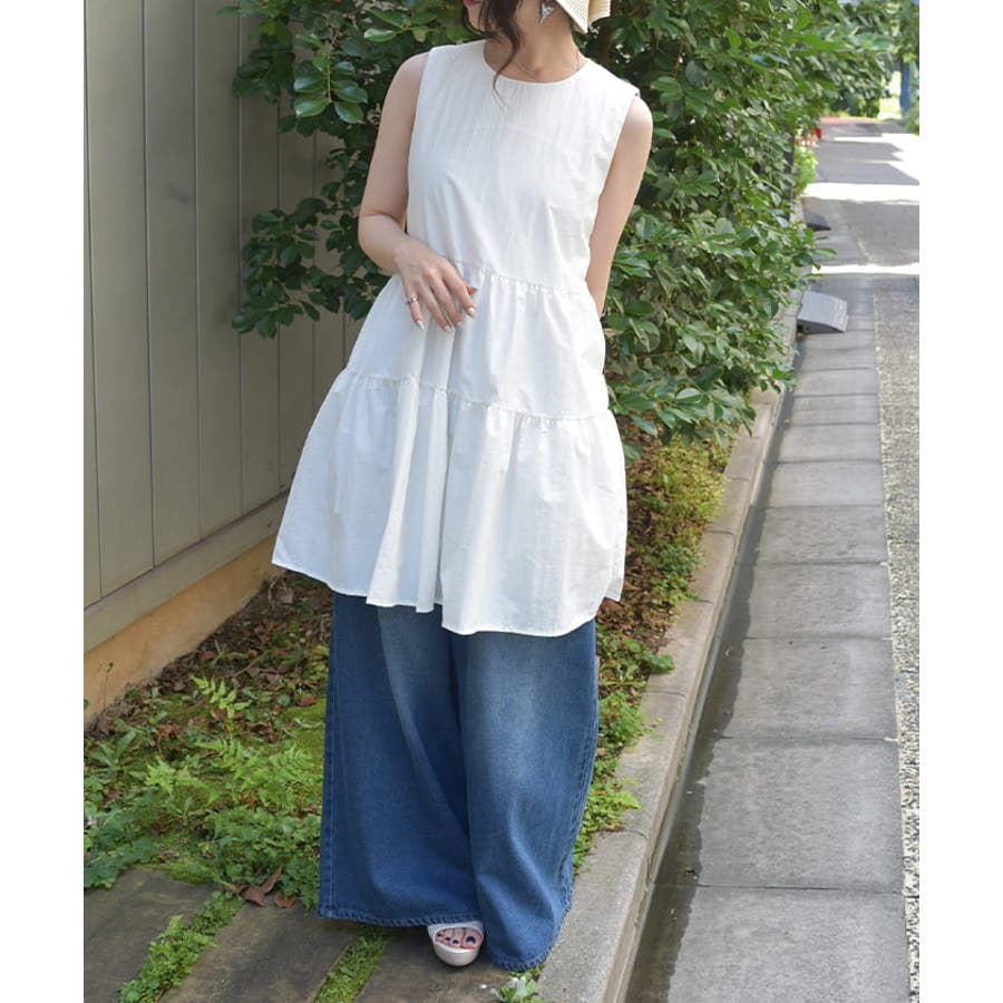 ふんわりと広がるティアードシルエットがフェミニンな印象を演出。