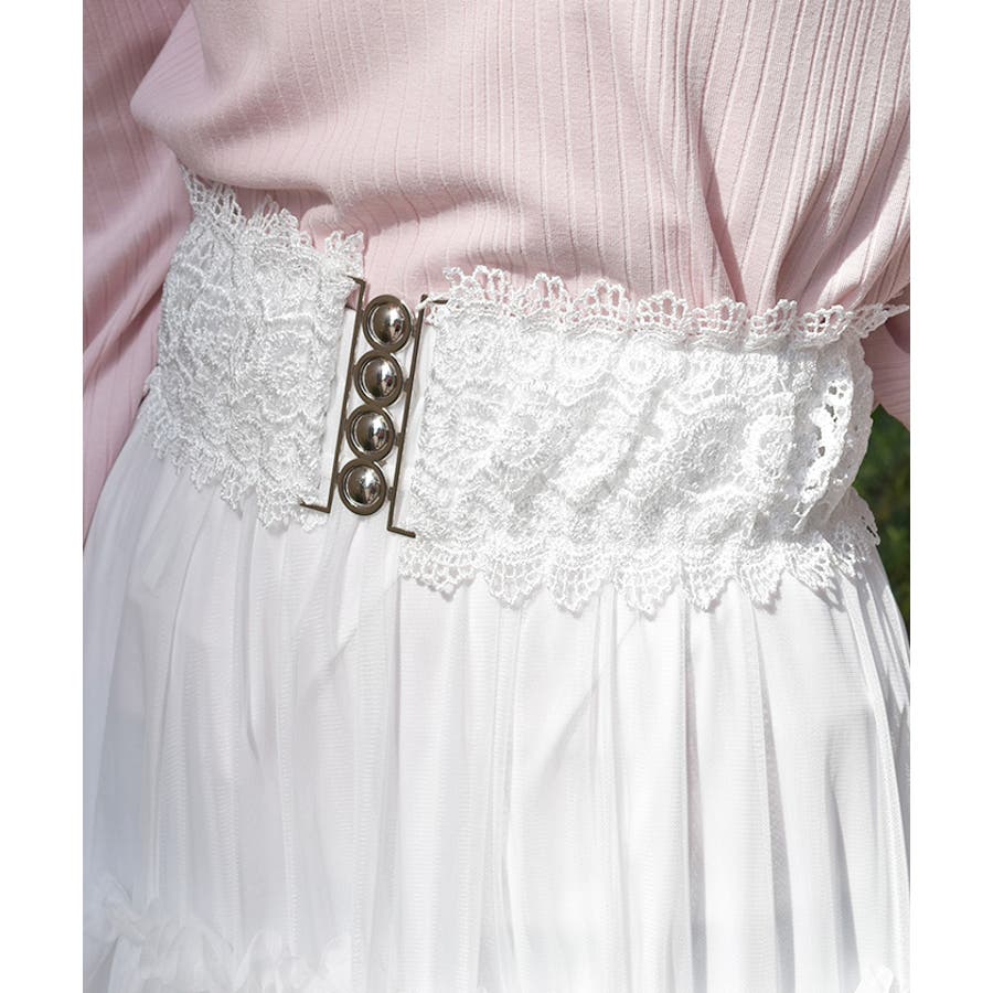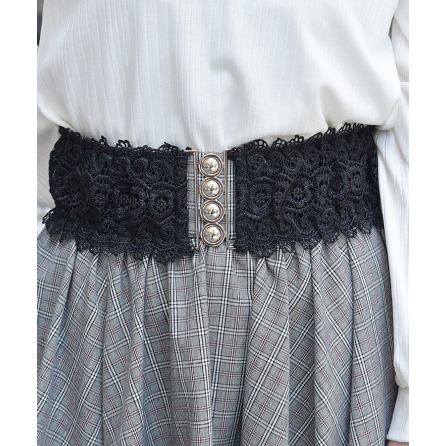 レース使いの華やかな太幅ベルトです。