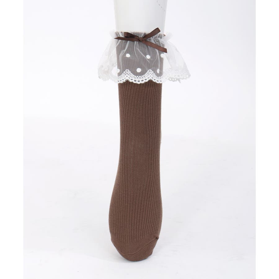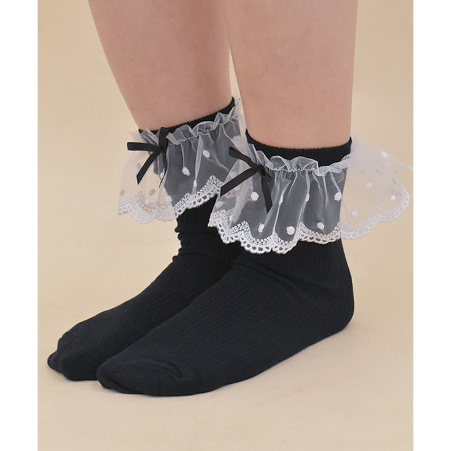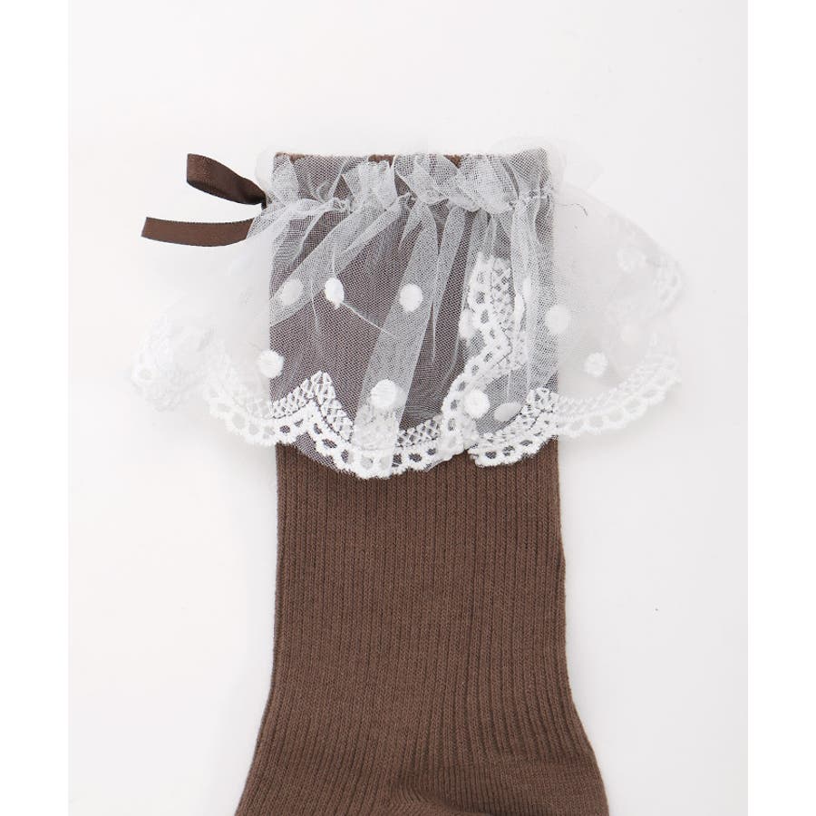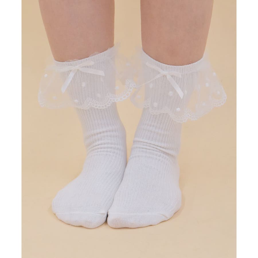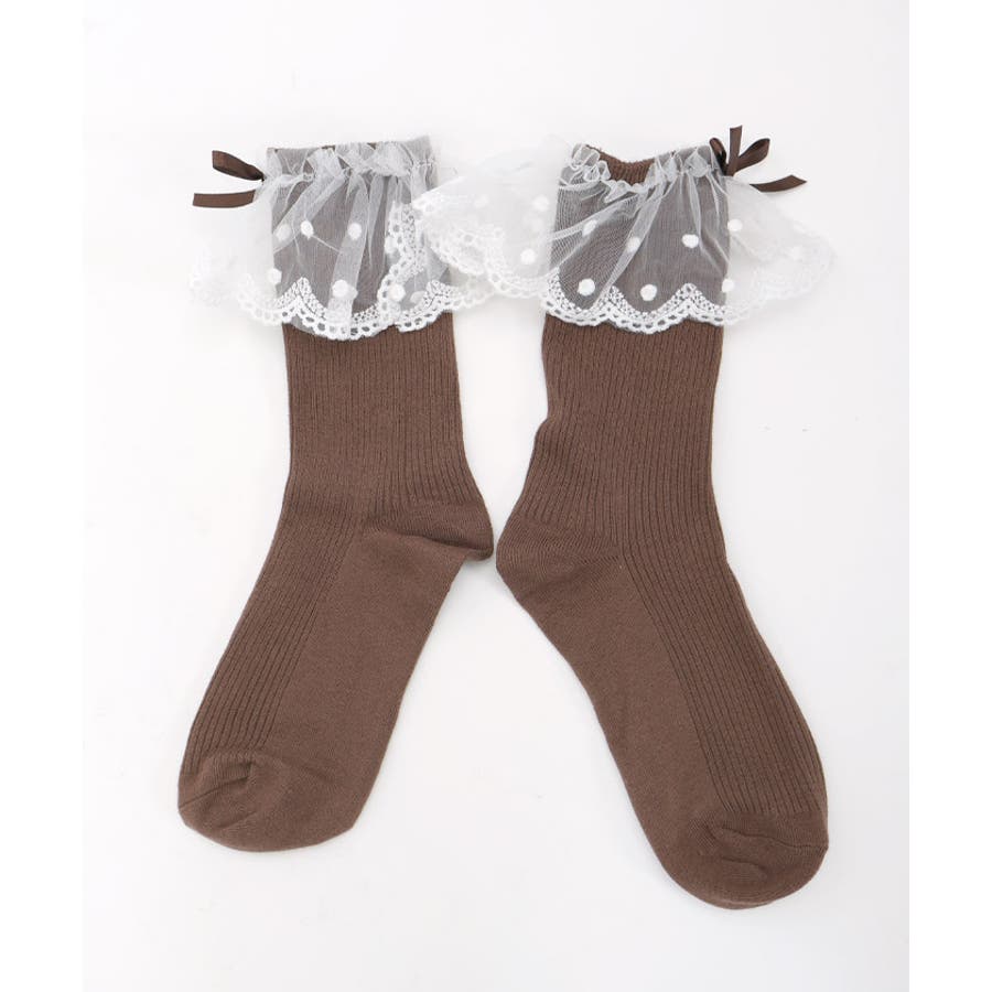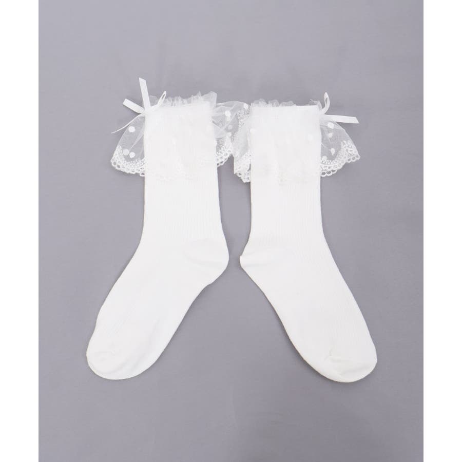 足首が見える丈のボトムスのガーリーなコーデなら何でも合う万能ソックスです。1足あれば使い回しがしやすく足元まで可愛くできます!