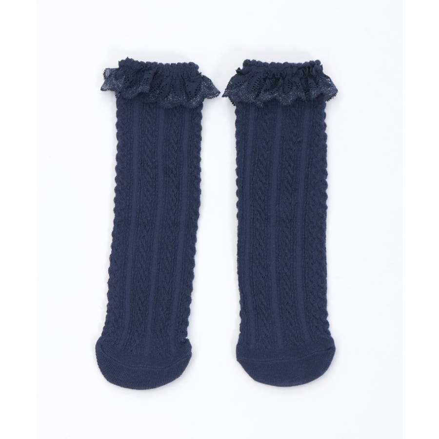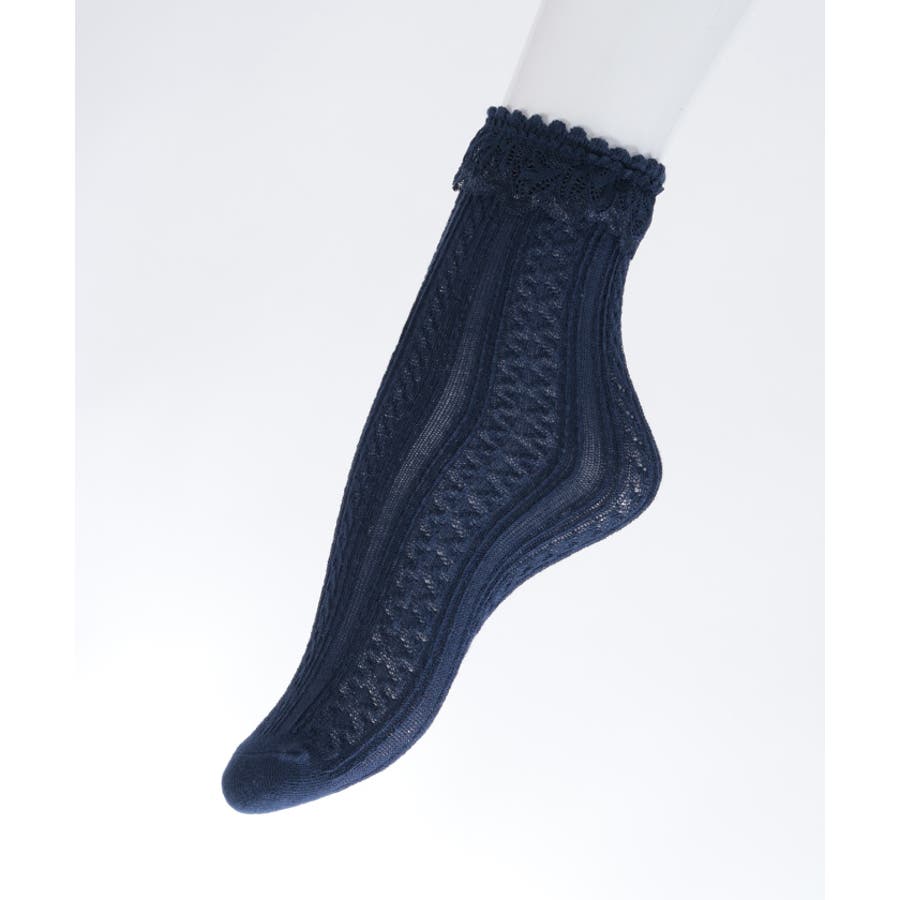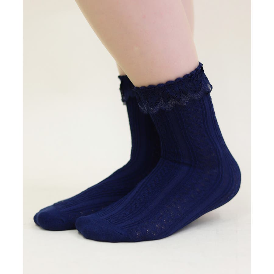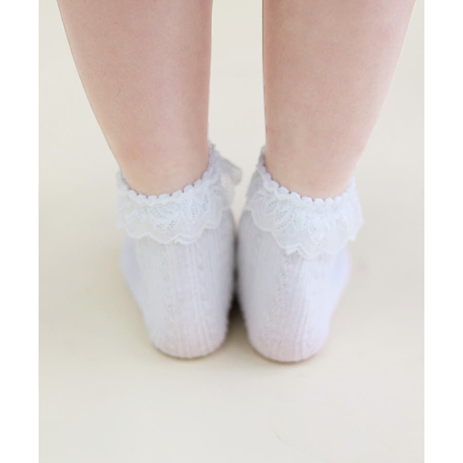 履き口にレースをあしらったソックスです。レースにはラメが織り込まれています。