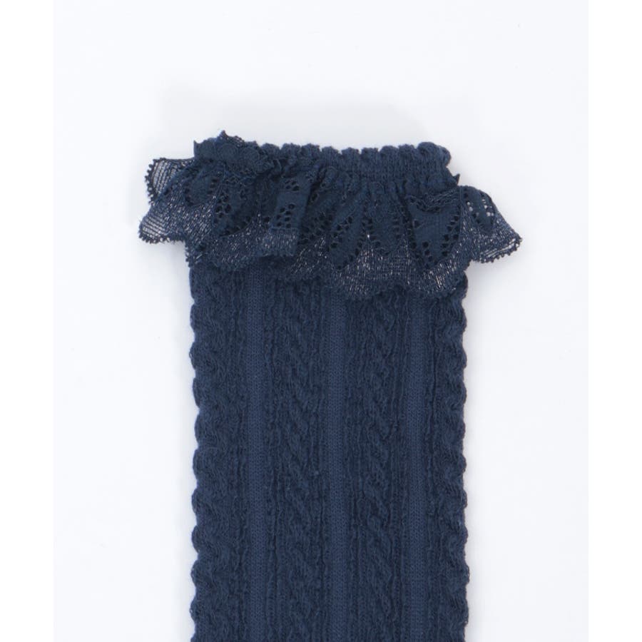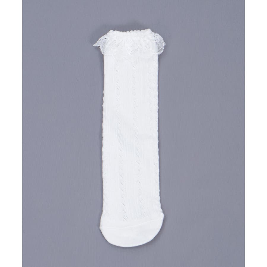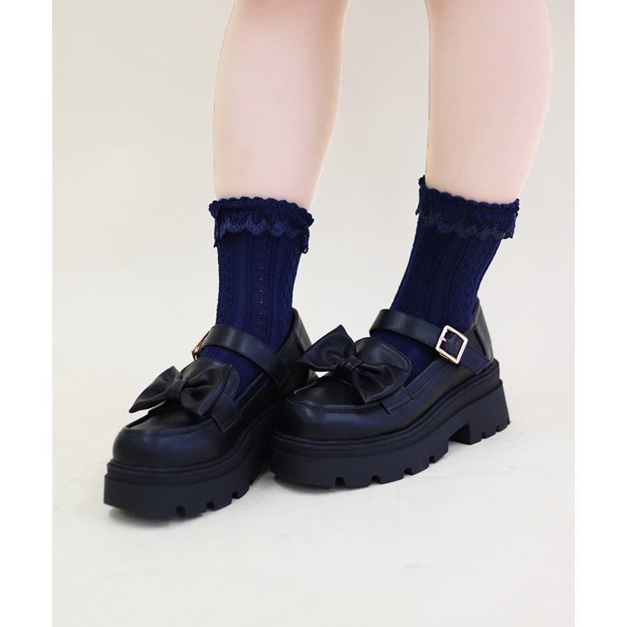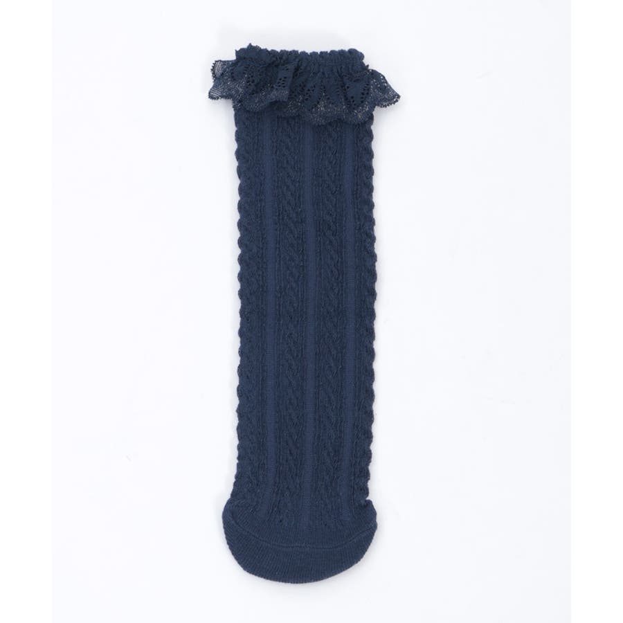 履き口にレースをあしらったソックスです。レースにはラメが織り込まれています。