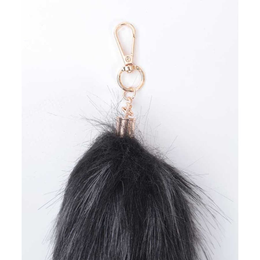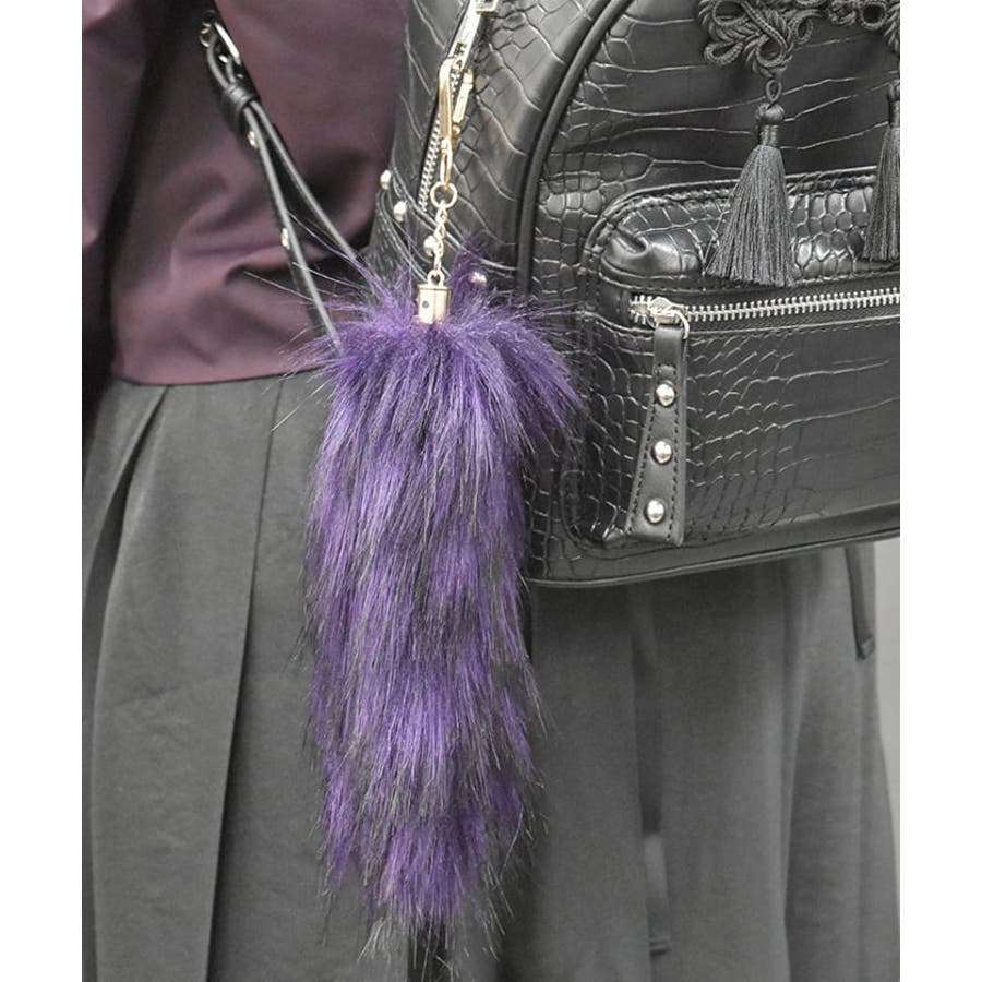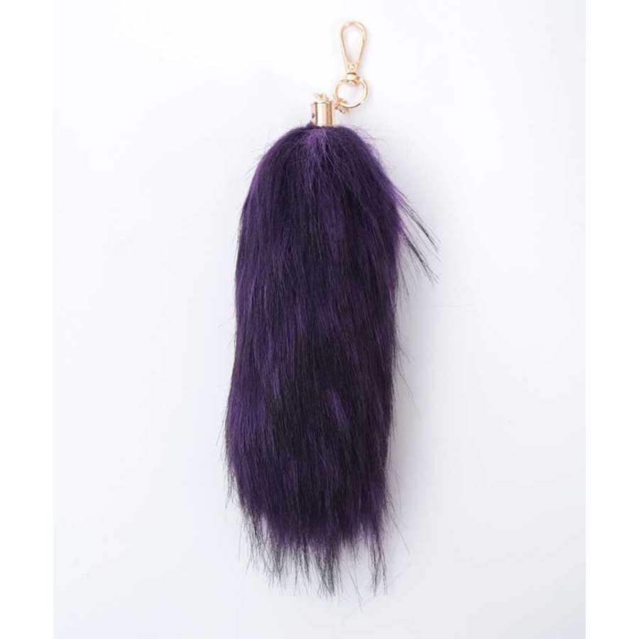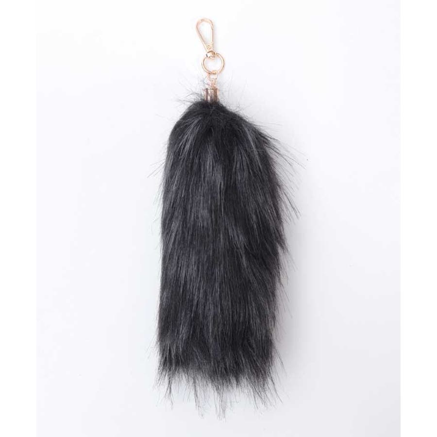 まだら模様ぽくなったファーのしっぽ。ゆらゆら揺れてかわいいチャームです。