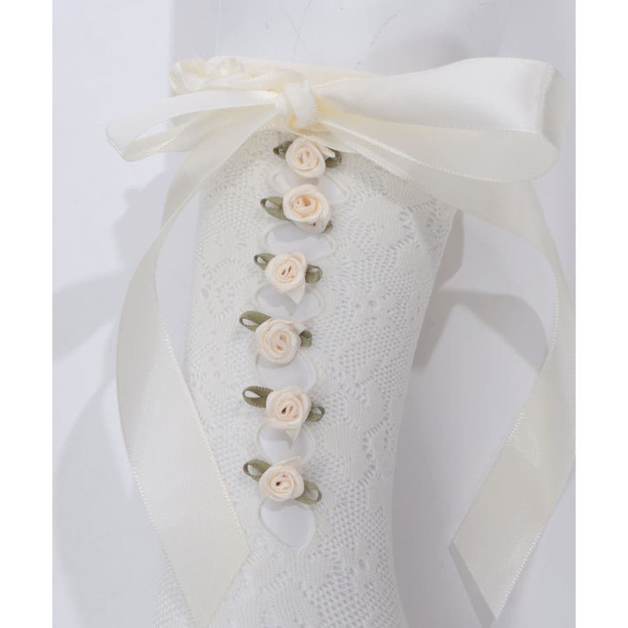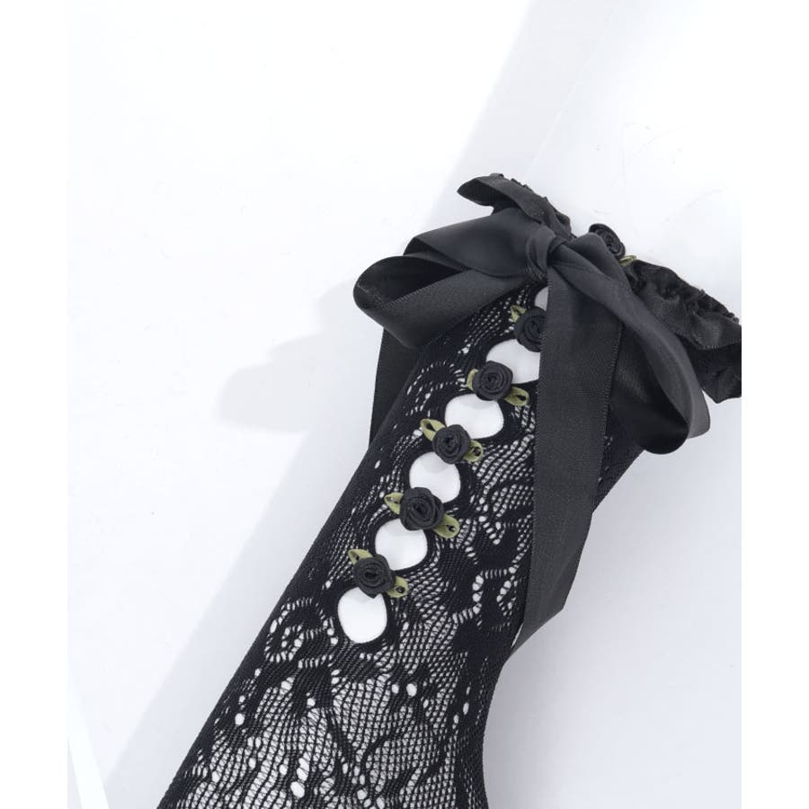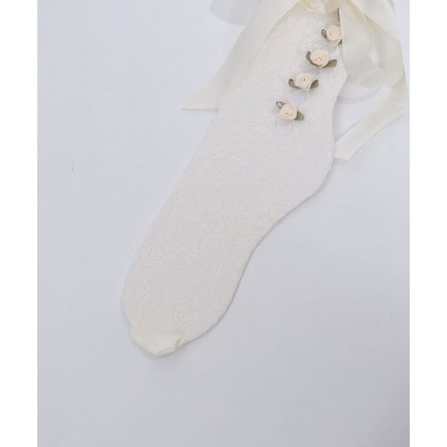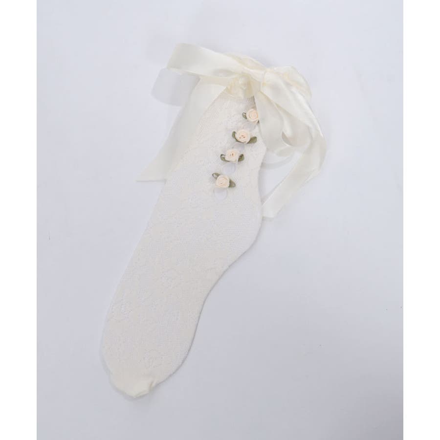 ガーリーな巻きバラ装飾のレースソックス