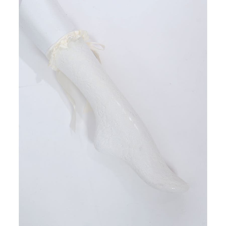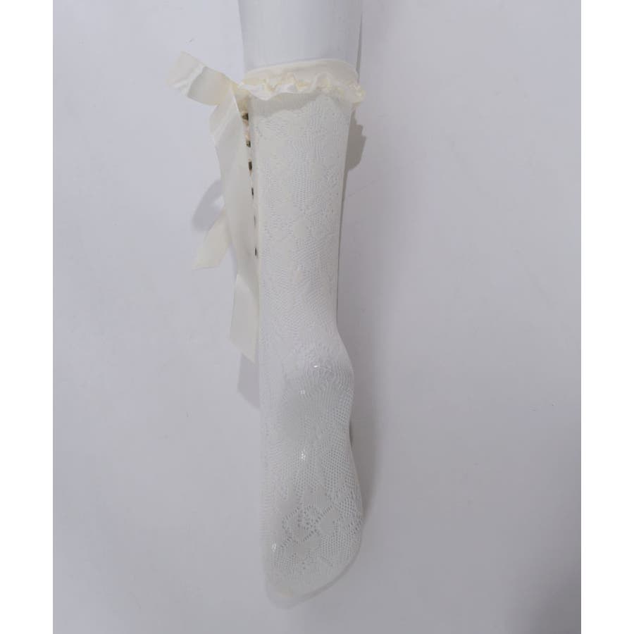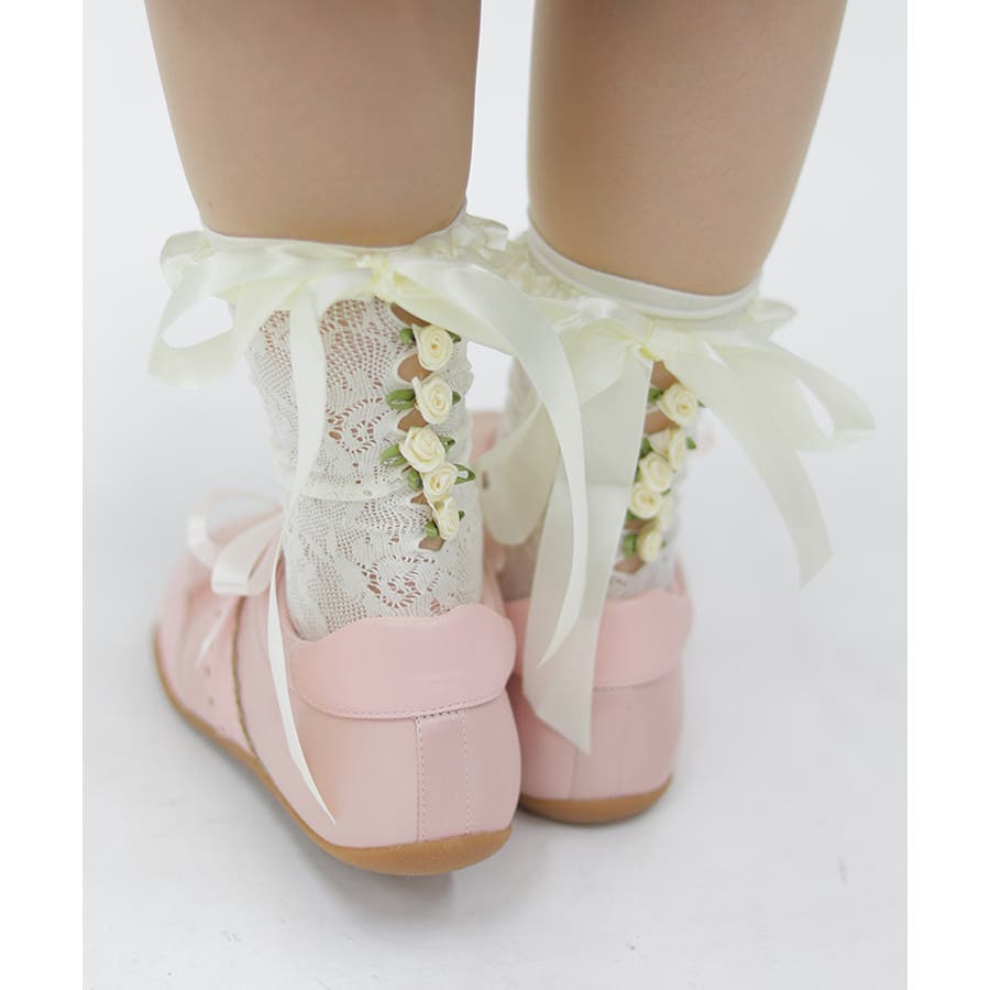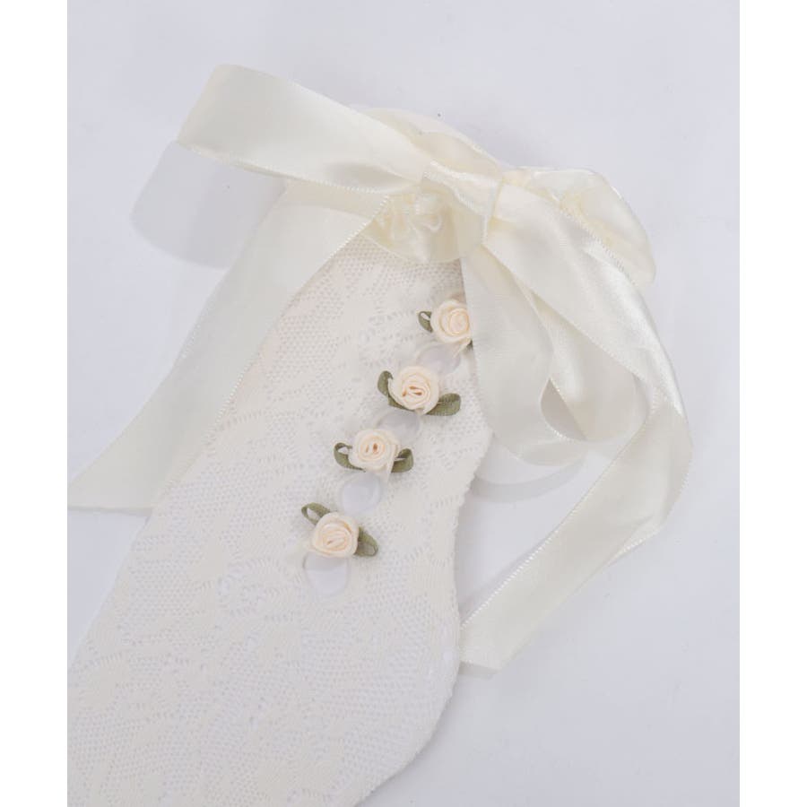 ガーリーな巻きバラ装飾のレースソックス
