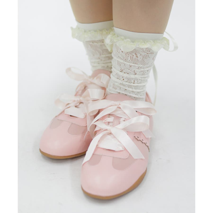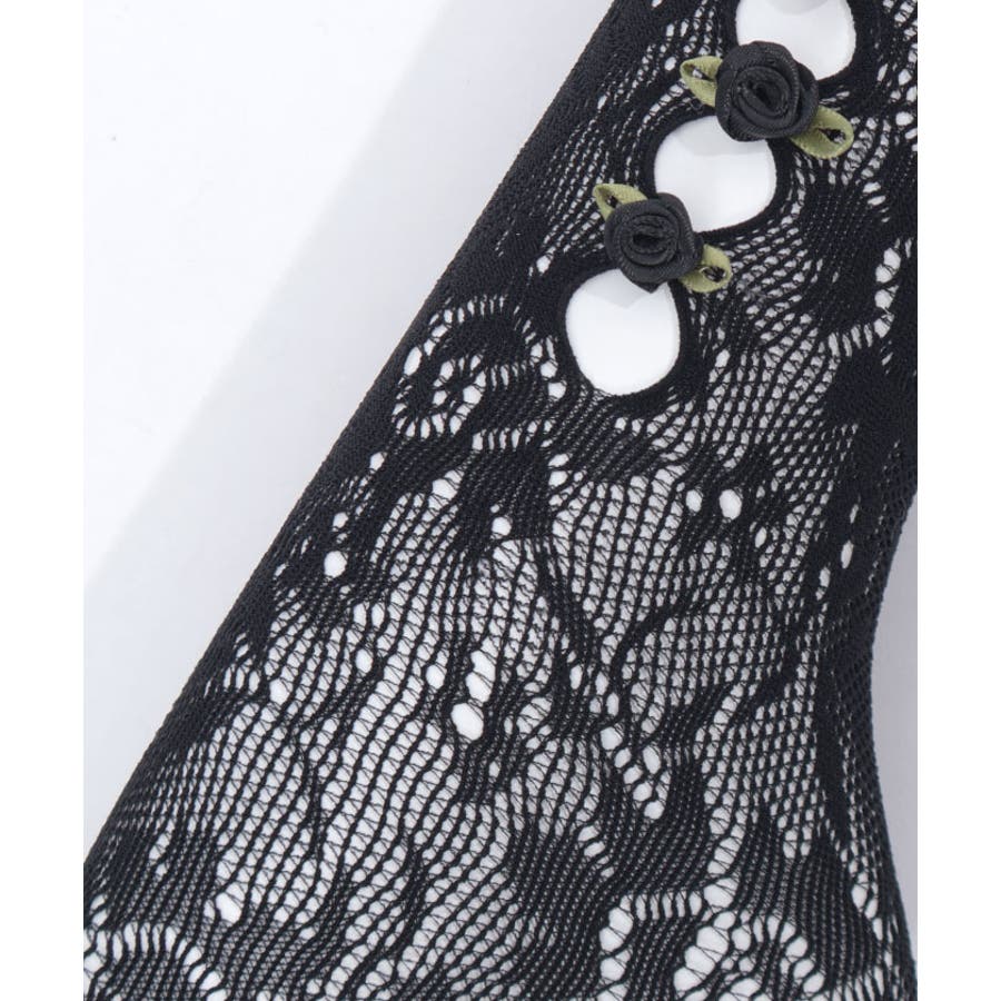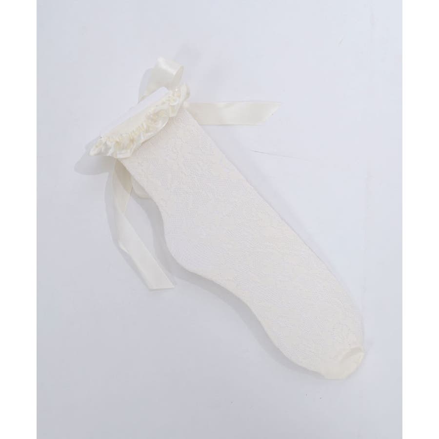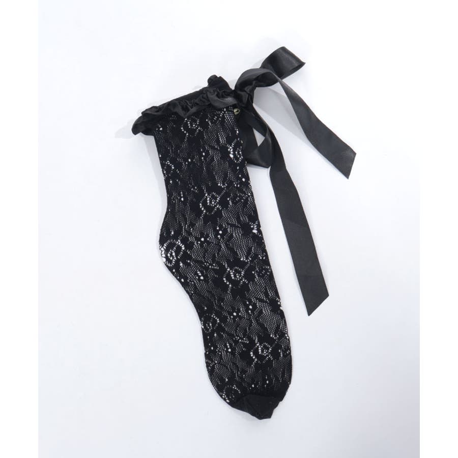 巻きバラ装飾がガーリーなストレッチレースのソックスです。