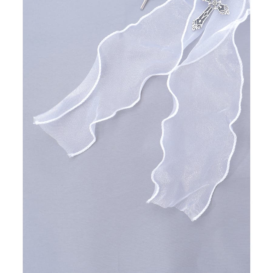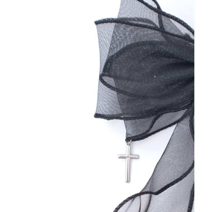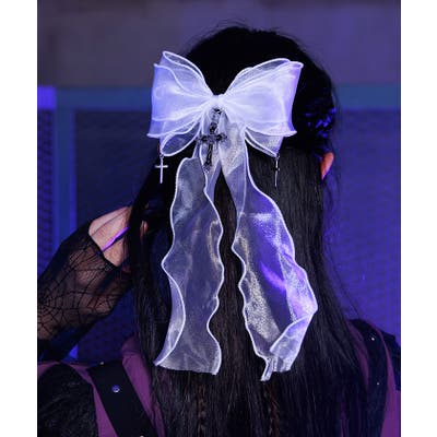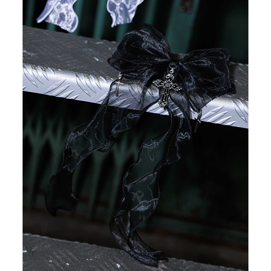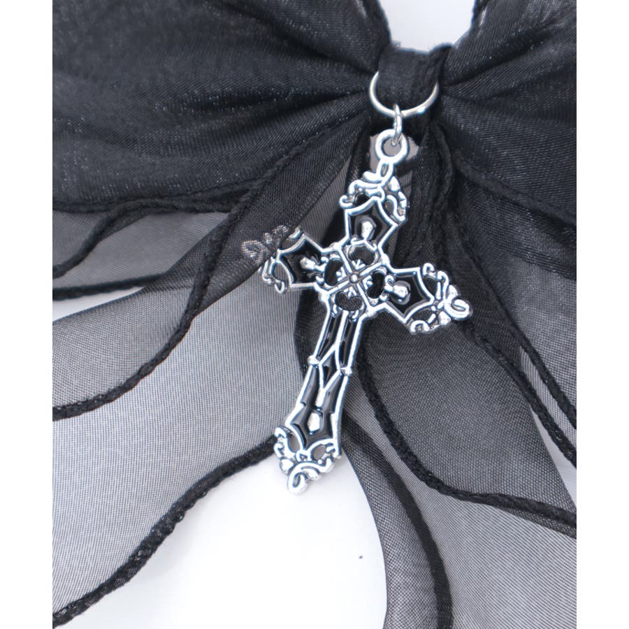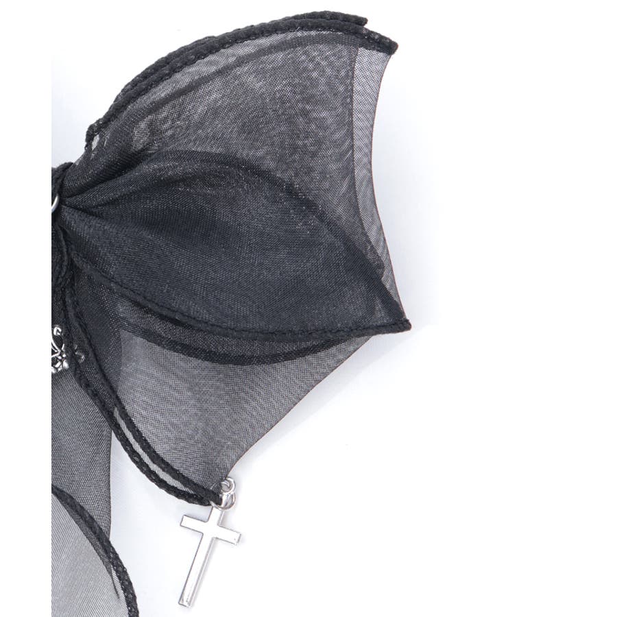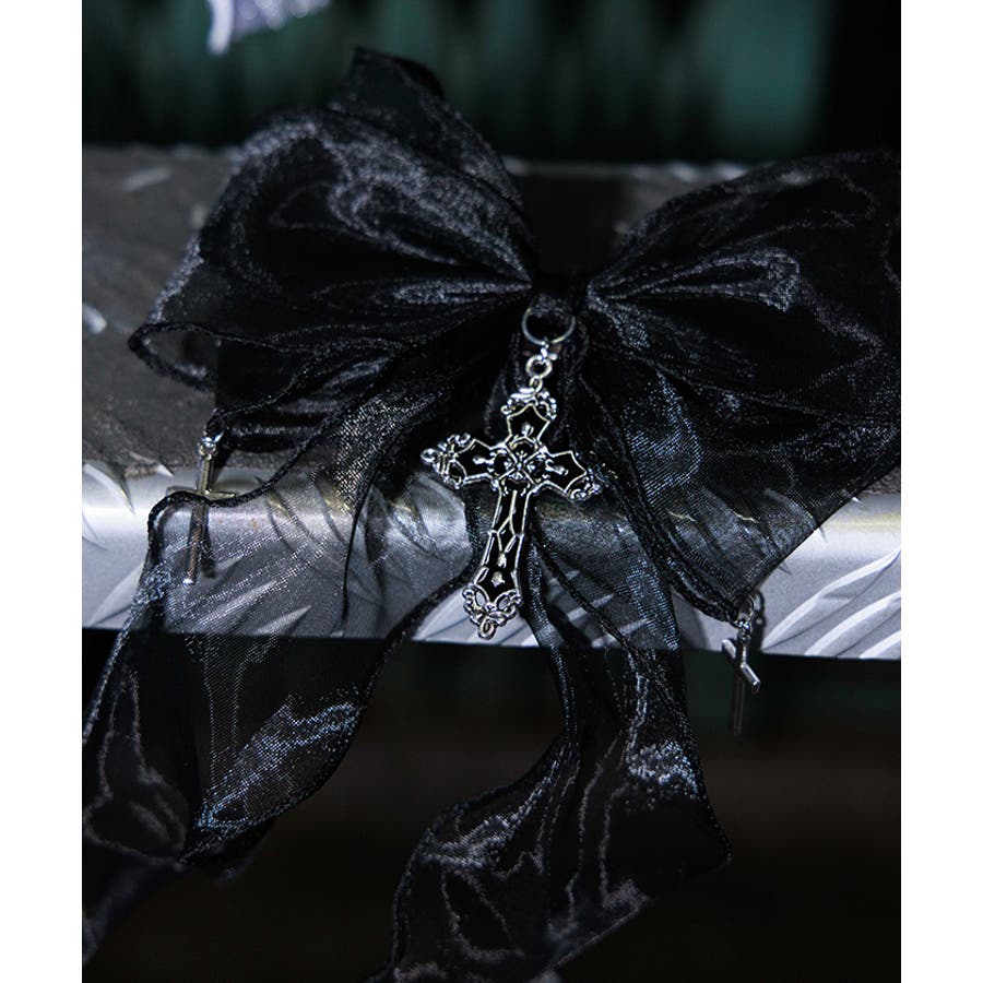 大き目のオーガンジーリボンにクロスチャームを合わせたクリップタイプのヘアアクセサリーです。