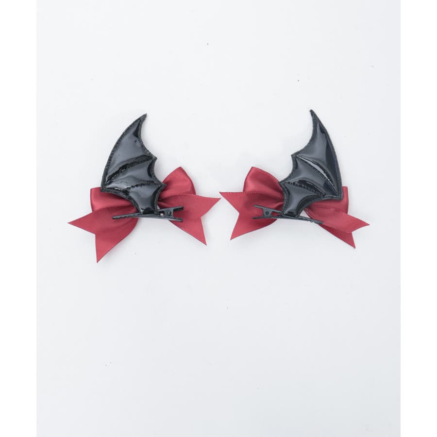 ヘッドドレスのサイドのリボンはルーズにそのまま垂らし、デビル羽クリップはお好きな位置に着用できます。